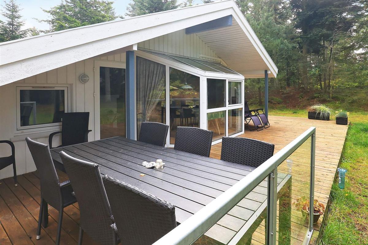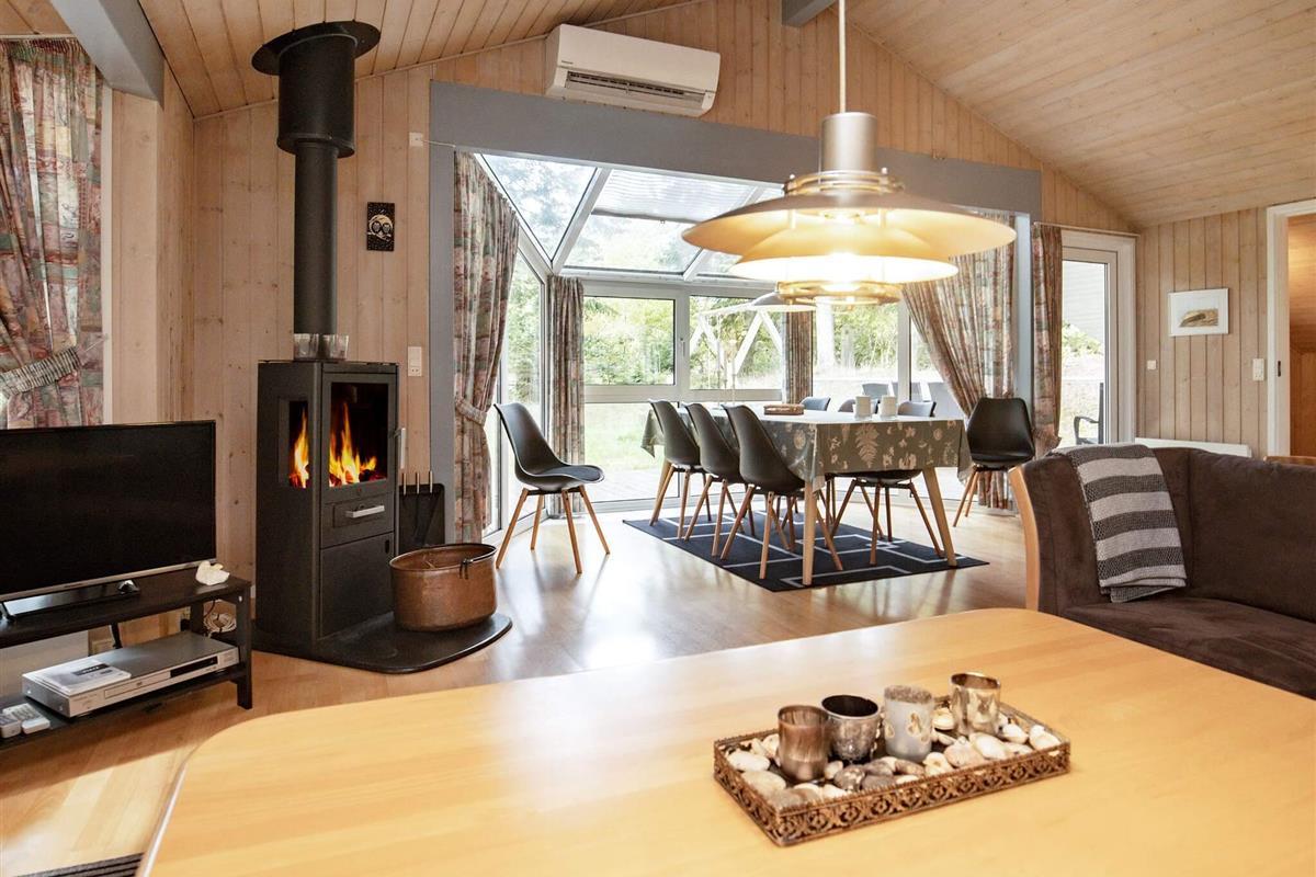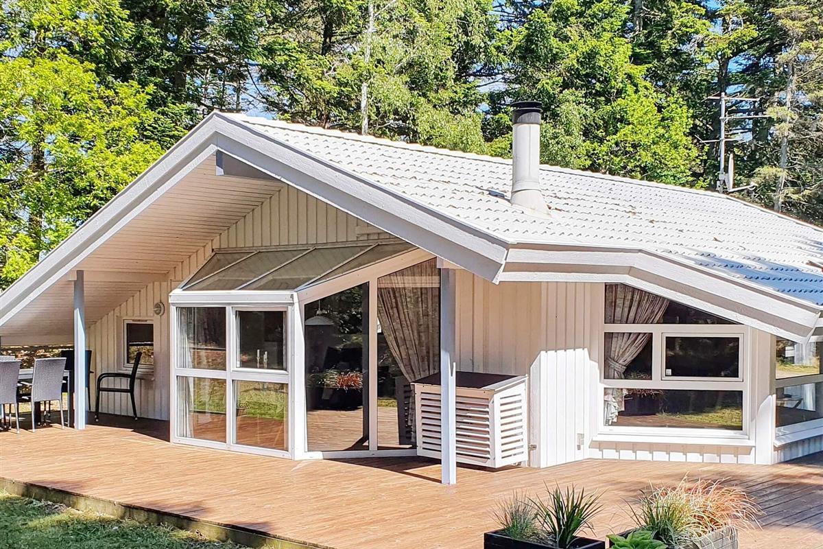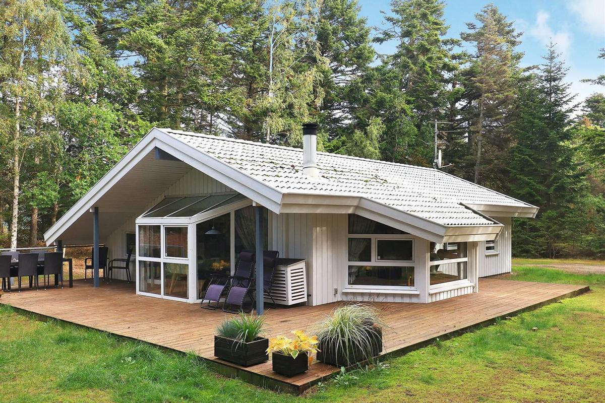 Auf einem ungestörten Naturgrundstück in ruhiger Umgebung finden Sie dieses gemütliche Ferienhaus mit einer großen und teilweise überdachten Terrasse. Das Haus ist mit 2 Badezimmern ausgestattet, von denen eines einen Whirlpool für 2 Personen und eine Sauna beinhaltet. Das Wohnzimmer, dass in offener Verbindung mit der Küche liegt, hat einen Kaminofen, der ein wenig "extra" Gemütlichkeit an den kühleren Tagen verbreitet. Darüber hinaus ist das Ferienhaus mit 3 guten Schlafzimmern ausgestattet - 2 Schlafzimmer mit Doppelbett und 1 Schlafzimmer mit 2 Einzelbetten. Ein passendes Reiseziel für Familien, die sich erholen und entspannen möchte.