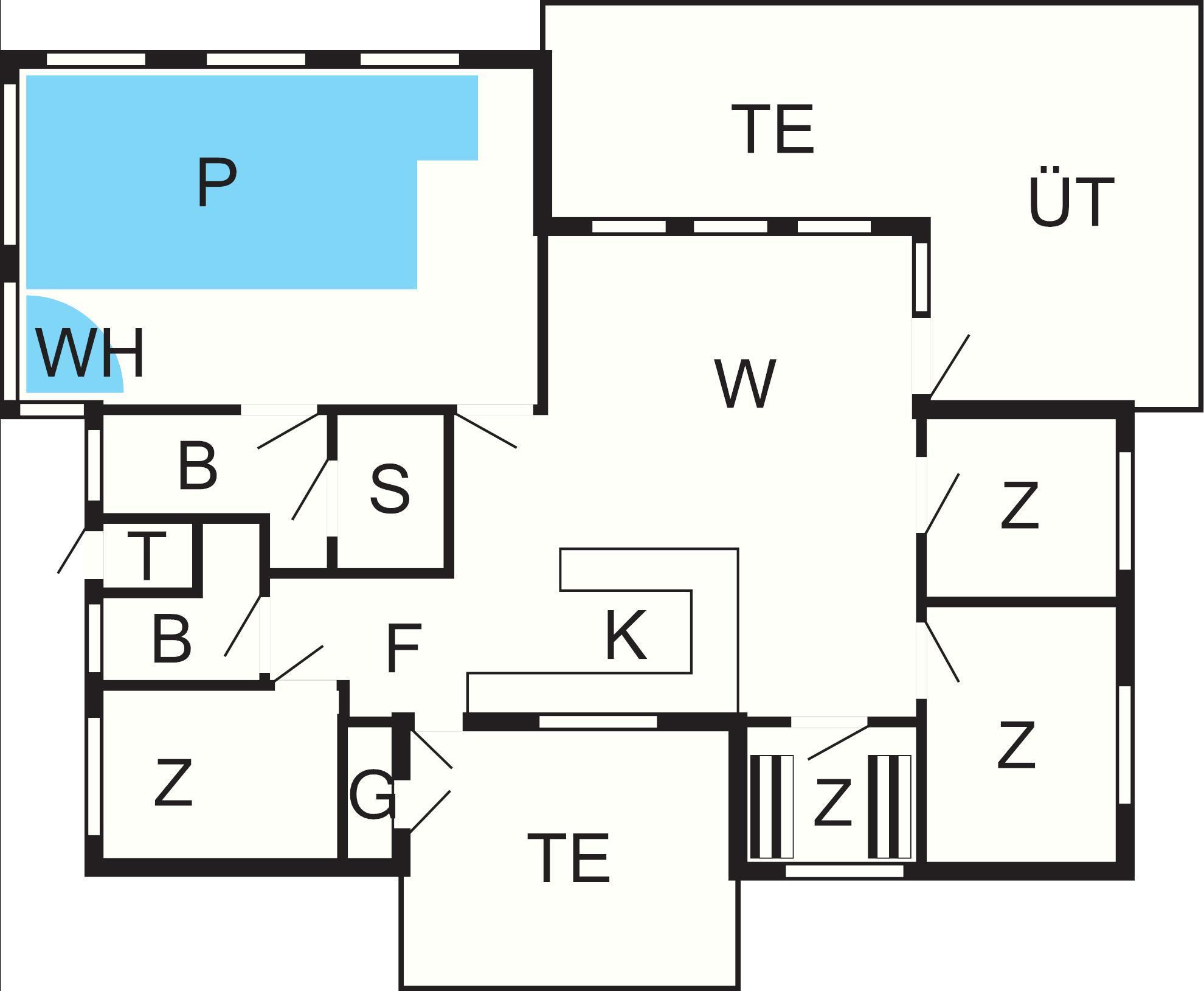 4 Schlafz.: (1DB)+(2B)+(1DB+2K)+(1DB), Kinderbett