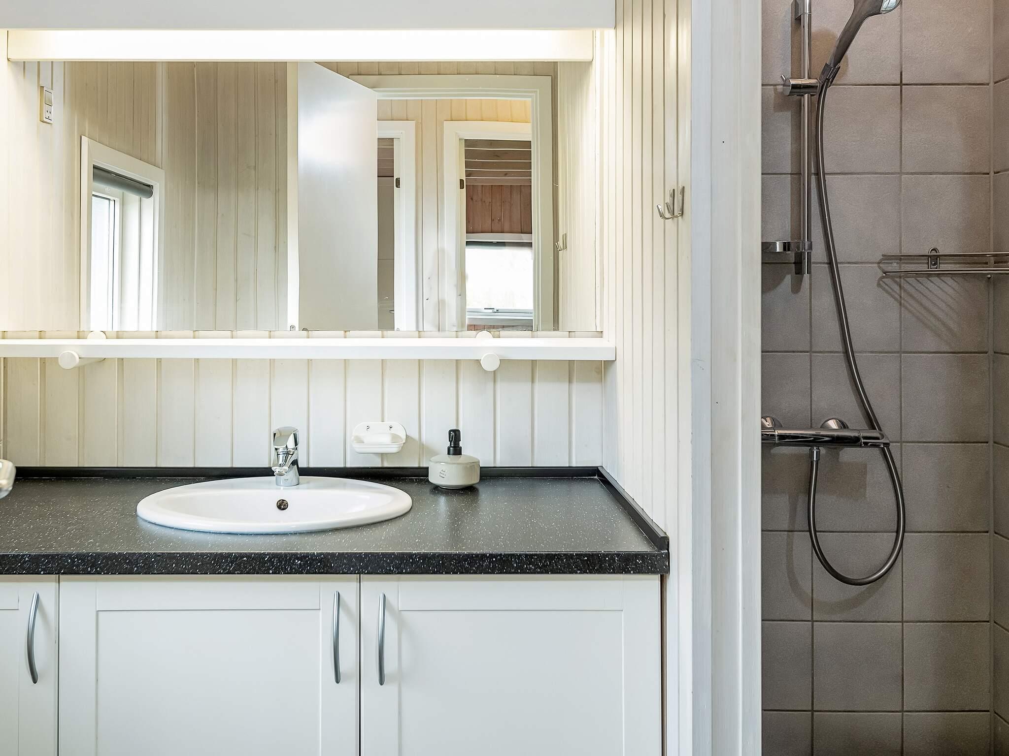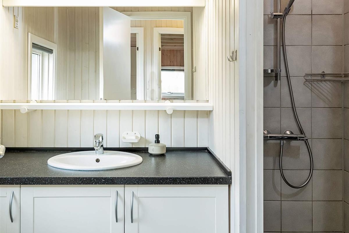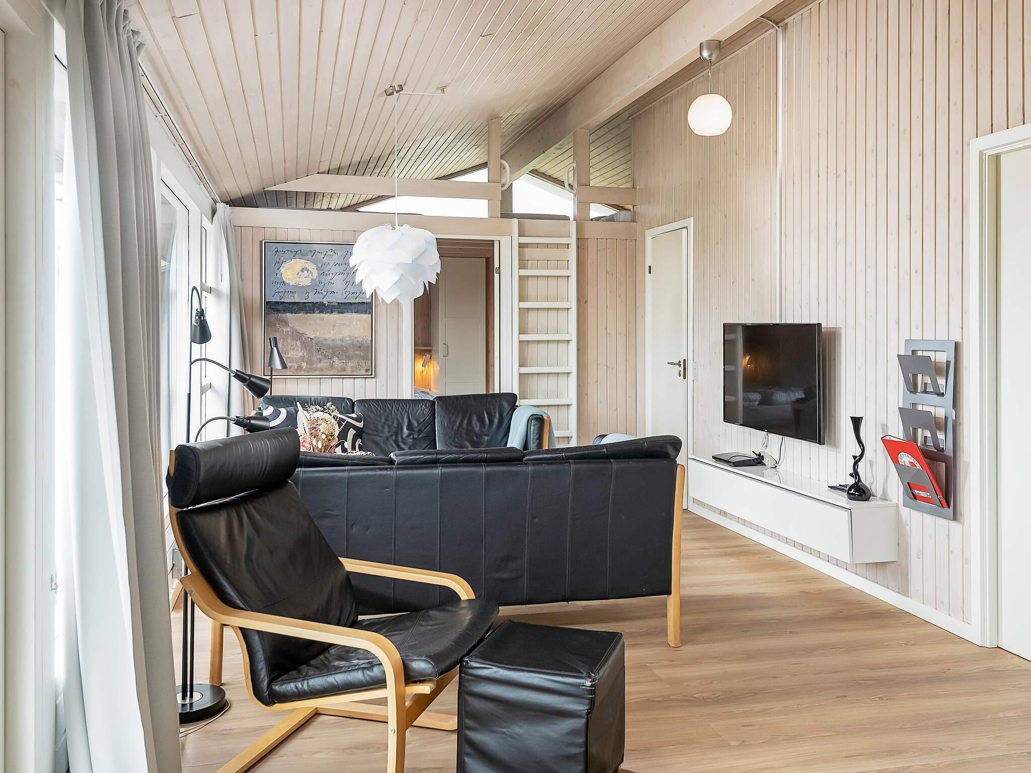 Den Mittelpunkt des Ferienhauses bildet der offene Küchen-/Wohnbereich für das Familienleben, in dem es viel Platz für gemeinsame Aktivitäten gibt. Zur Unterhaltung steht u.a. ein großer Flachbildfernseher, WLAN und einen gemütlichen Holzofen. Das Haus verfügt zudem über vier Schlafzimmer mit jeweils zwei Schlafplätzen in Betten sowie über einen Hems oben unter der Dachschräge für bis zu vier Kinder.