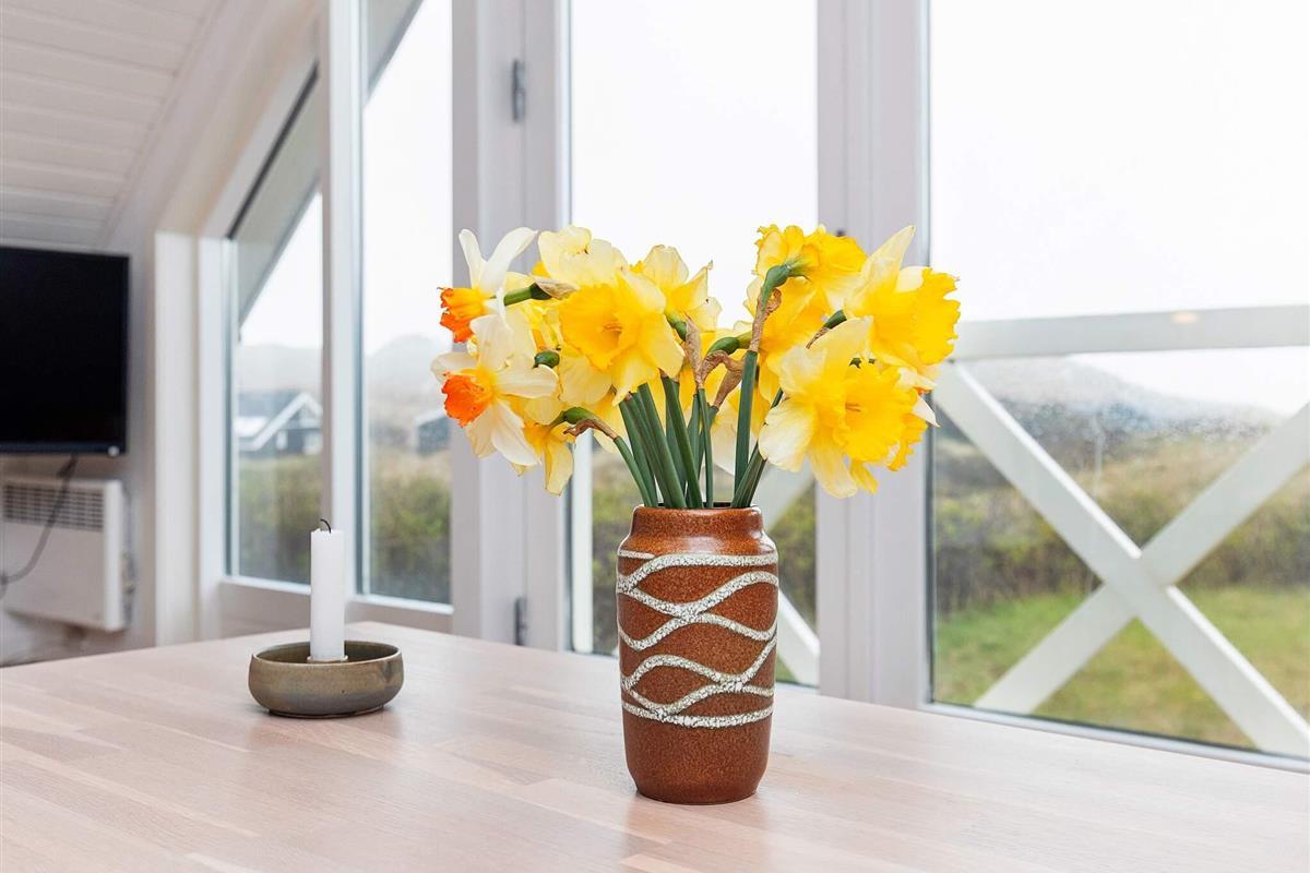 Quasi überall im Innenbereich hat man das Gefühl, sich mitten in den Dünen zu befinden. Auf der nach Südwesten ausgerichteten Terrasse sitzen Sie völlig ungestört und schön geschützt. Hier finden Sie Sonne oder Schatten und können die Meeresbrise und die reizvolle Dünenlandschaft ringsum genießen.