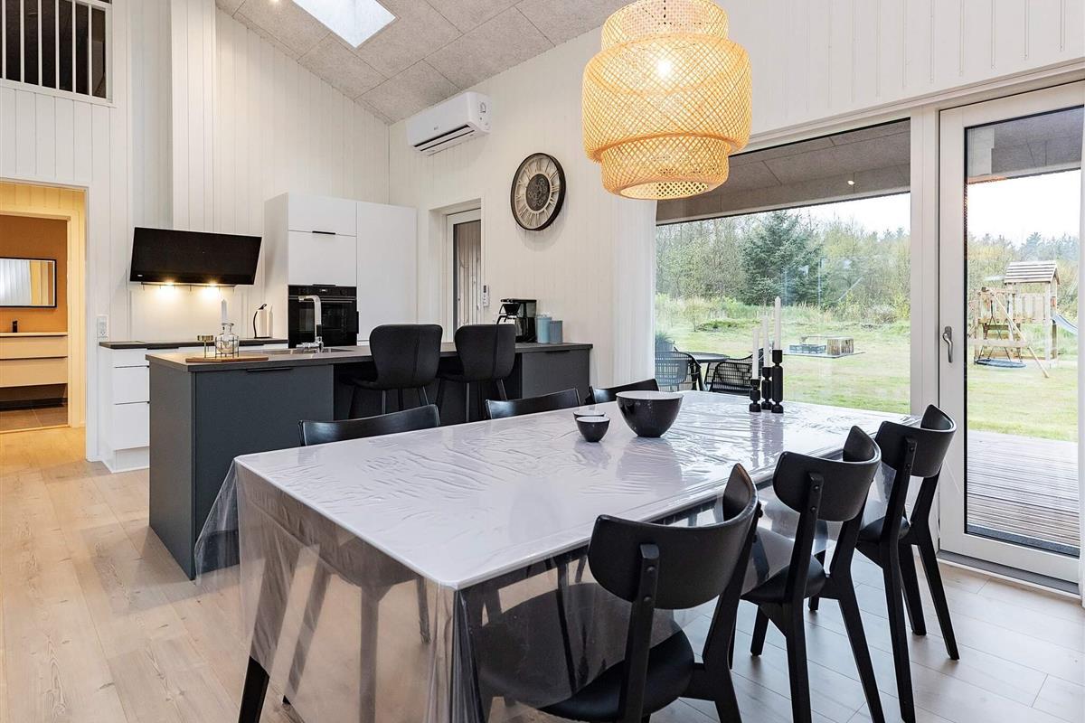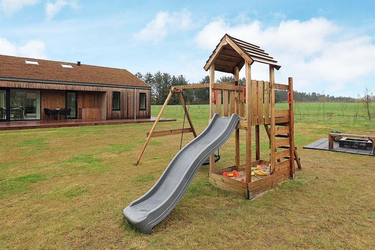 Dieses helle und gut ausgestattete Ferienhaus am Saltum Strand bietet den perfekten Rahmen für Familienentspannung. Es verfügt über einen Whirlpool im Badezimmer für wohltuende Momente und ein großzügiges, kinderfreundliches Grundstück. Der Außenbereich umfasst einen Kletterturm, eine Schaukel und einen Sandkasten. Die großen Terrassen bieten sowohl sonnige als auch schattige Sitzgelegenheiten – ideal für Sommerabende am Grill.