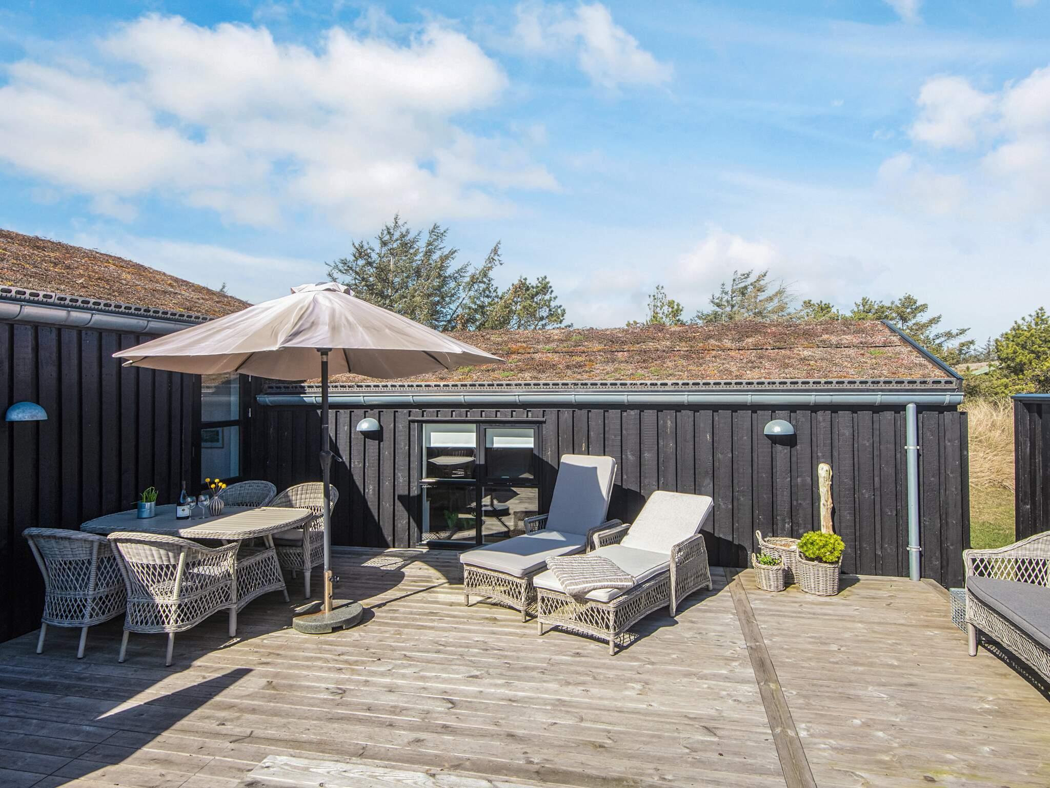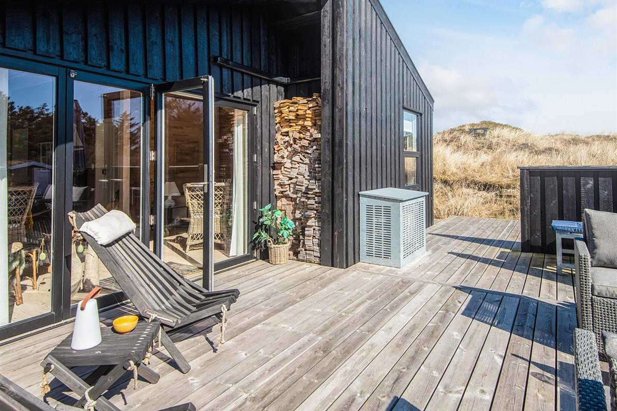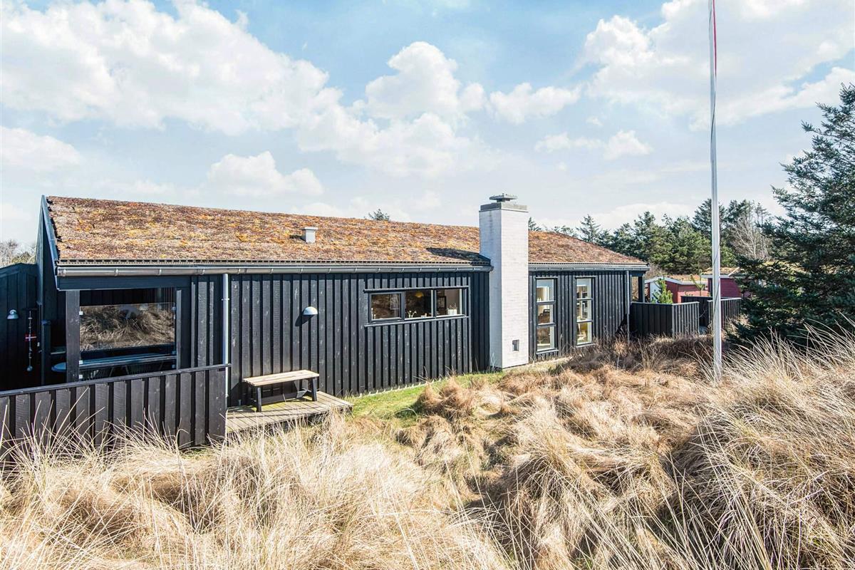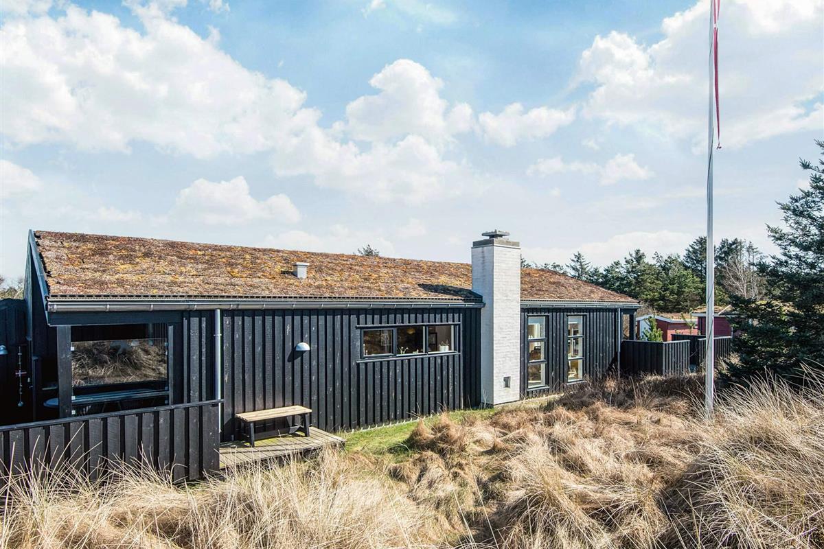 Auf einem herrlichen Dünengrundstück liegt dieses schöne Ferienhaus, nur wenige Gehminuten vom Meer und den Dünen entfernt. Ein attraktives, schwarz gestrichenes Ferienhaus im typischen Stil mit Sedumdach. Das Haus verschmilzt fast mit der Naturlandschaft ringsum, in der Sie das Rauschen der Nordsee sowie das Flüstern des Windes hören können.