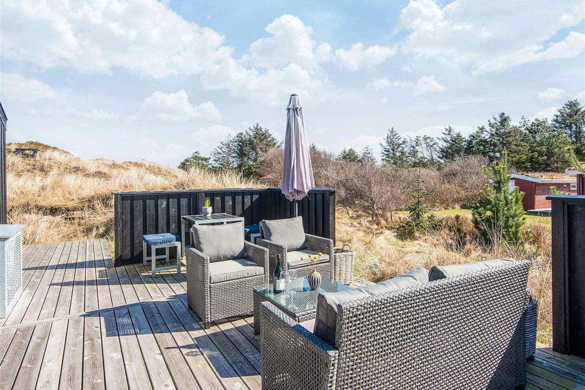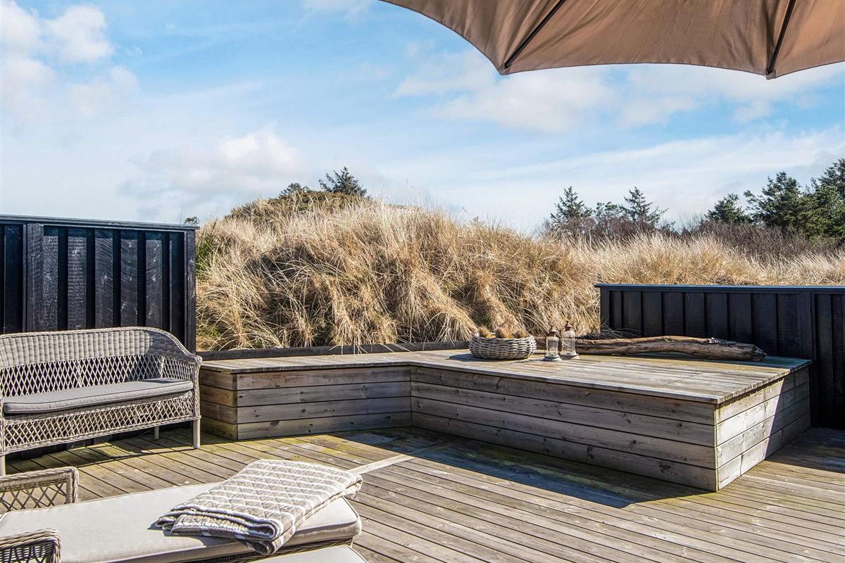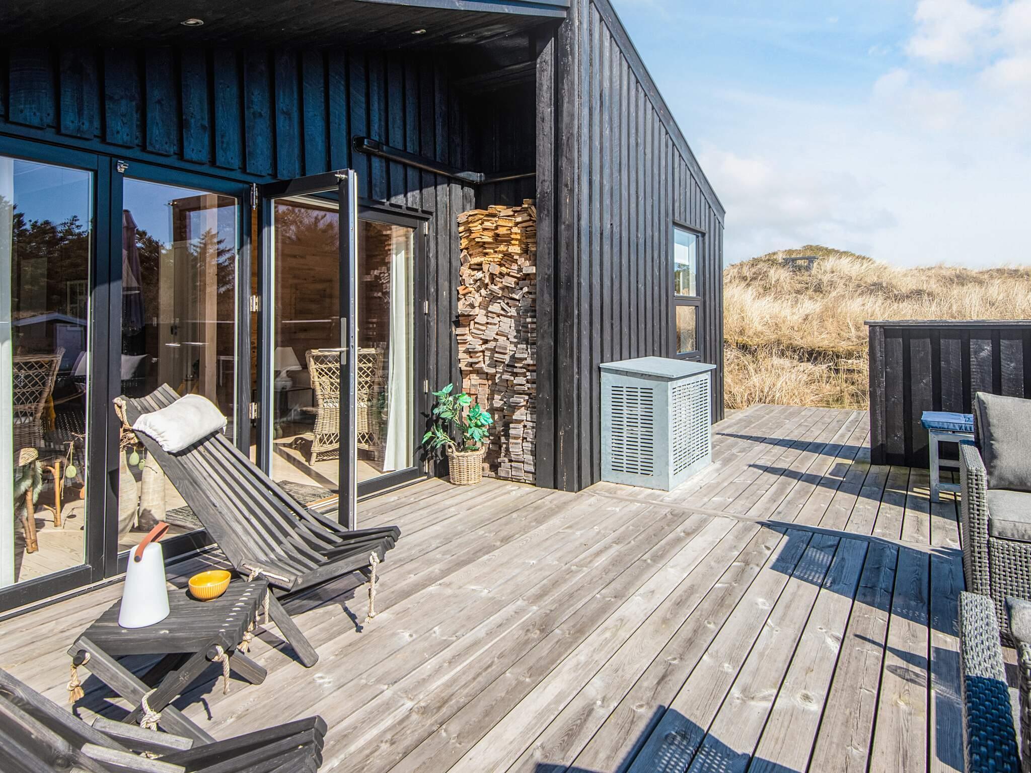 Auf einem herrlichen Dünengrundstück liegt dieses schöne Ferienhaus, nur wenige Gehminuten vom Meer und den Dünen entfernt. Ein attraktives, schwarz gestrichenes Ferienhaus im typischen Stil mit Sedumdach. Das Haus verschmilzt fast mit der Naturlandschaft ringsum, in der Sie das Rauschen der Nordsee sowie das Flüstern des Windes hören können.