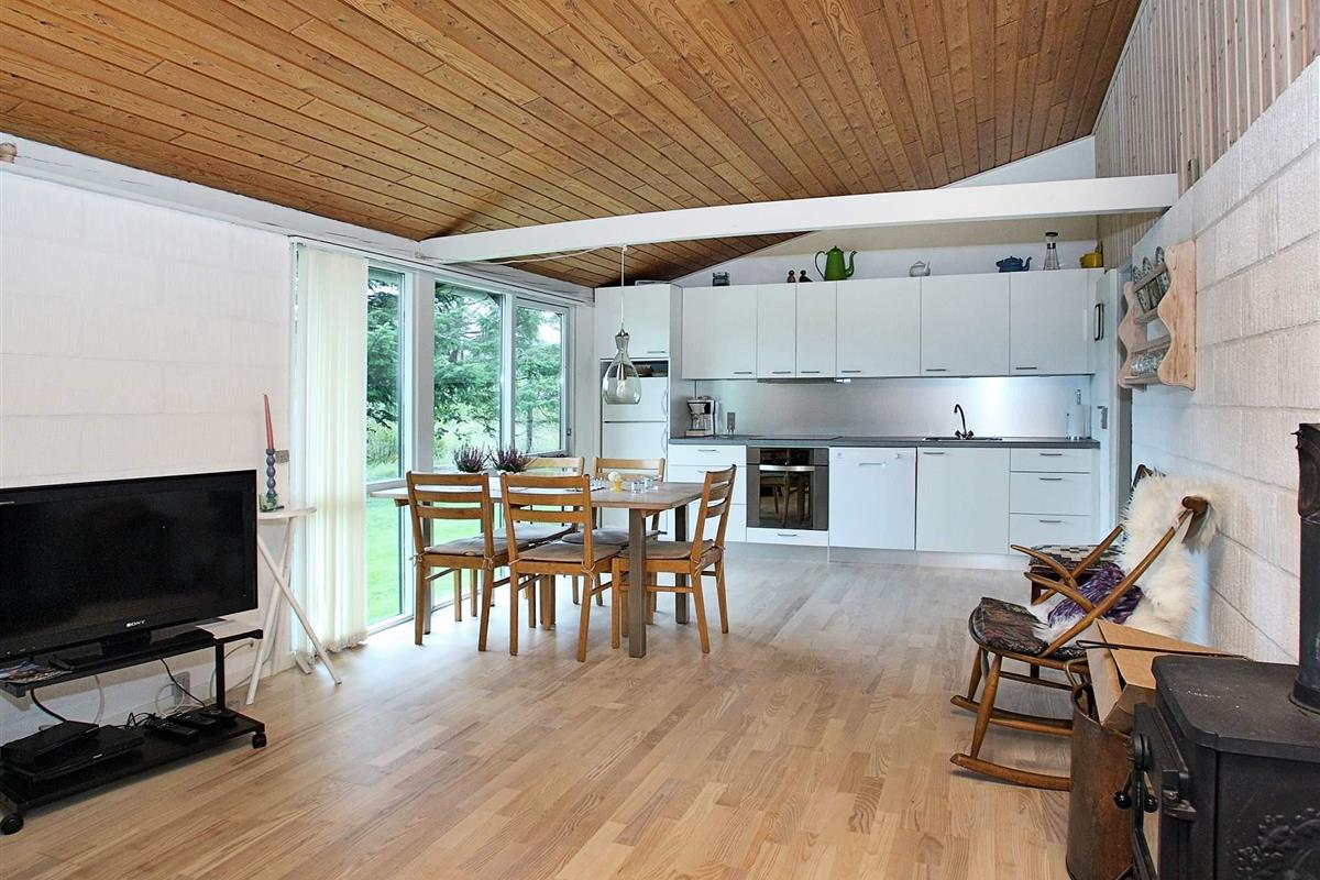 Ferienhaus auf einem großen, ungestörten Naturgrundstück in ruhiger, landschaftlich attraktiver Umgebung bei Saltum Strand. Es wurde 2013 modernisiert und erhielt u.a. neue Fußböden und eine neue Küche, die offen mit dem Wohnzimmer kombiniert ist. Weiterhin gibt es drei Schlafzimmer und ein Bad mit Dusche und angenehmer Fußbodenheizung. Für das Auto gibt es ein Carport und die Terrasse lädt zum Entspannen im Freien ein. Das Haus ist persönlich und geschmackvoll im typisch dänischen Ferienhausstil eingerichtet. Das Wohnzimmer ist geräumig und hat Fenster nach Süden und Westen, die viel Licht hereinlassen. Die Möbel sind gepflegt und die Ausschmückung auf den Stil des Hauses abgestimmt. Vom Wohnzimmer geht es direkt hinaus auf die Terrasse, auf der Sie ungestört sitzen und das 5000 m² große Grundstück mit Randbepflanzung genießen können. Für Kinder stehen Schaukel und Sandkasten bereit.