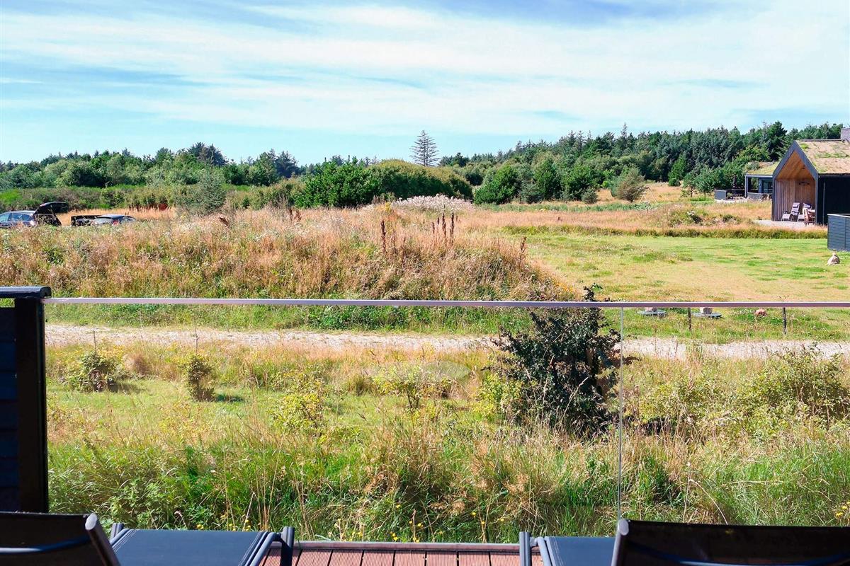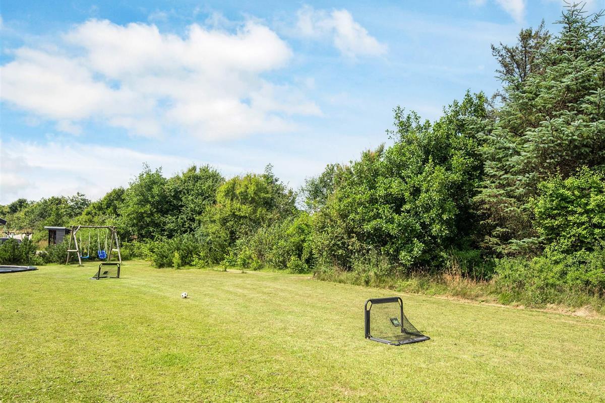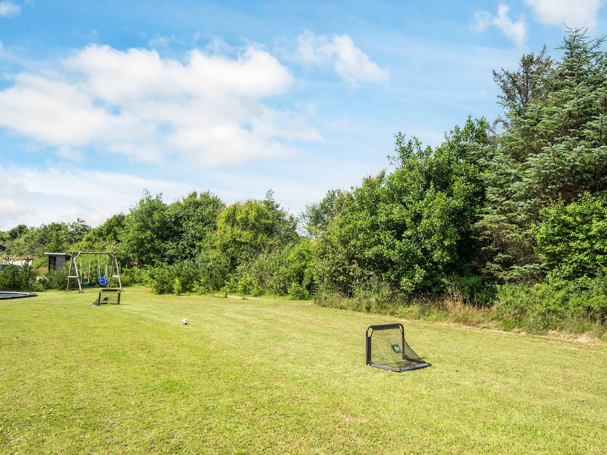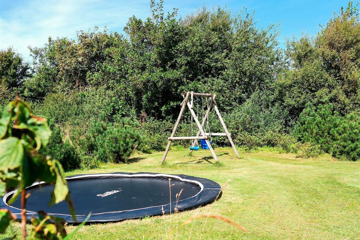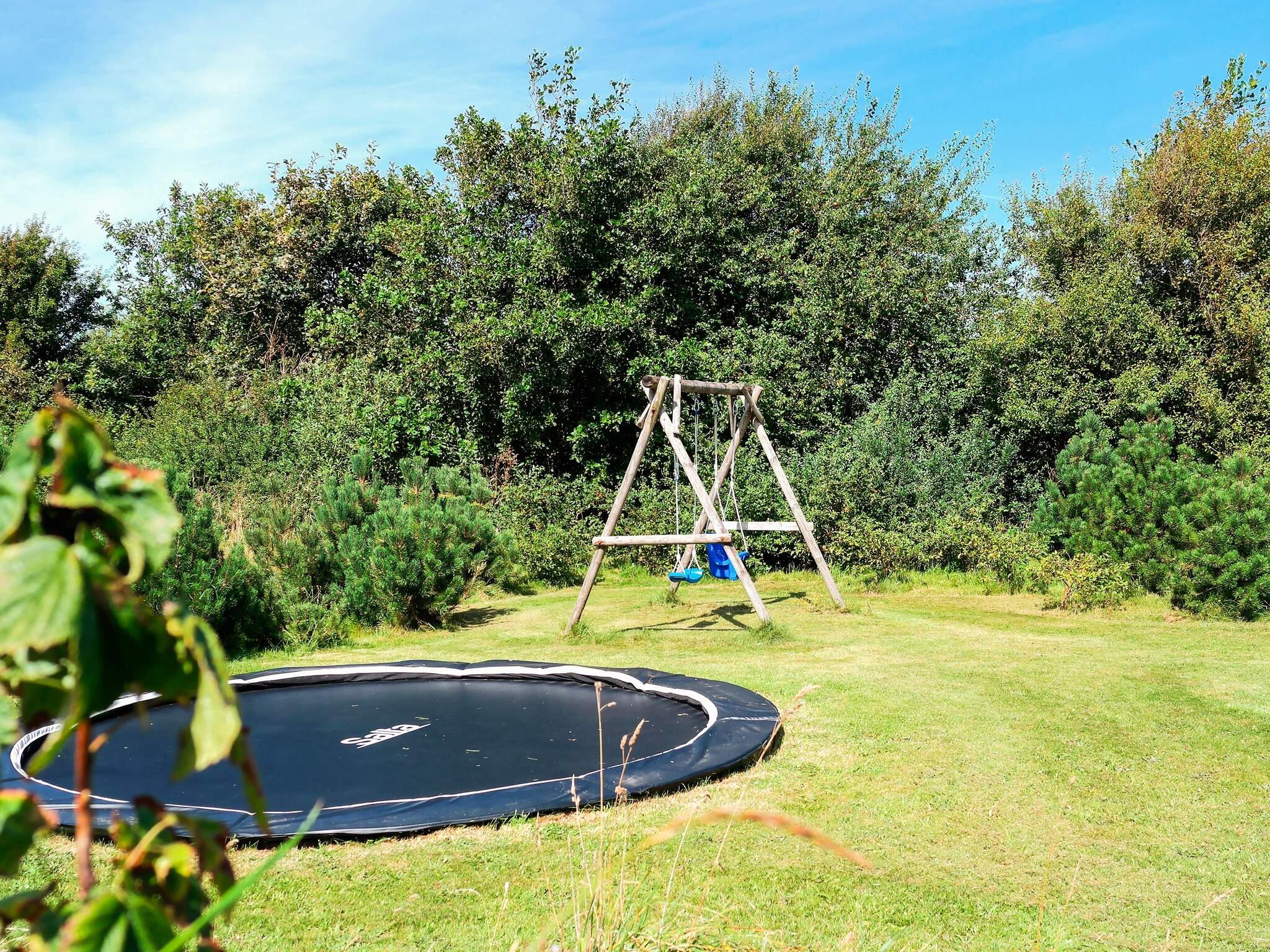 Vom Wohnbereich hat man Zugang zur teilweise überdachten Terrassenfläche, die nach Osten, Süden und Westen ausgerichtet ist. Auf dem ebenen Naturgrundstück mit kleinem Ausblick zum Wasser stehen für Kinder Schaukel und Gartentrampolin bereit (Nutzung nur auf eigenes Risiko!). Außerdem kann auf der einen, eingezäunten Terrasse mit kleinen Toren Ball oder Hockey gespielt werden. Zu Fuß erreicht man über kleine, angelegte Pfade, die durch die Landschaft führen, gut und einfach Strand und Meer.
