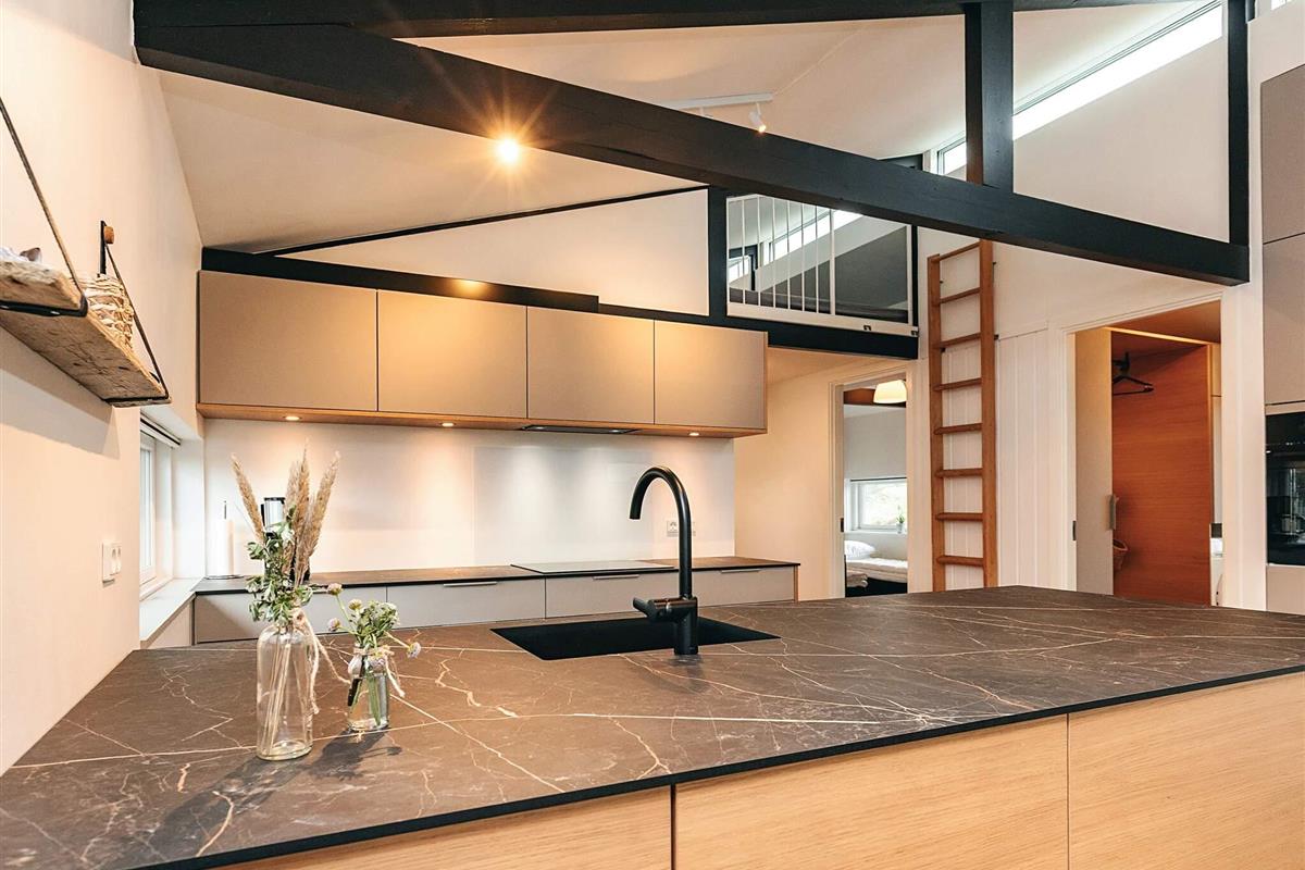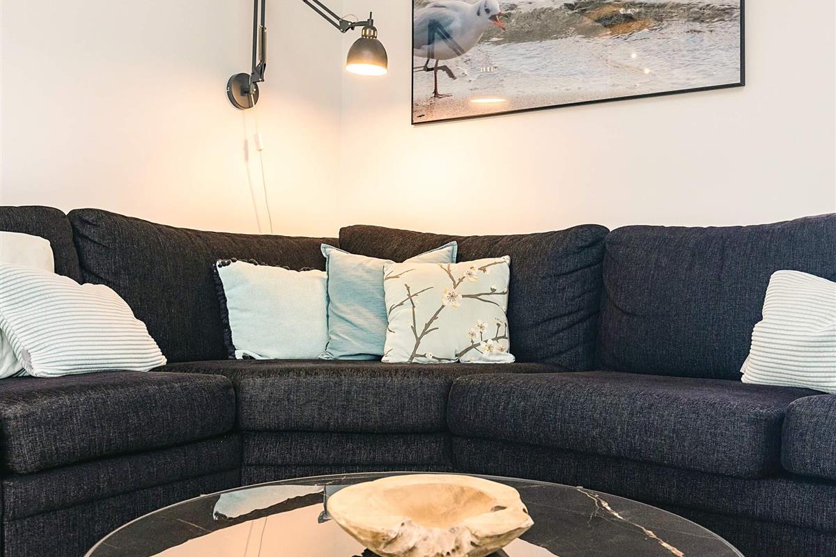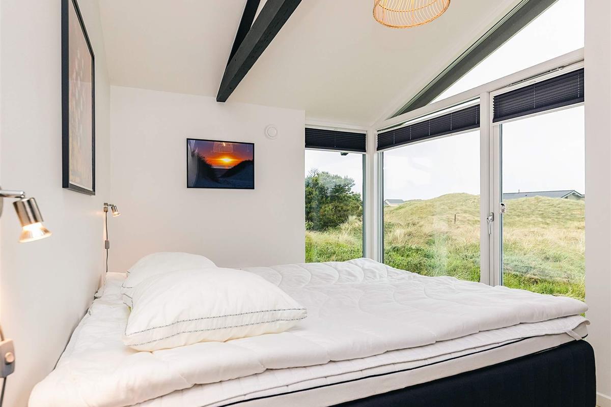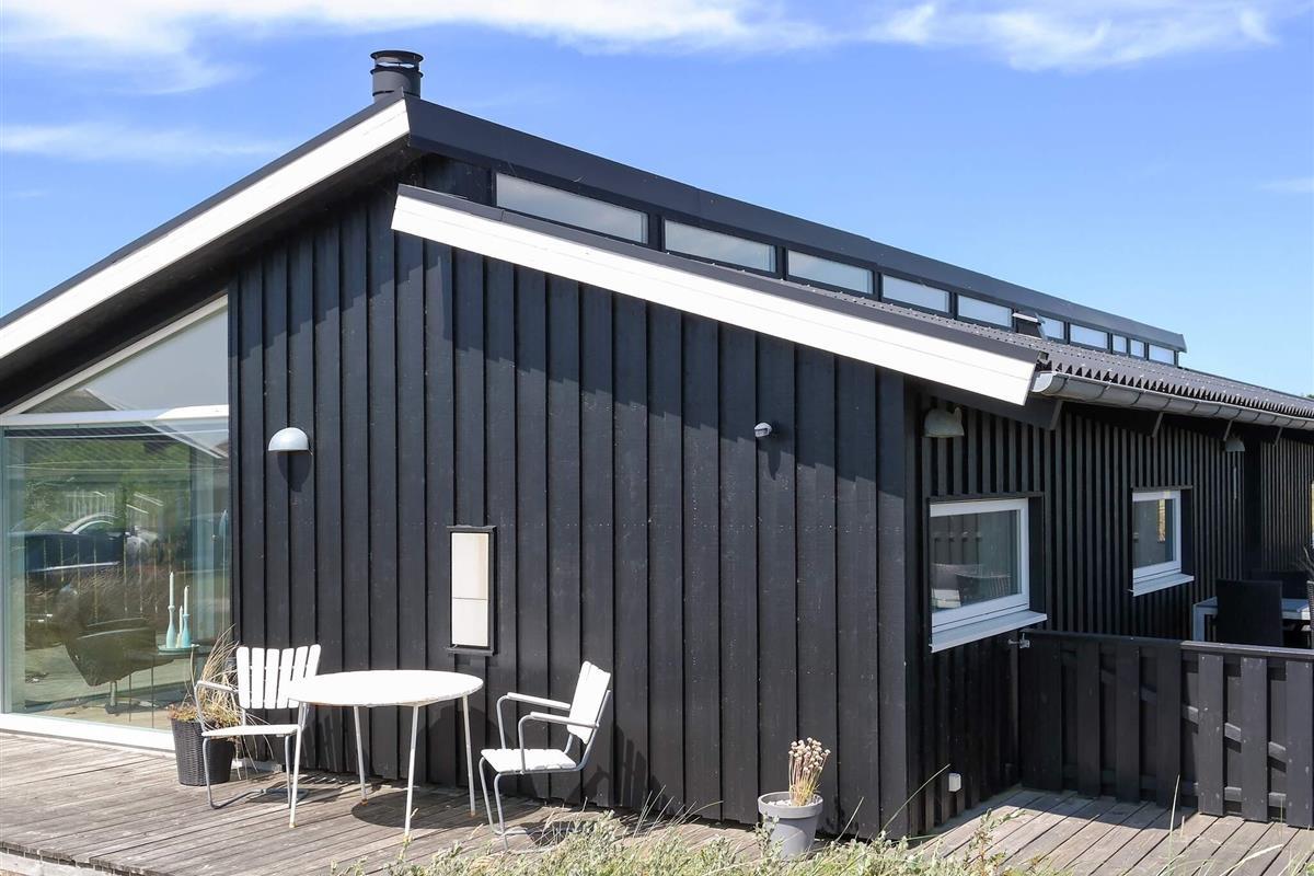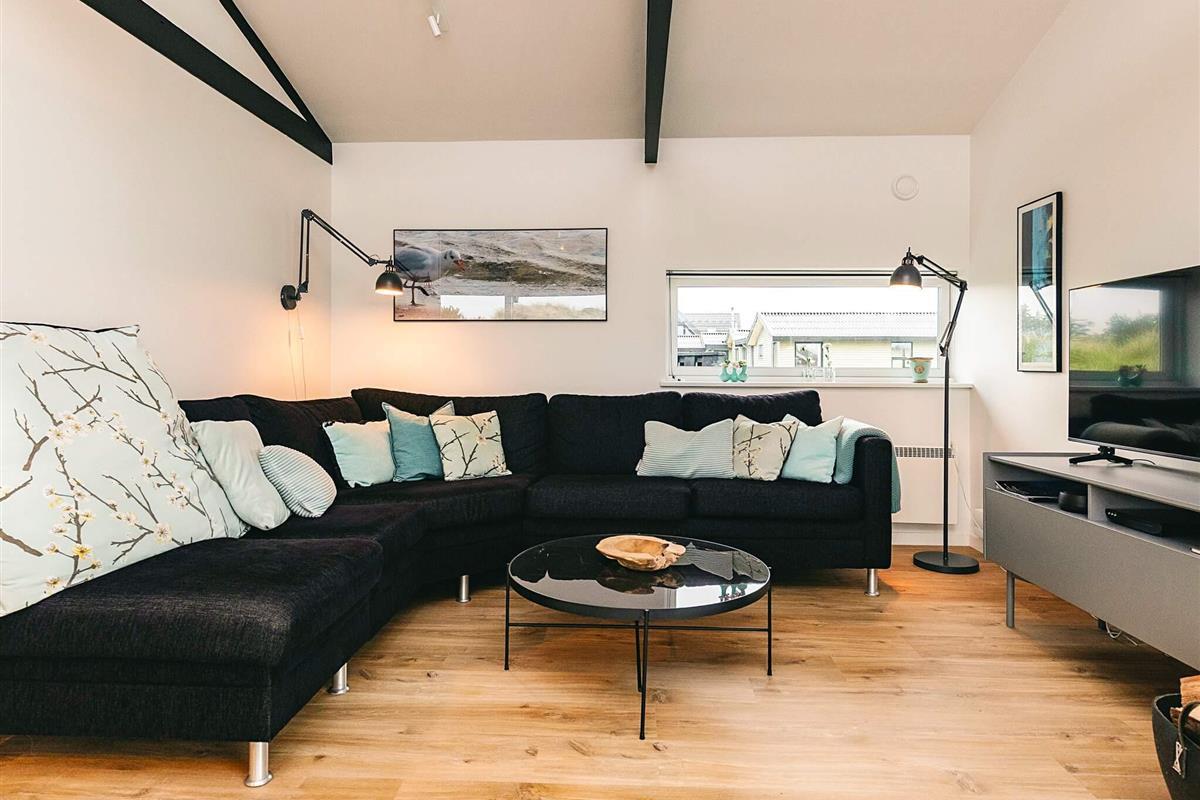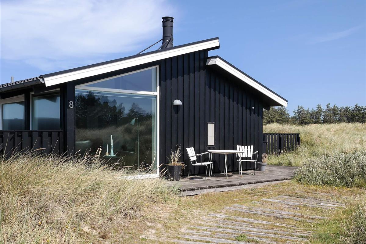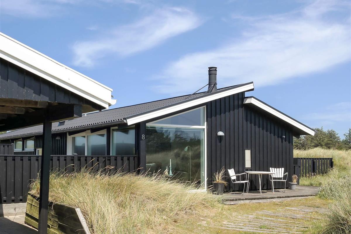 Die Lage ist erstklassig. Obwohl sich weitere Ferienhäuser in der Umgebung befinden, bietet das Haus dank seiner idyllischen Lage, inmitten von Dünen und Natur, absolute Privatsphäre und Ruhe. Der helle und moderne Innenbereich besticht durch eine offene Küche mit Essbereich, die direkt in das Wohnzimmer übergeht. Der zentral platzierte Kaminofen sorgt für Gemütlichkeit und Wärme im ganzen Haus.