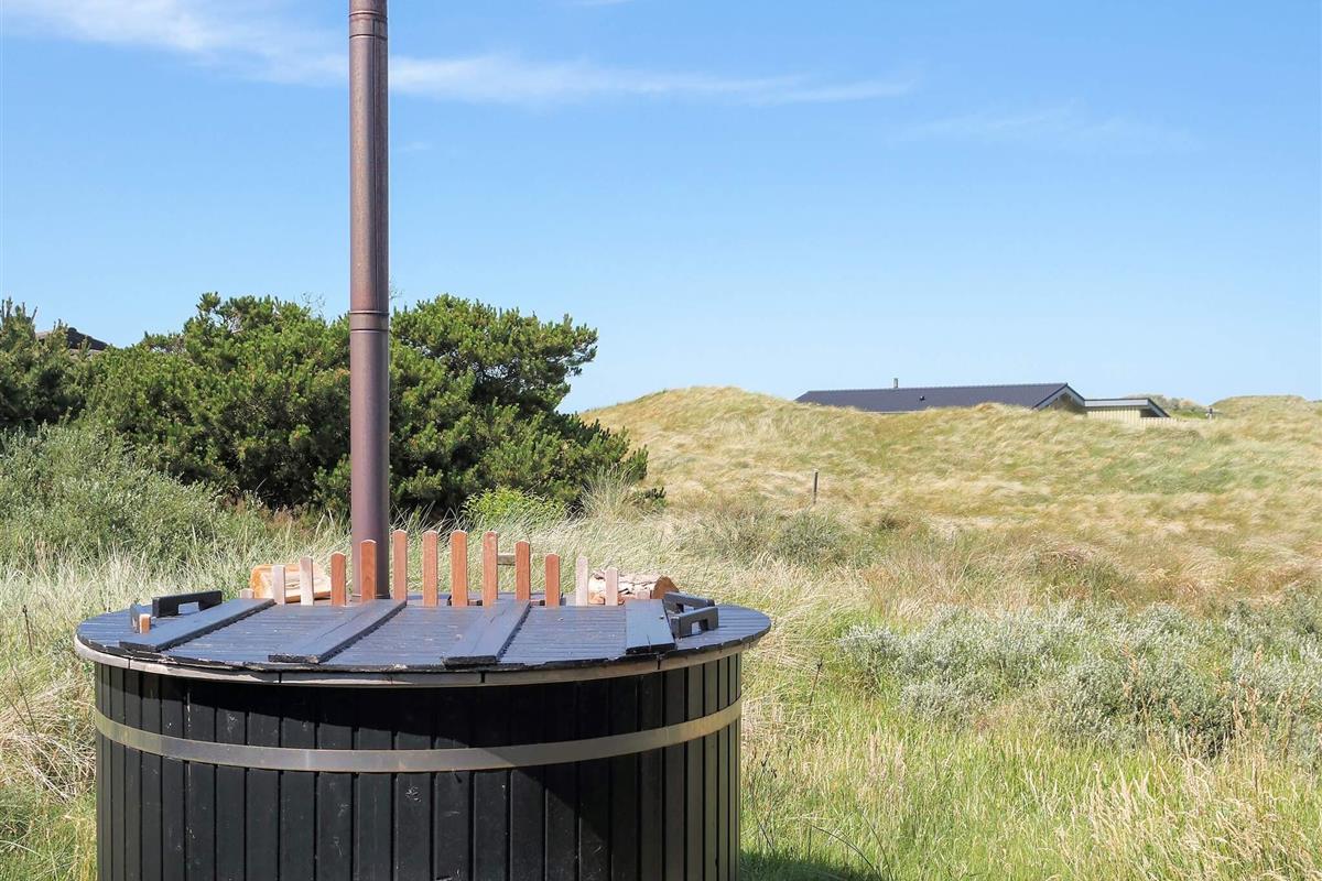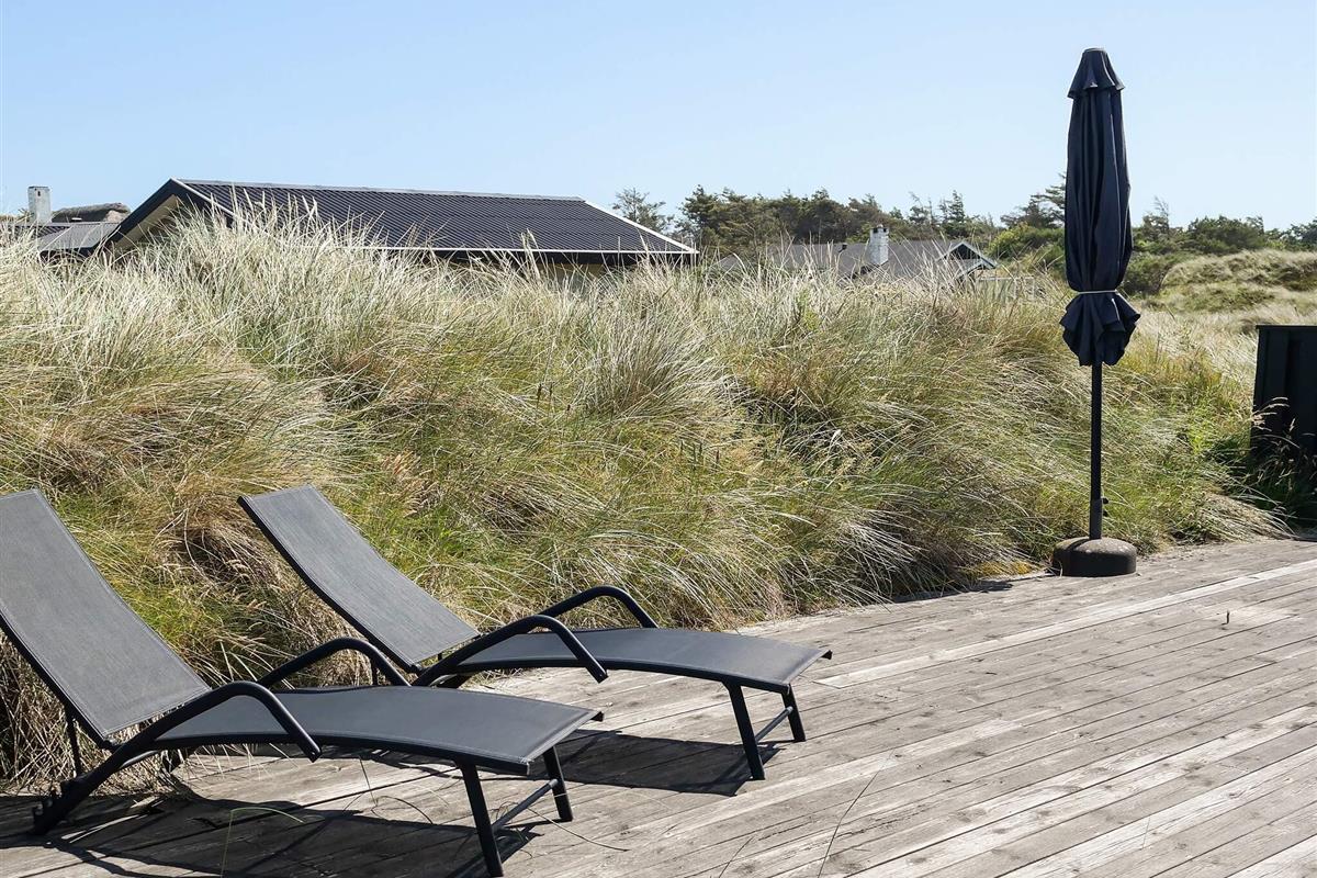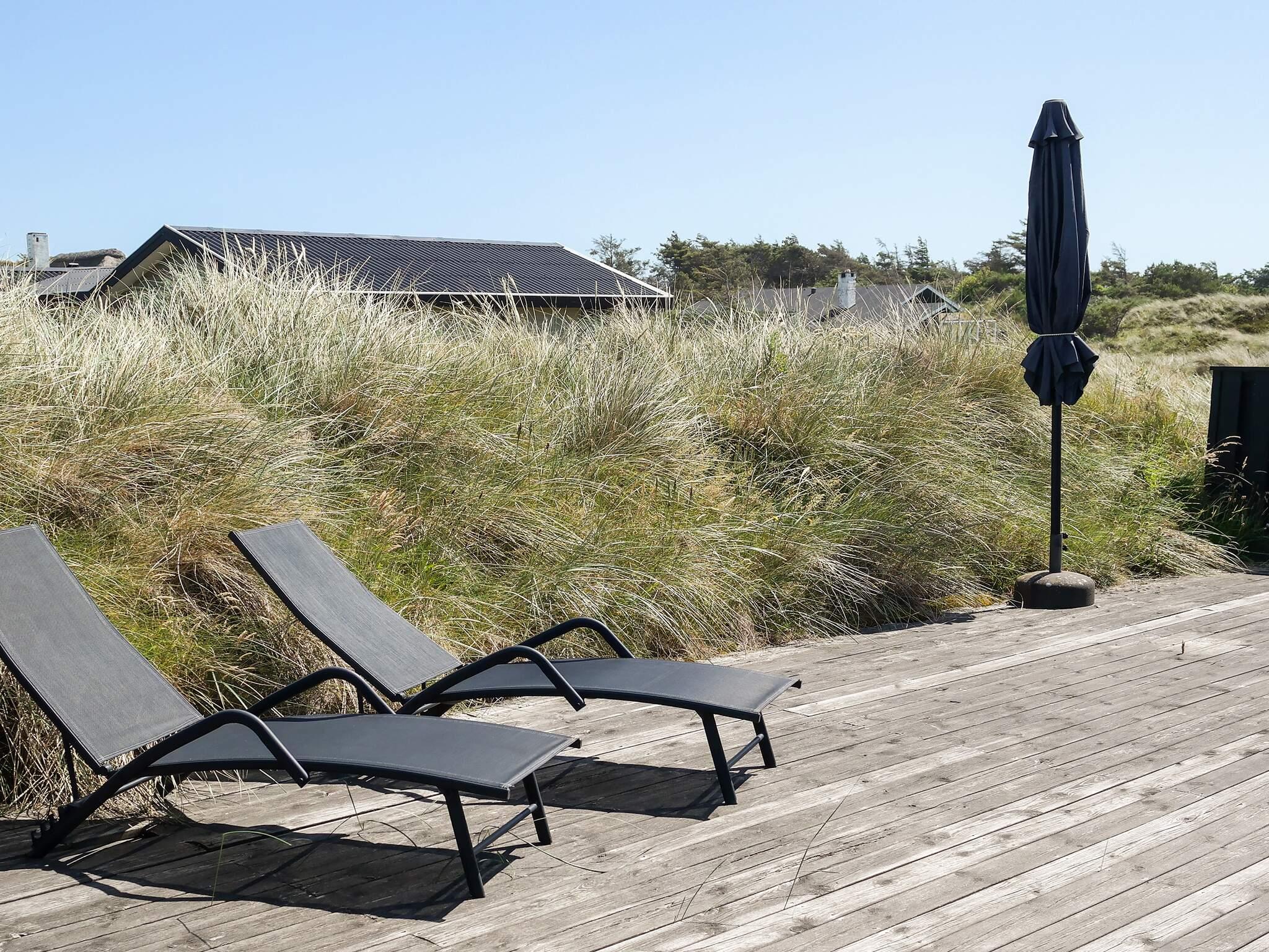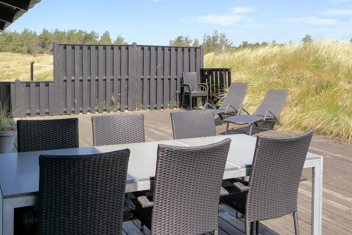 Von der Wohnküche aus gelangt man direkt auf eine der beiden großen Terrassen. Beide Terrassen sind durch einen Zaun und Dünen abgeschirmt und bieten somit optimale Bedingungen für ungestörte Entspannung in Ruhe und Frieden. Ein besonderes Highlight ist der Naturpool, in dem Sie an langen, sonnigen Sommerabenden die Natur und die Aussicht genießen können.
