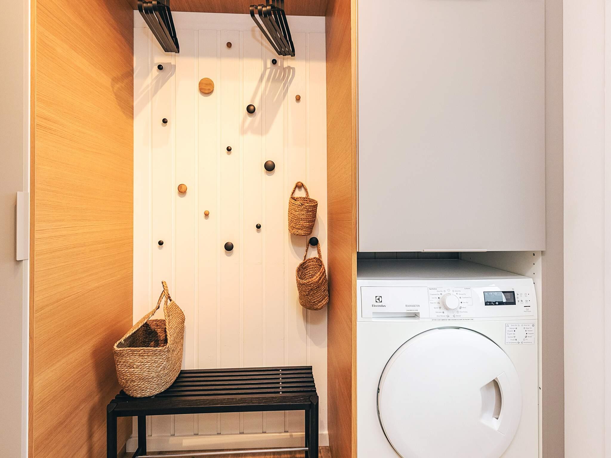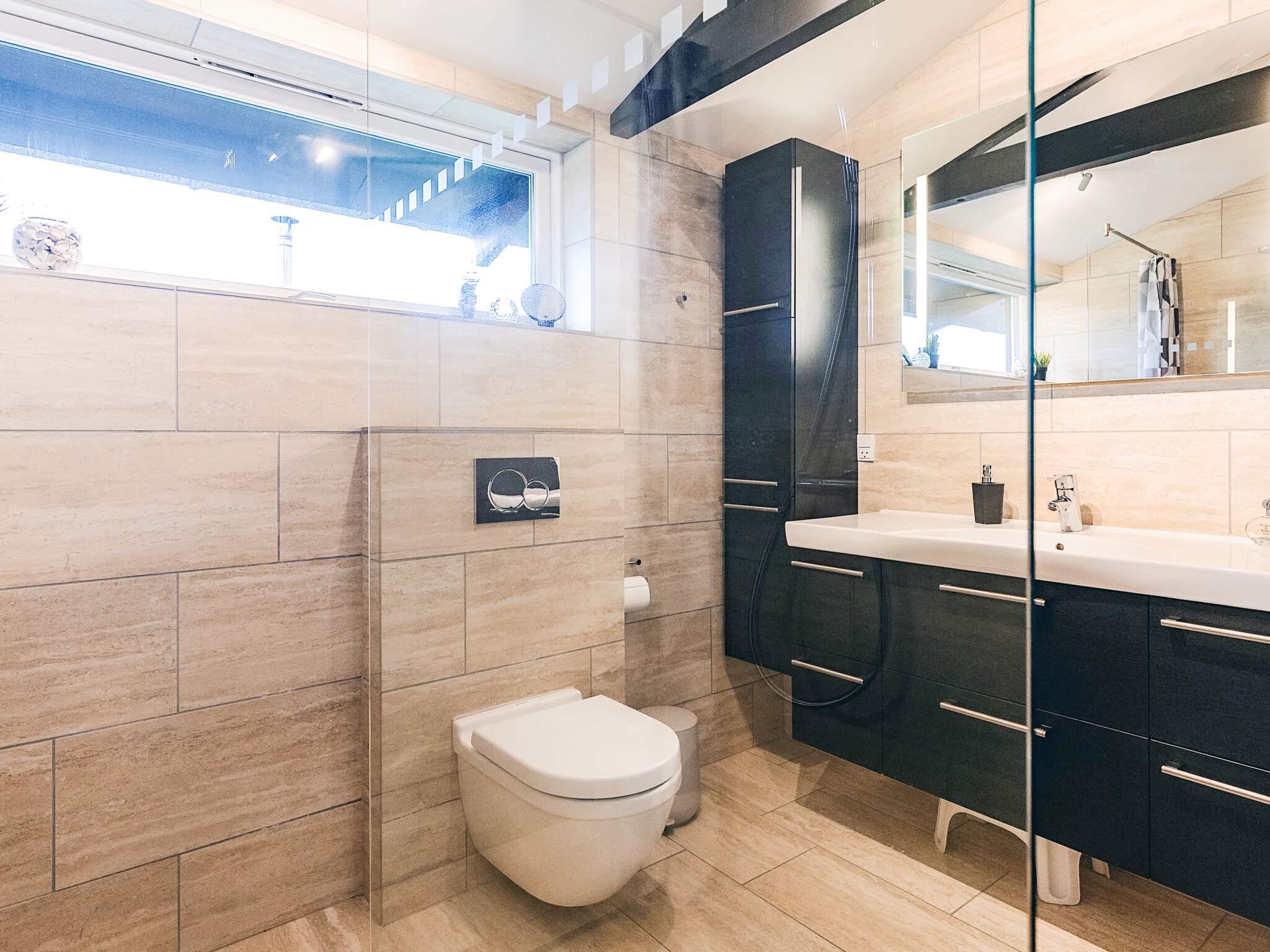 Bad: Waschm, Trockner, WC, Waschb., Dusche