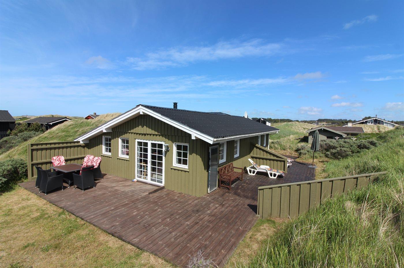 De vakantiewoning is gelegen op een 1250 m² groot Duingrond. Afstand tot de zee 250 m. Dichtstbijzijnde winkel 3000 m. Bij de vakantiewoning hoort 60 m² terras. Gereedschapsruimte. Parkeerplaats bij het huis.