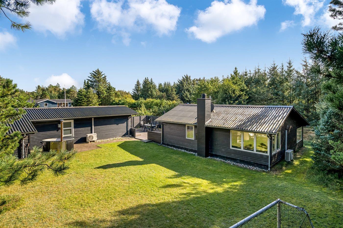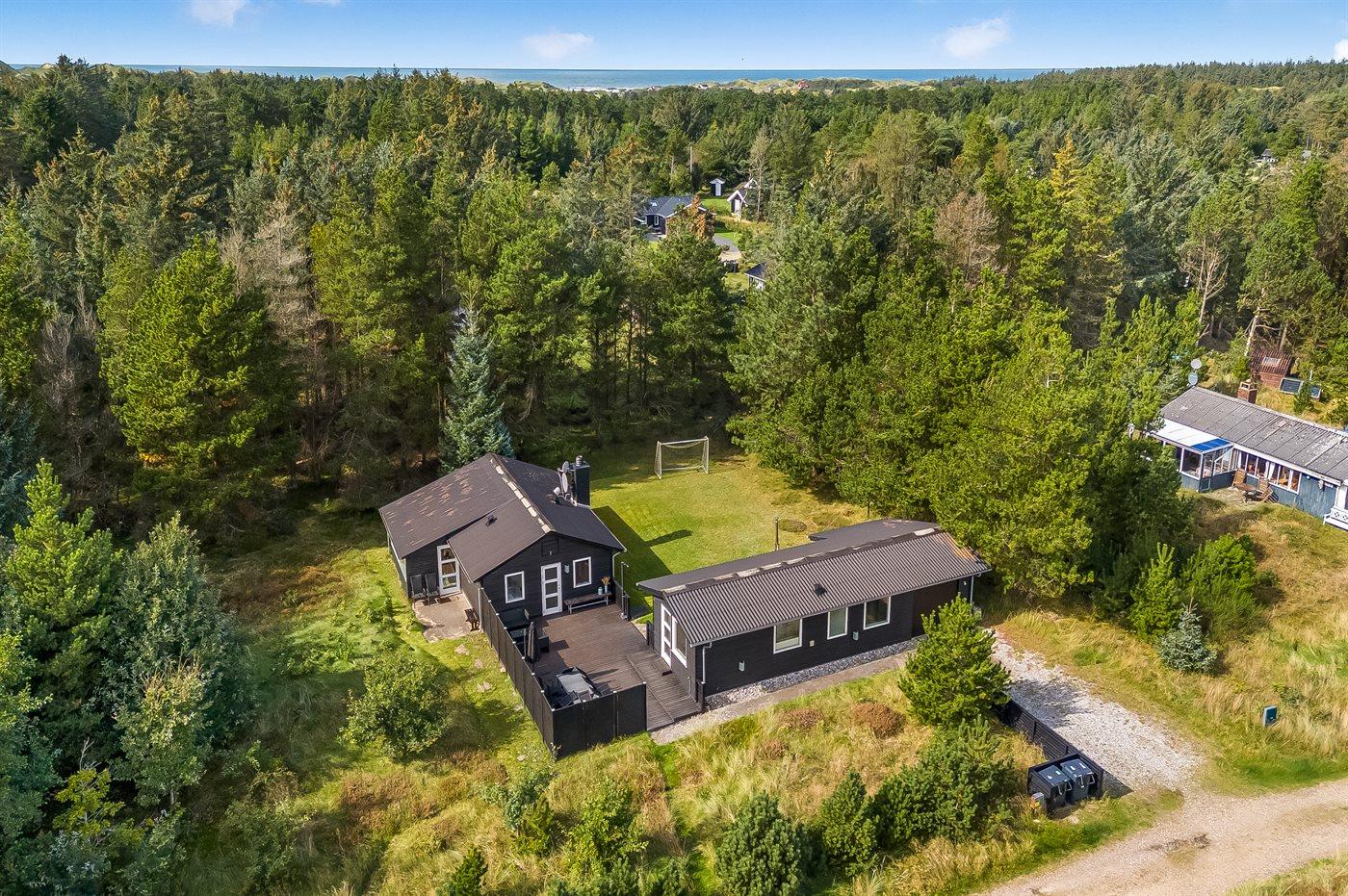 Ruim vakantiehuis in Saltum met hot tub, houtkachel en tafelvoetbal op een natuurrijk terrein.