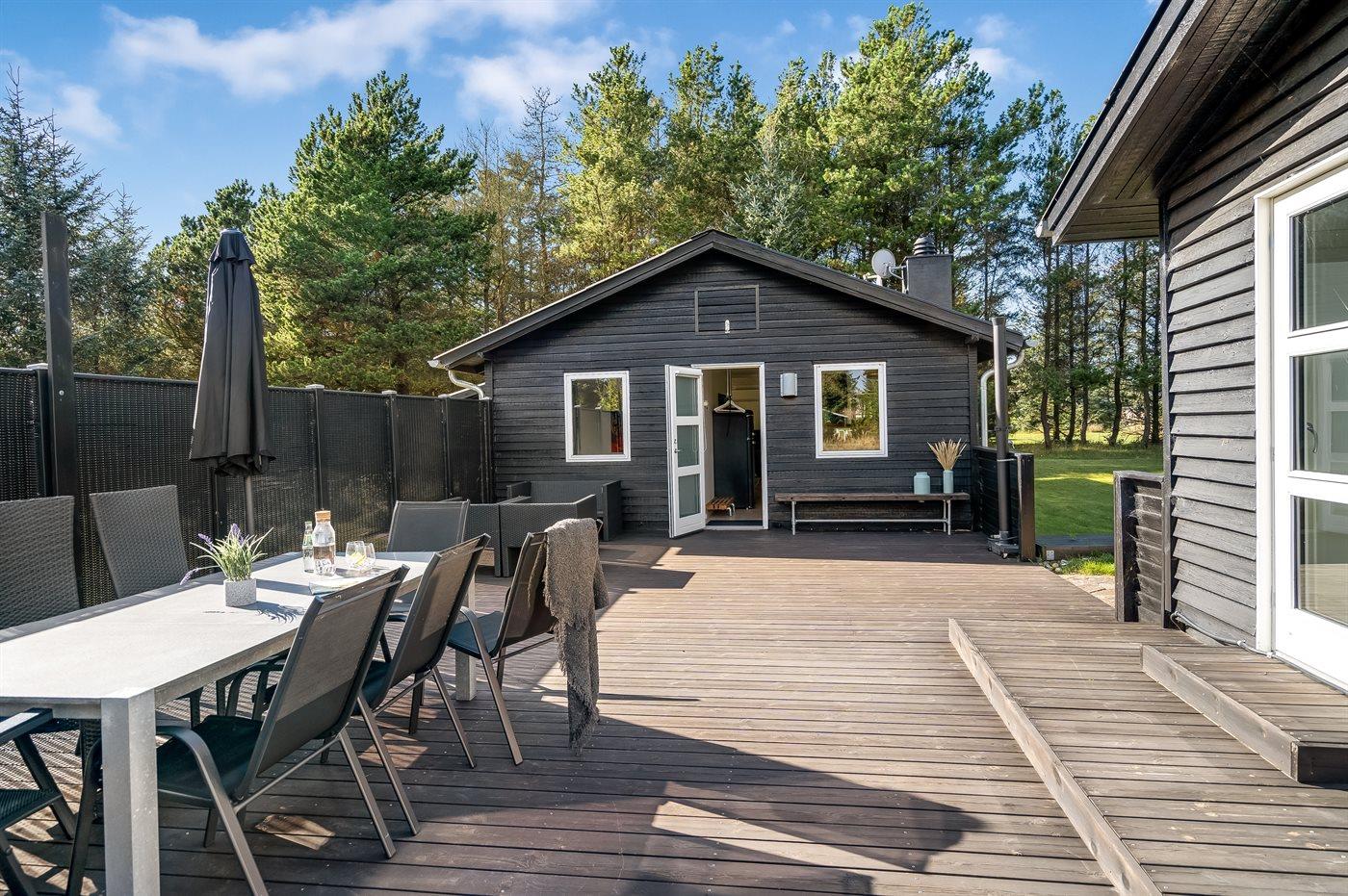 De vakantiewoning is gelegen op een 2000 m² groot natuural grond. Afstand tot de zee 1300 m. Dichtstbijzijnde winkel 4000 m. Er is een golfbaan op een afstand van 15000 m. Bij de vakantiewoning hoort terras. Voetbaldoel. Buitendouche. Barbecue. Parkeerplaats bij het huis.
