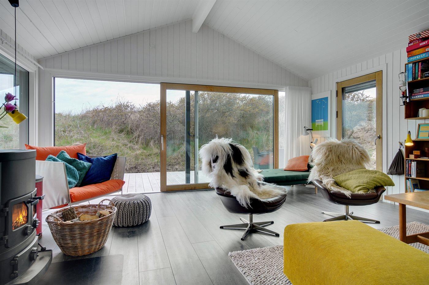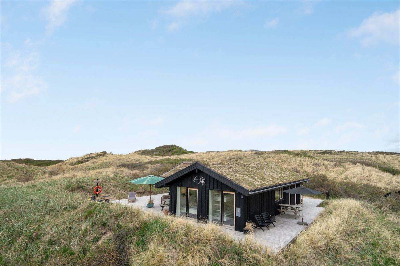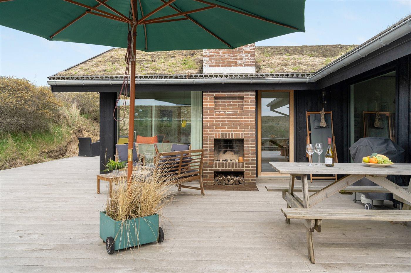 Sfeervol vakantiehuis nabij zee in Saltum met buitenhaard, terras, en moderne voorzieningen voor een ontspannen verblijf.