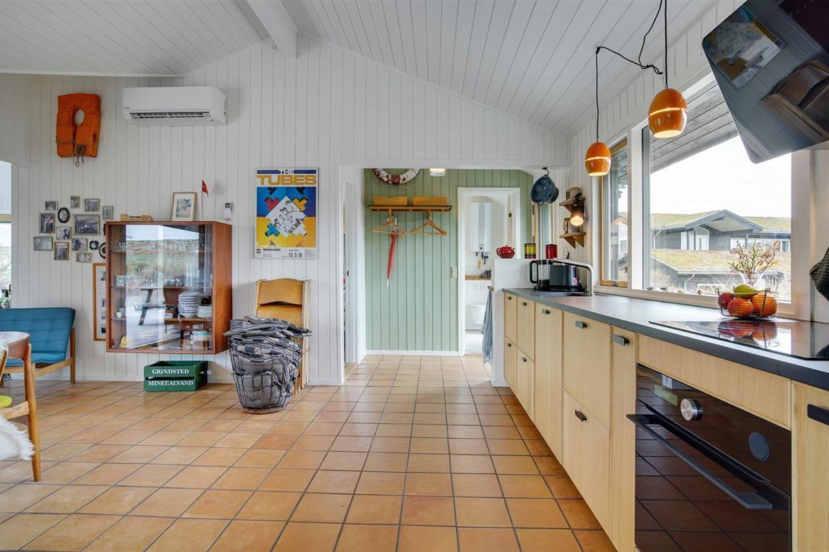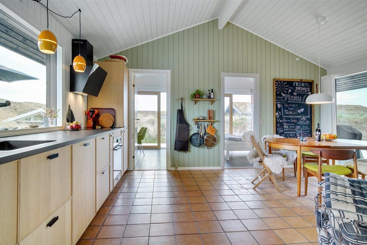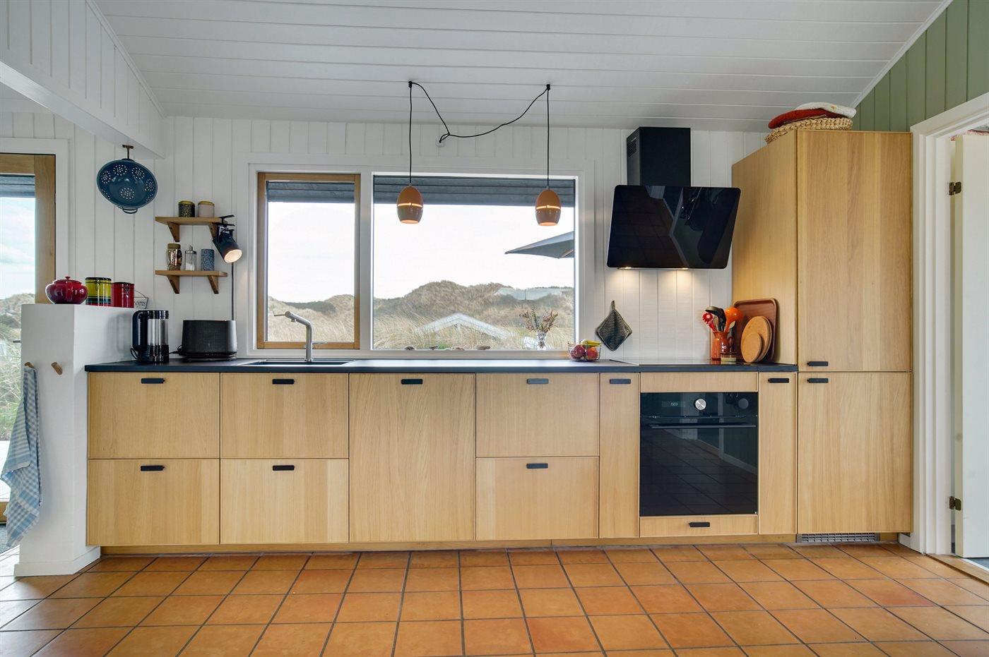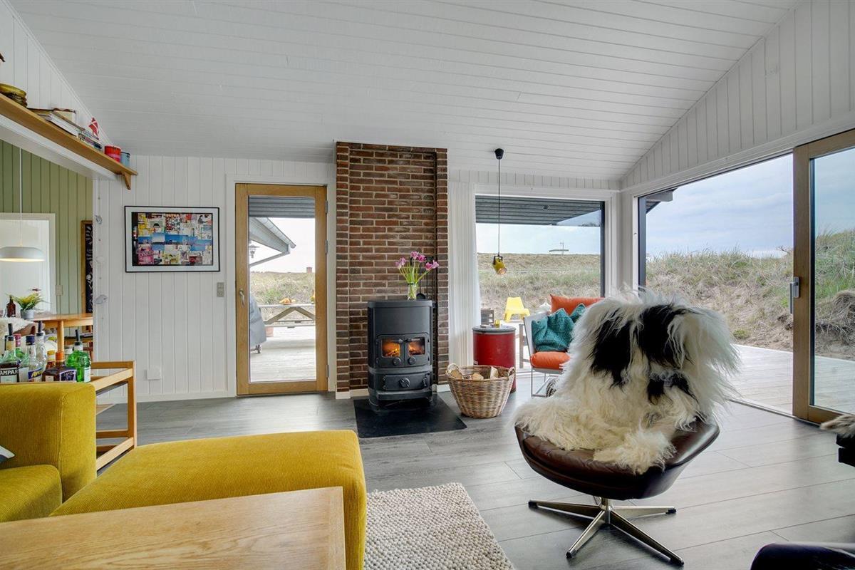 Sfeervol vakantiehuis nabij zee in Saltum met buitenhaard, terras, en moderne voorzieningen voor een ontspannen verblijf.