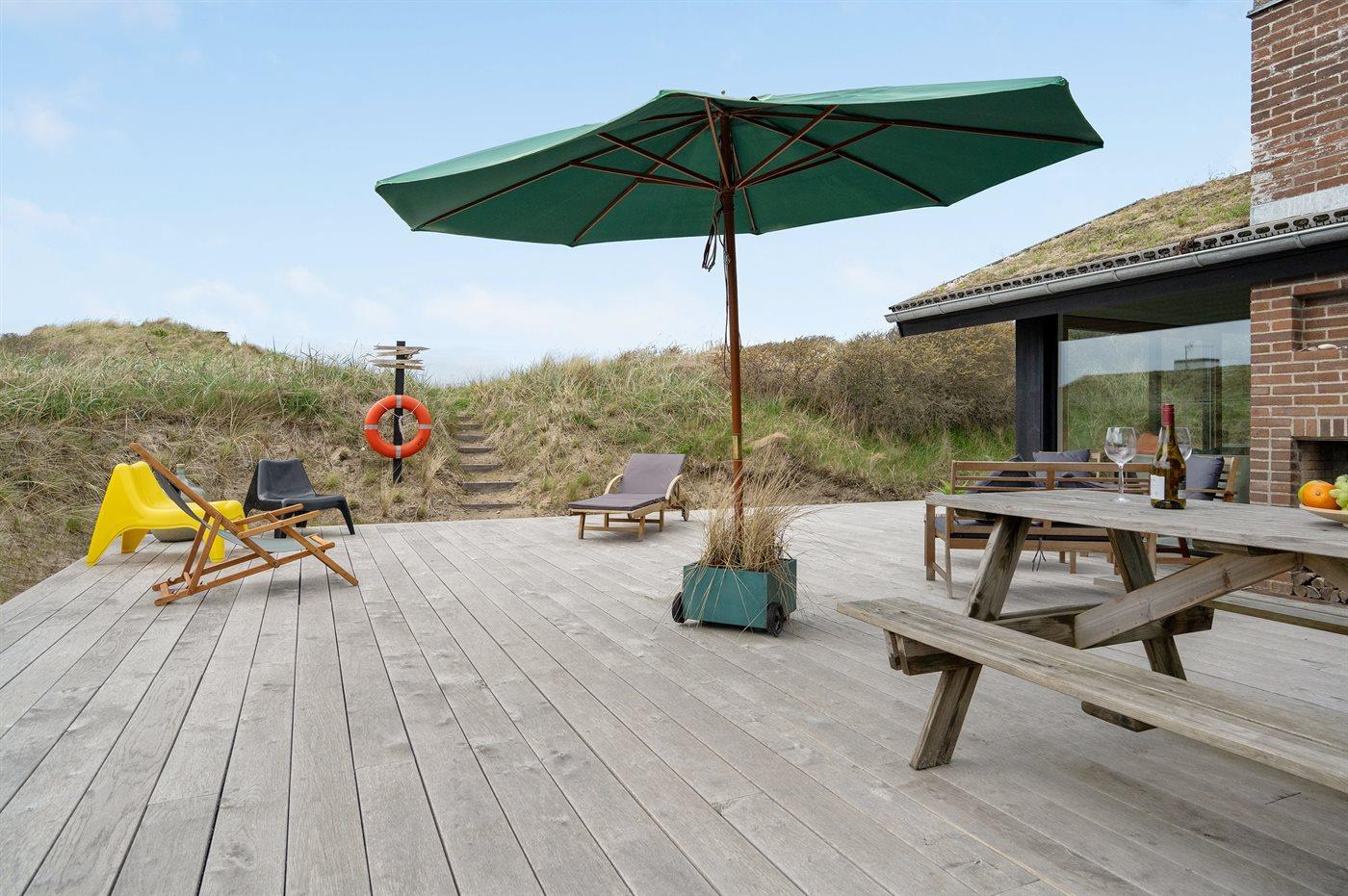 De vakantiewoning is gelegen op een 6000 m² groot Duingrond. Afstand tot de zee 140 m. Dichtstbijzijnde winkel 1900 m. Bij de vakantiewoning hoort terras. Buitendouche. Op zwoele avonden zorgt de buitenhaard voor een gezellige sfeer. Barbecue. Parkeerplaats bij het huis.
