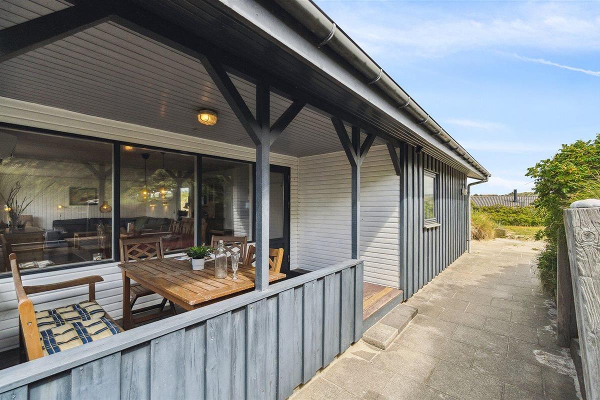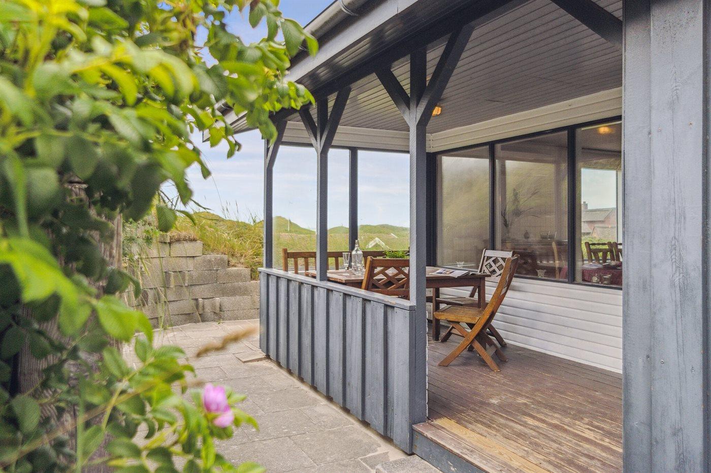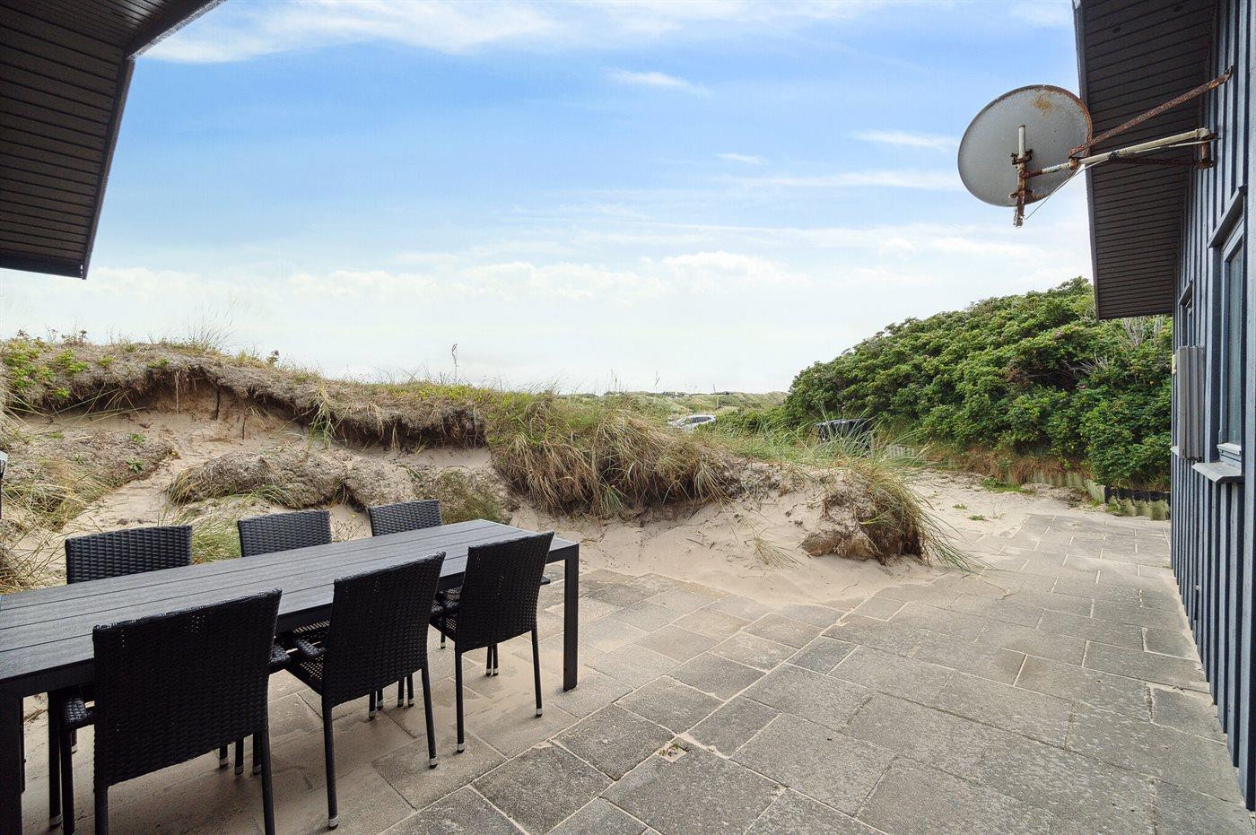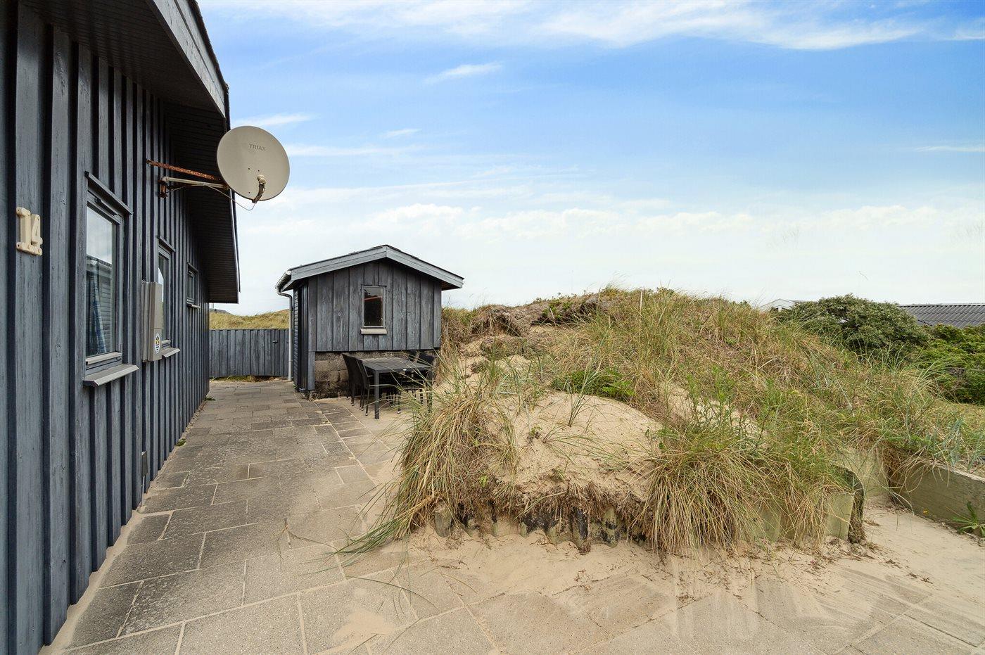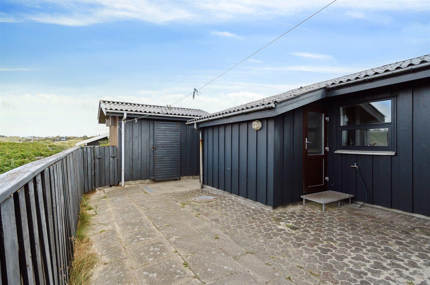 De vakantiewoning is gelegen op een 1800 m² groot Duingrond. Afstand tot de zee 250 m. Dichtstbijzijnde winkel 3000 m. Bij de vakantiewoning hoort 20 m² terras. Daarnaast is er een 8 m² groot overdekt terras. Gereedschapsruimte. Parkeerplaats bij het huis.