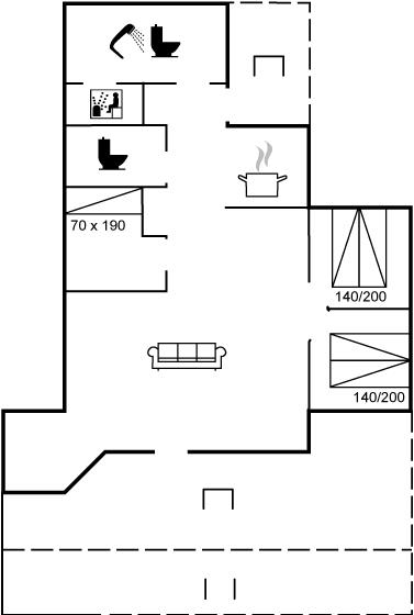 Er is 1 badkamer met douche en 2 toiletten, waarvan 1 gastentoilet. Er is vloerverwarming in 1 badkamer. De sauna biedt de gelegenheid tot ontspanning.