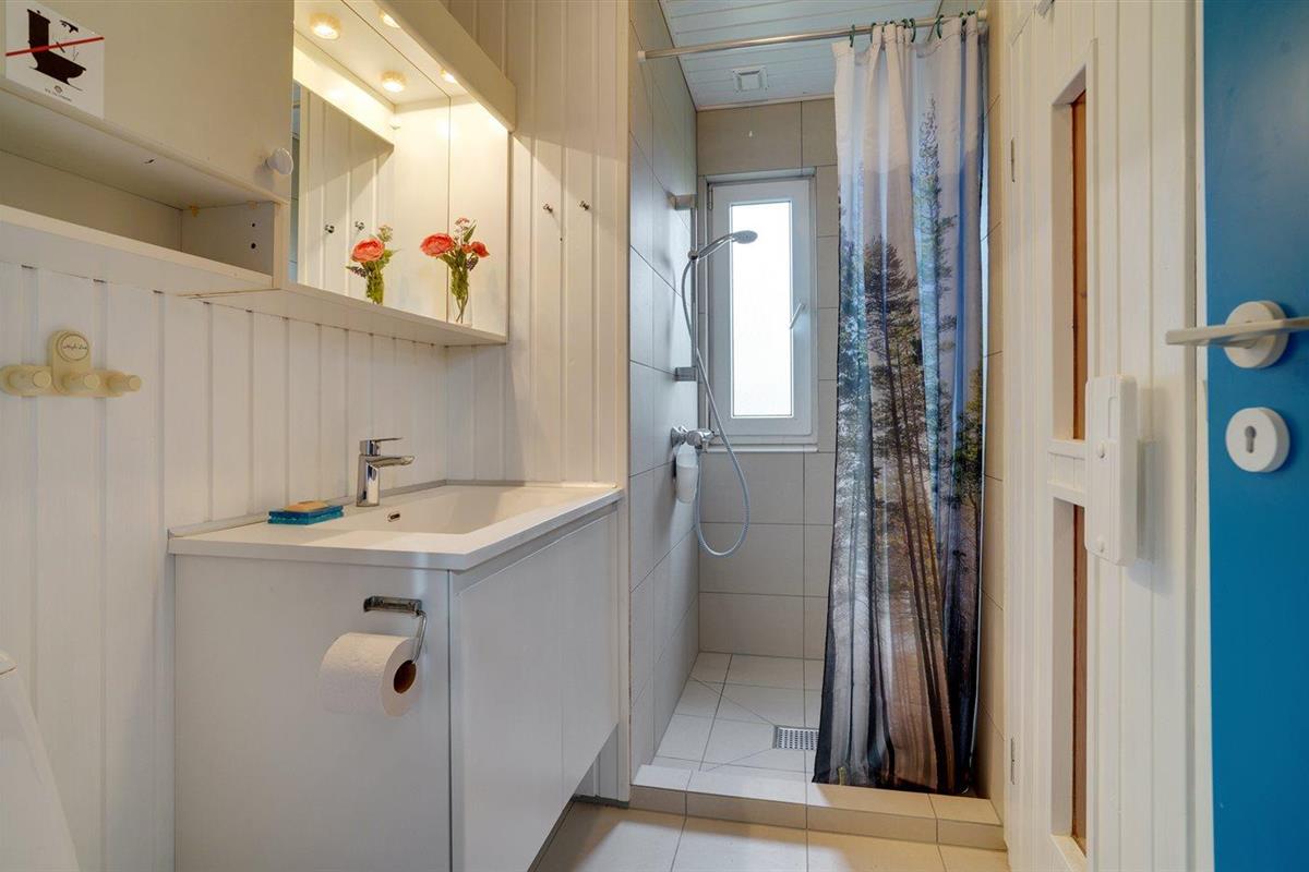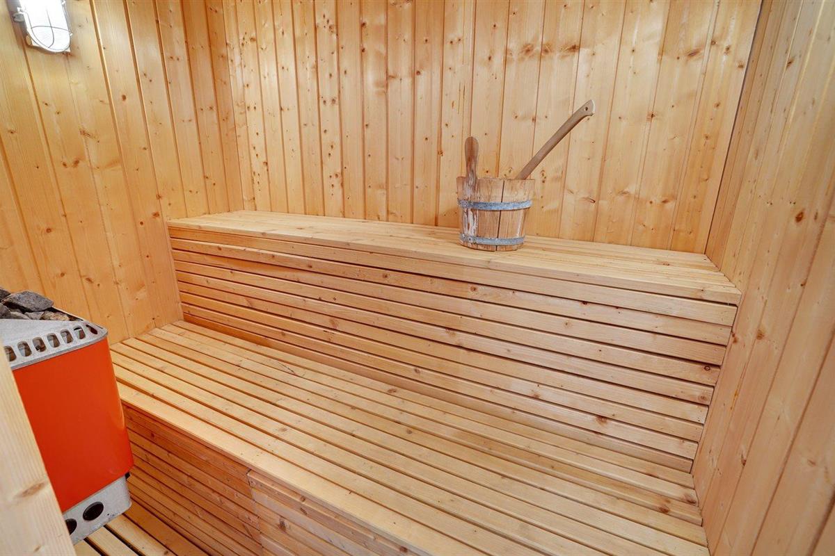 Er is 1 badkamer met douche en 1 toilet.. Er is vloerverwarming in 1 badkamer. De sauna biedt de gelegenheid tot ontspanning.