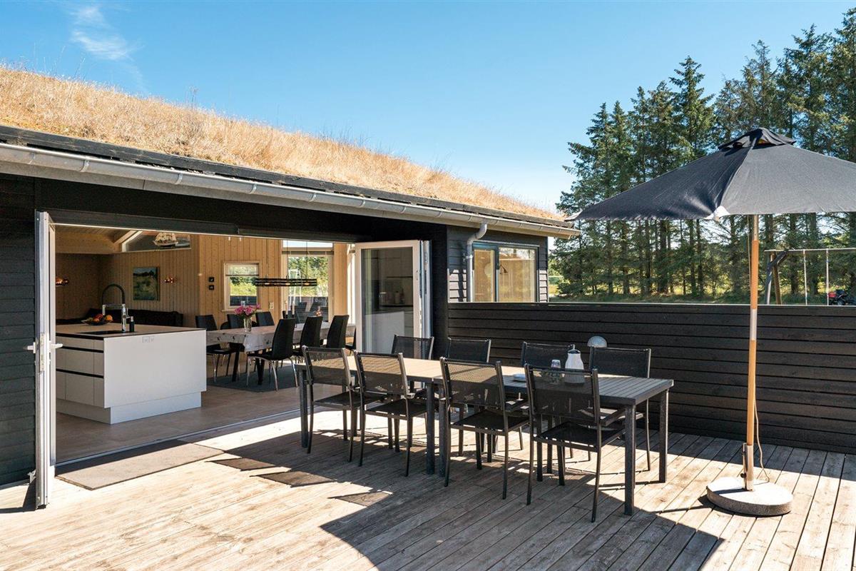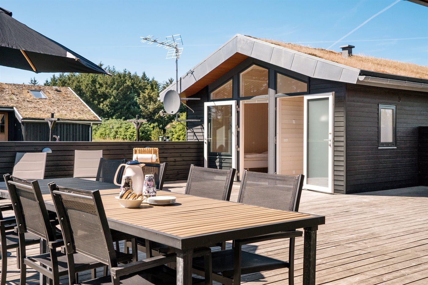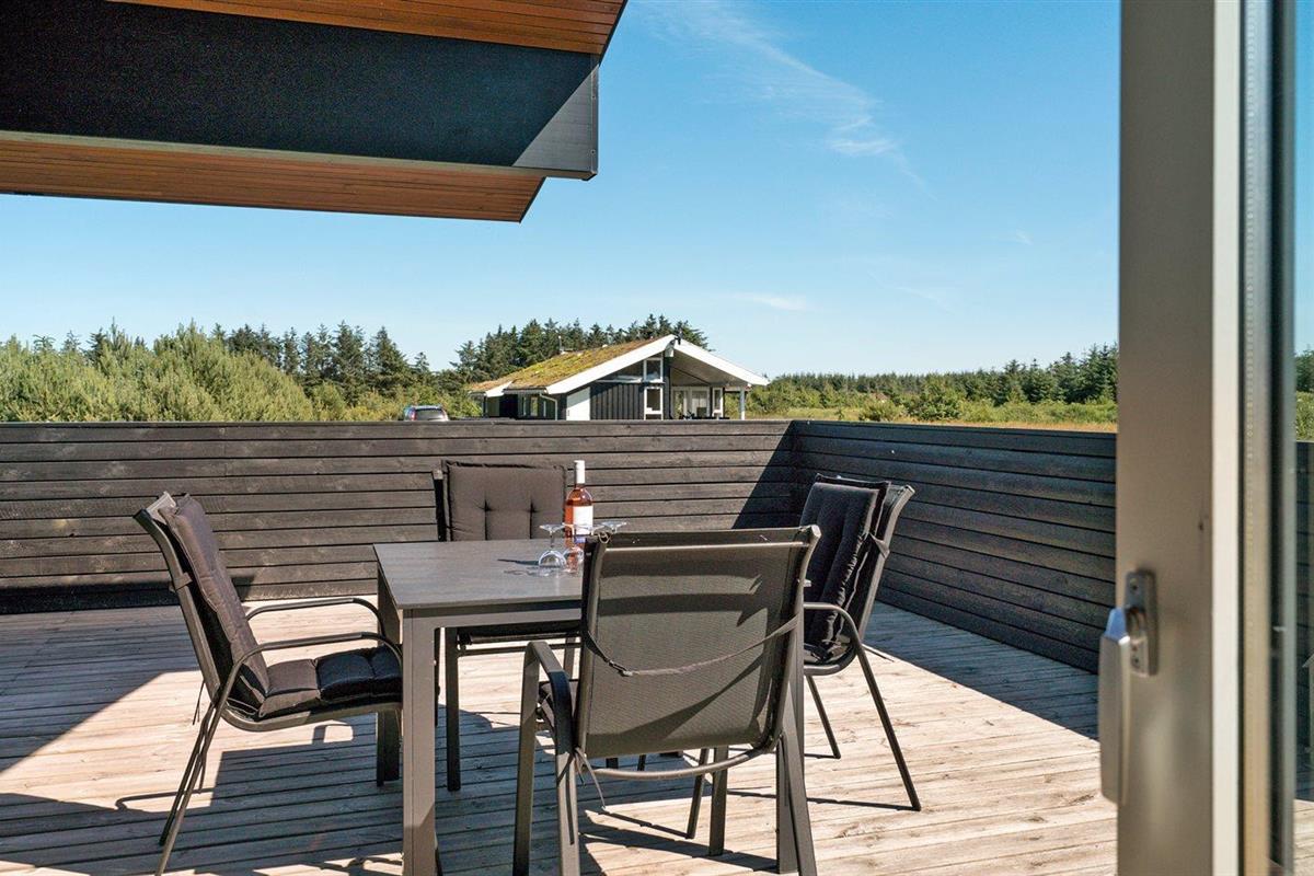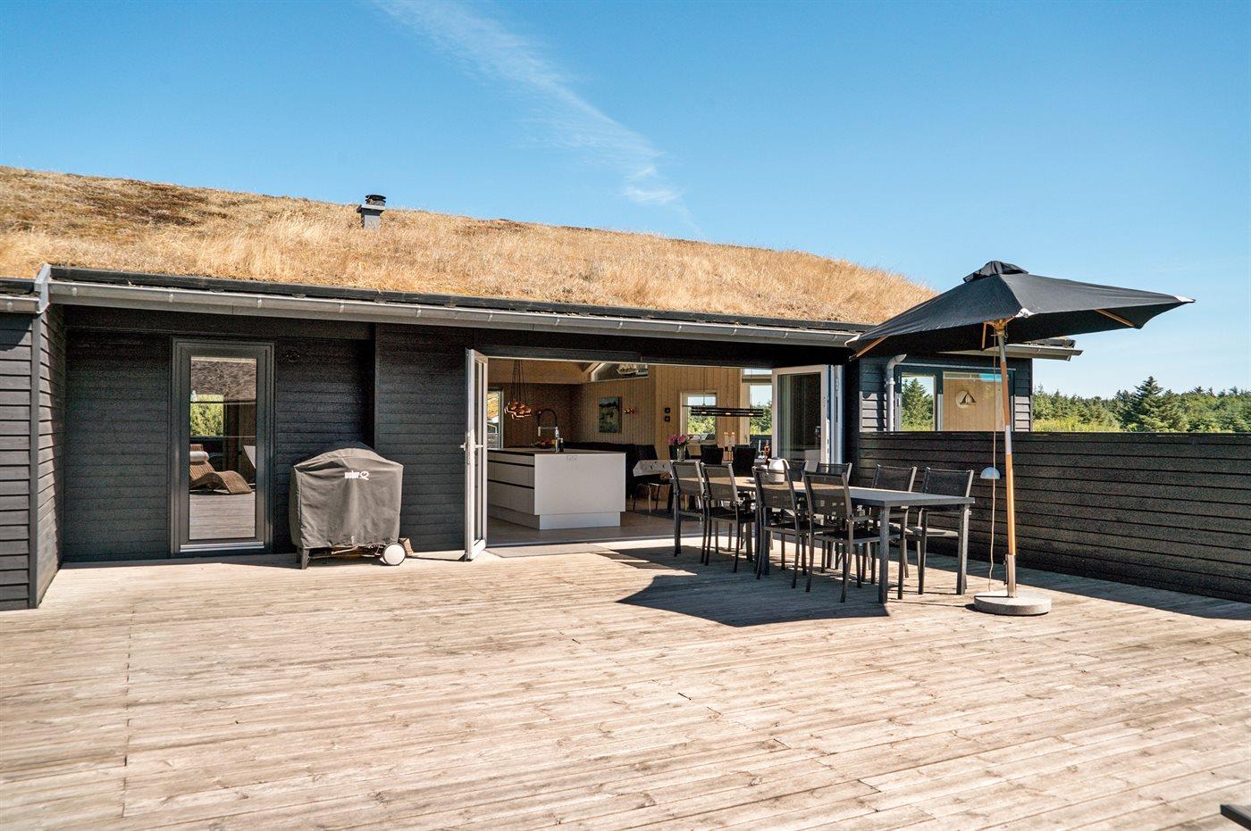 De vakantiewoning is gelegen op een 2600 m² groot aangelegde tuin. Afstand tot de zee 1400 m. Dichtstbijzijnde winkel 3800 m. Bij de vakantiewoning hoort 150 m² terras. Daarnaast is er een 18 m² groot overdekt terras. Gereedschapsruimte. Schommel. Zandbak. Glijbaan. Voetbaldoel.Vuurplaats. Parkeerplaats bij het huis.