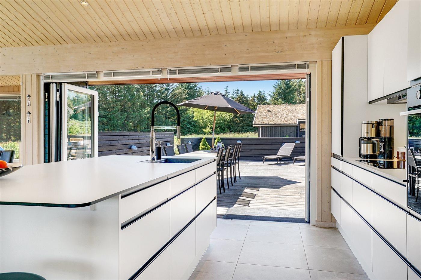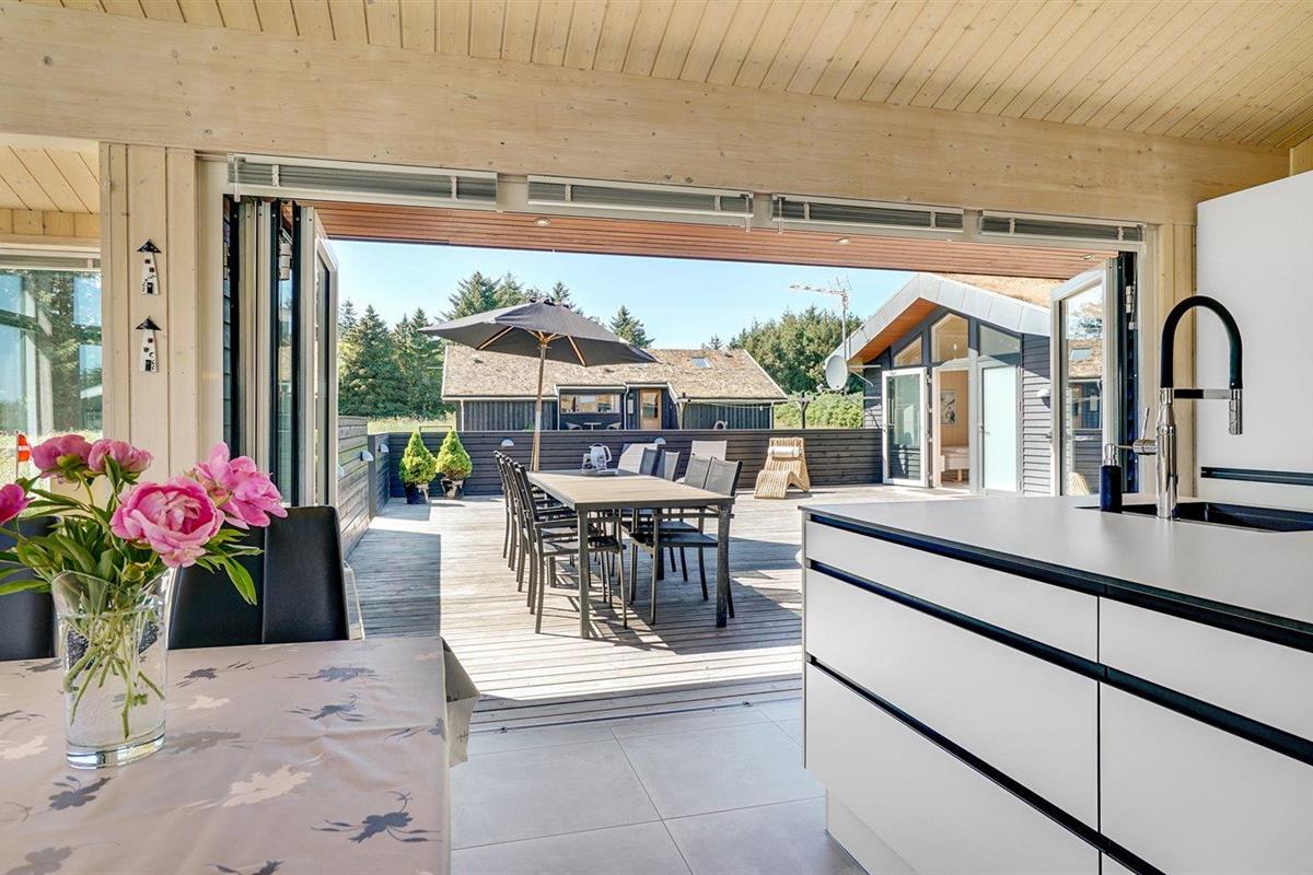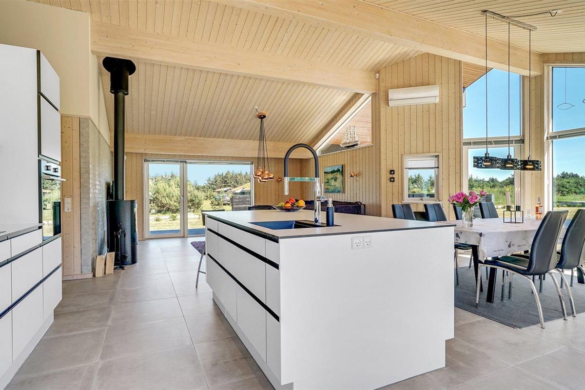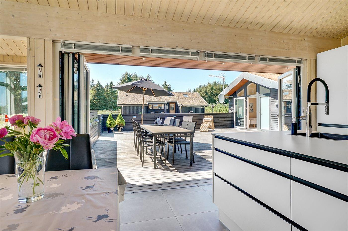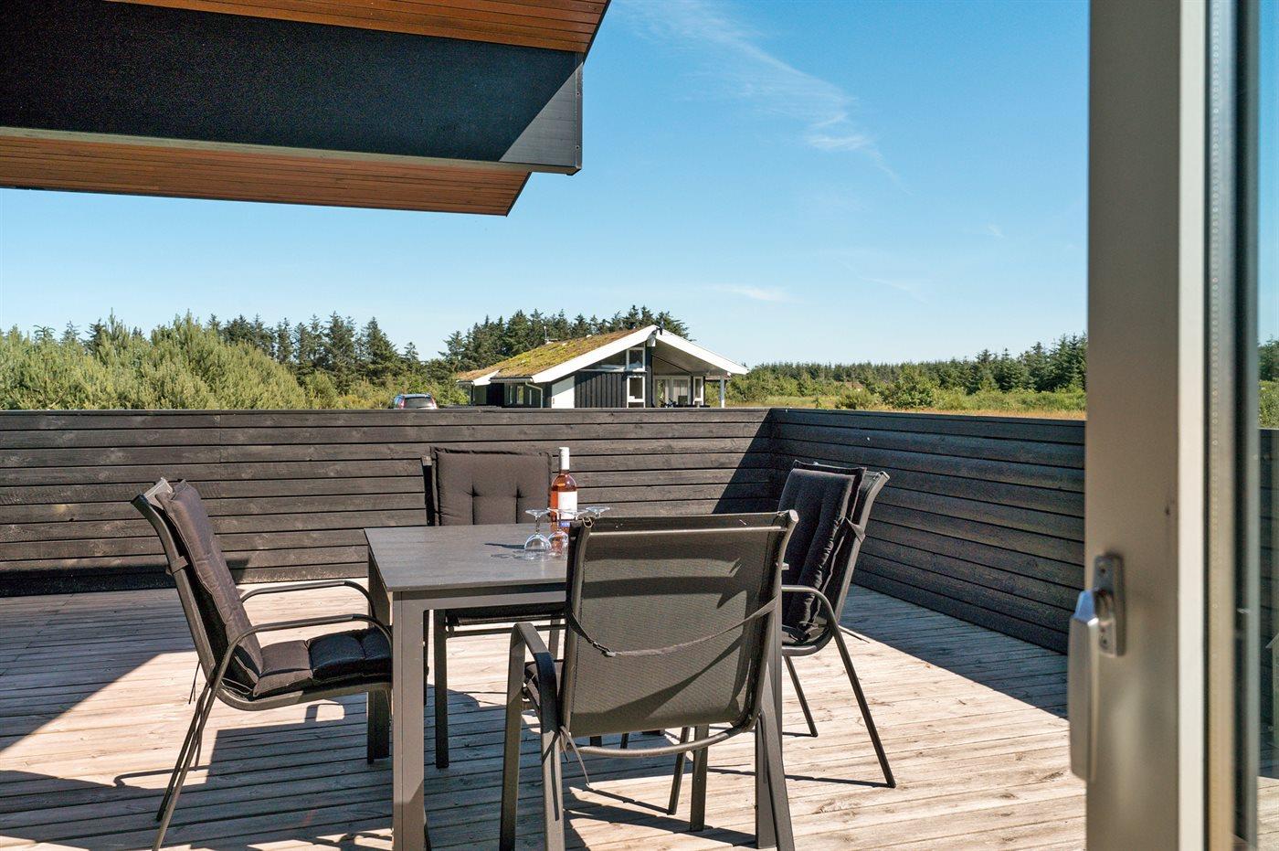 De vakantiewoning is gelegen op een 2600 m² groot aangelegde tuin. Afstand tot de zee 1400 m. Dichtstbijzijnde winkel 3800 m. Bij de vakantiewoning hoort 150 m² terras. Daarnaast is er een 18 m² groot overdekt terras. Gereedschapsruimte. Schommel. Zandbak. Glijbaan. Voetbaldoel.Vuurplaats. Parkeerplaats bij het huis.