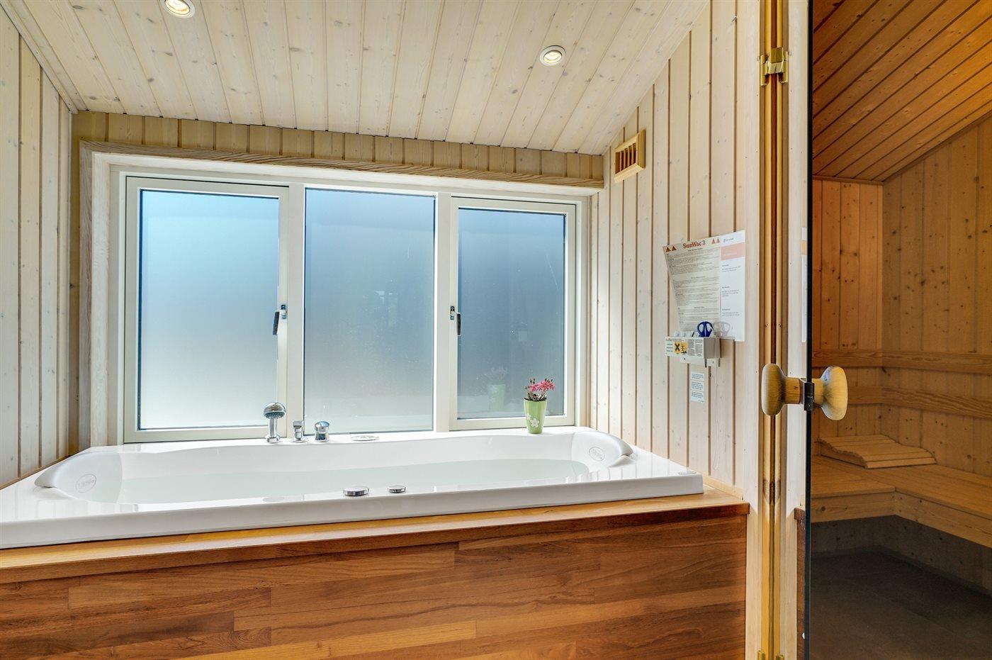 Er is 2 badkamers met douchehok en 2 toiletten. Er is vloerverwarming in 1 badkamer. De sauna biedt de gelegenheid tot ontspanning.