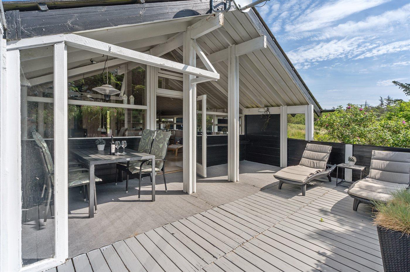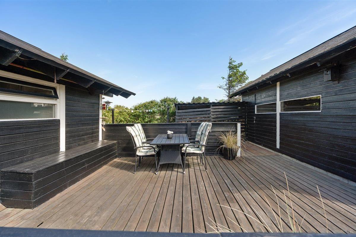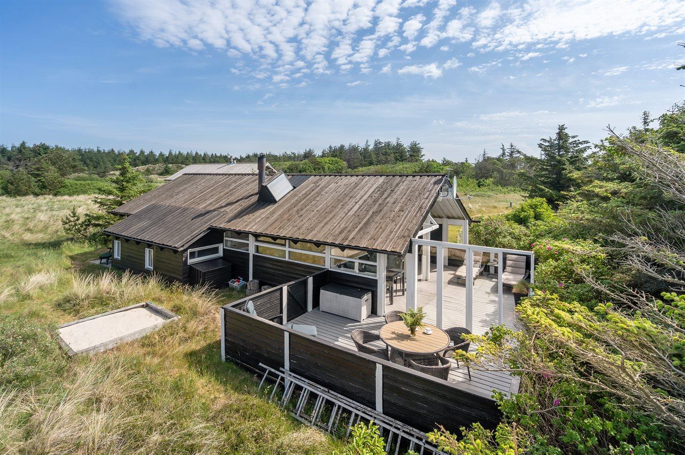 De vakantiewoning is gelegen op een 2800 m² groot natuural grond. Afstand tot de zee 800 m. Dichtstbijzijnde winkel 1000 m. Bij de vakantiewoning hoort 50 m² terras. Daarnaast is er een 15 m² groot overdekt terras. Gereedschapsruimte. Zandbak. Barbecue. Carport ter beschikking. Parkeerplaats bij het huis.