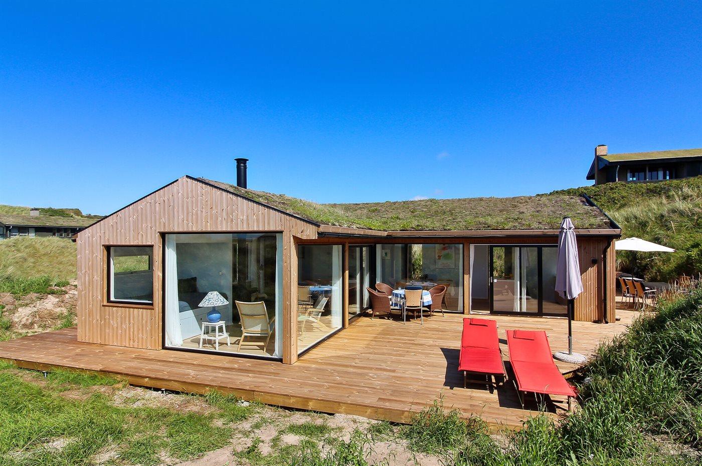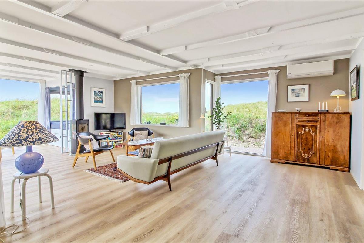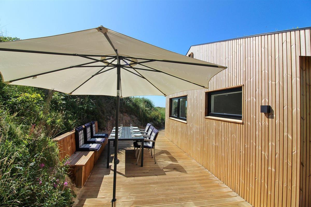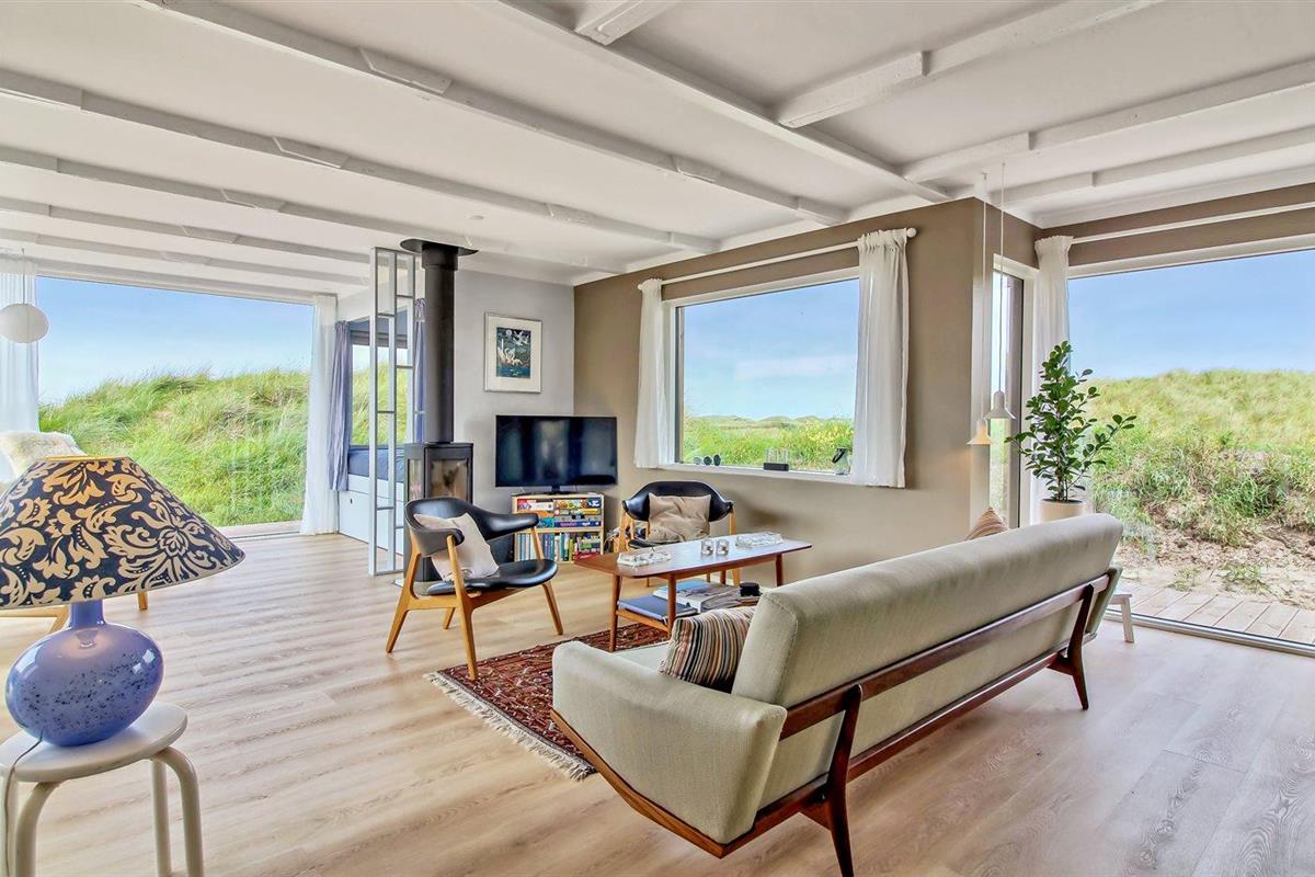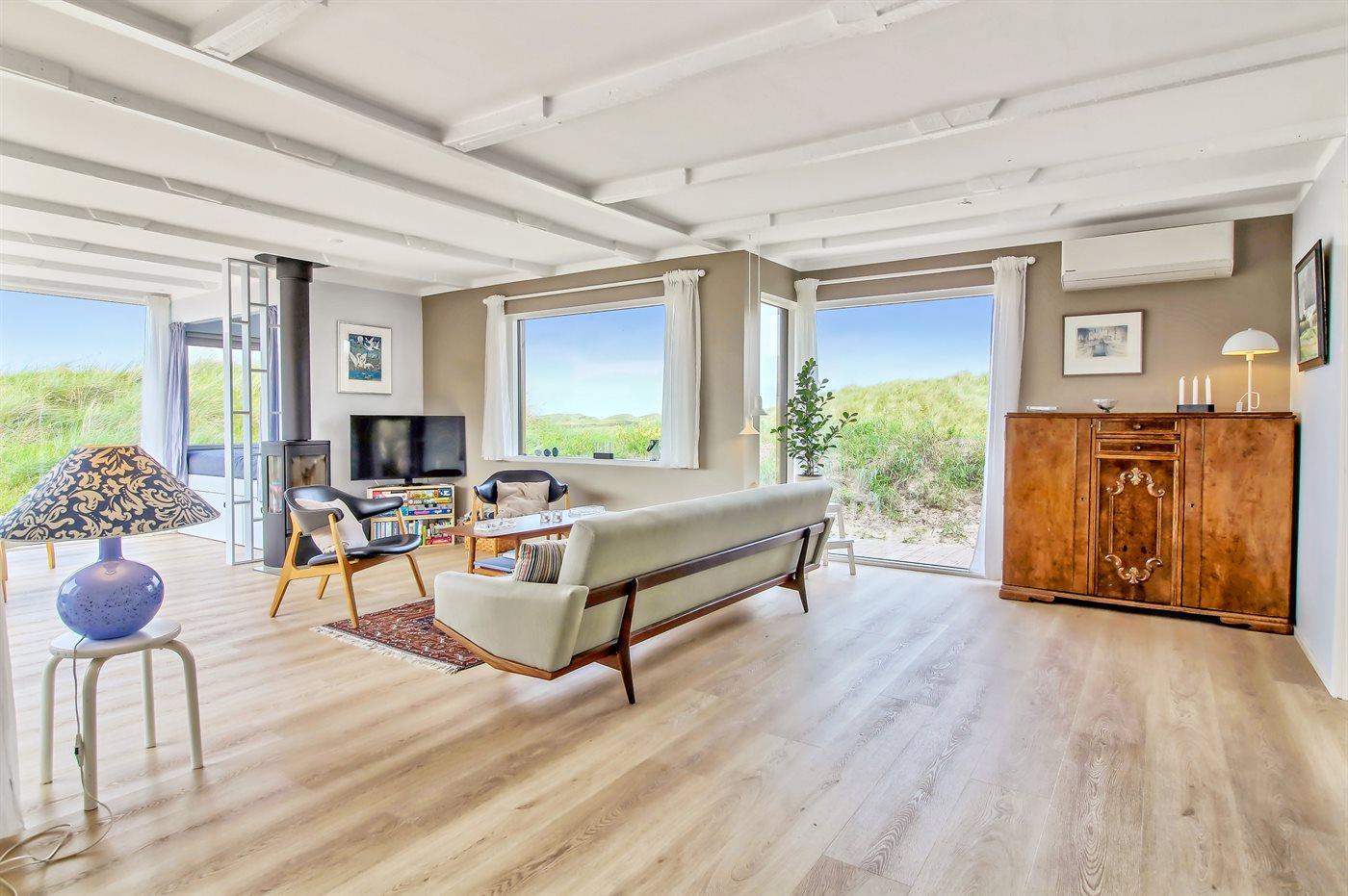 Modern vakantiehuis nabij zee met terras, houtkachel en energiezuinige warmtepomp.