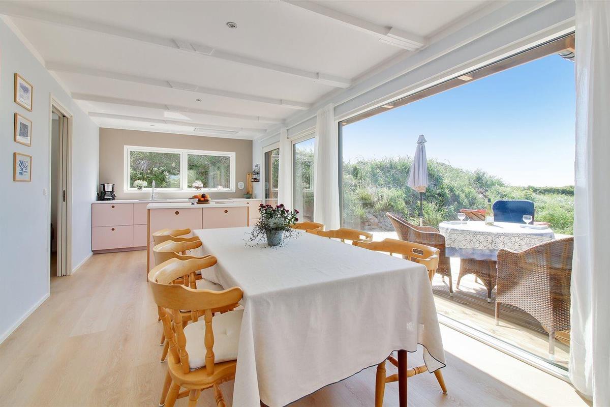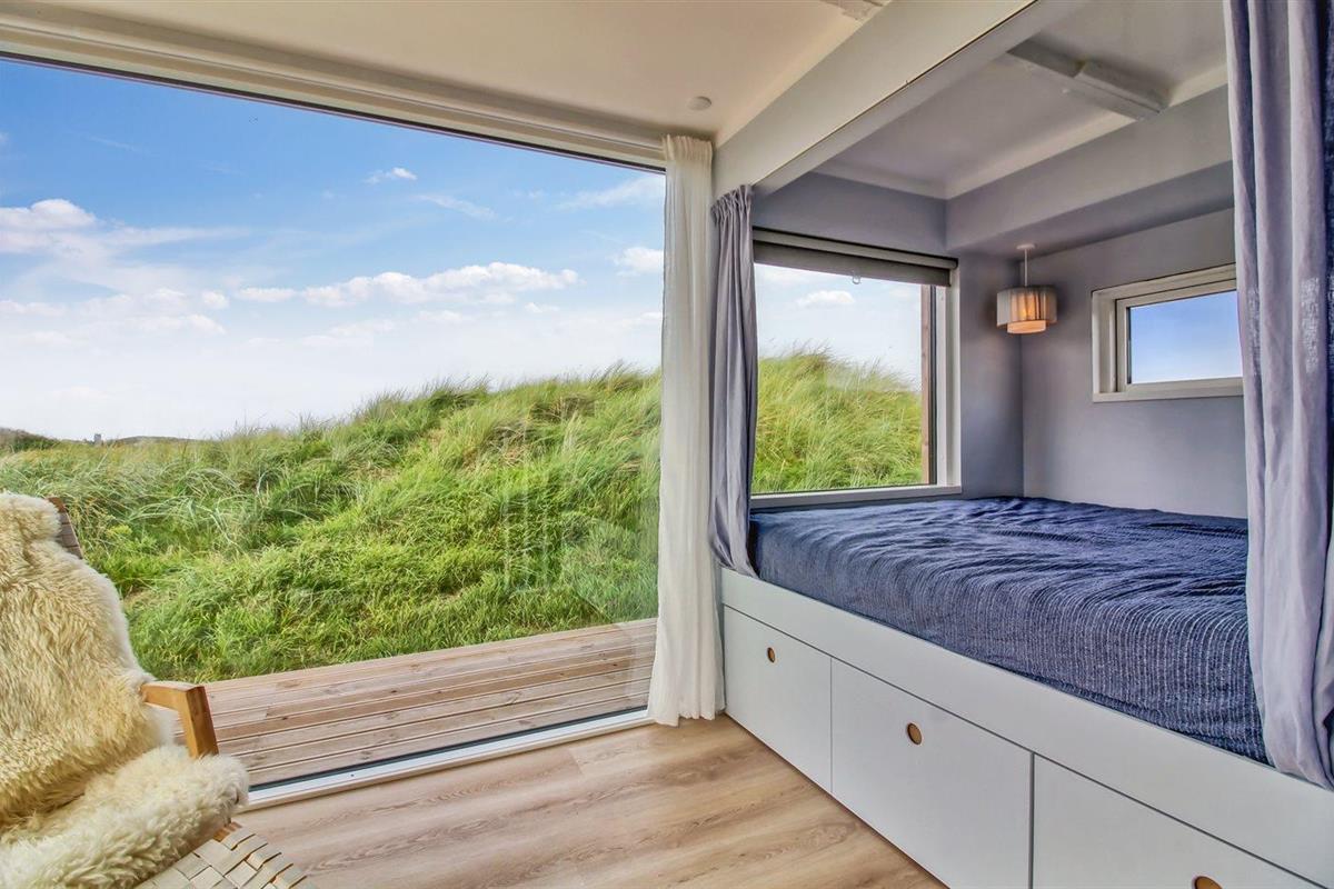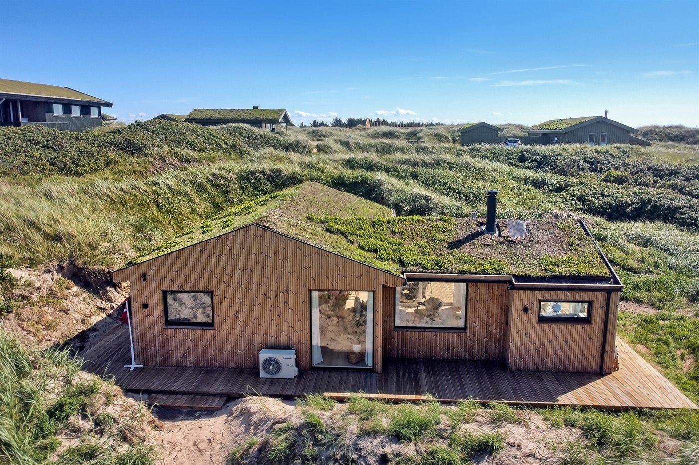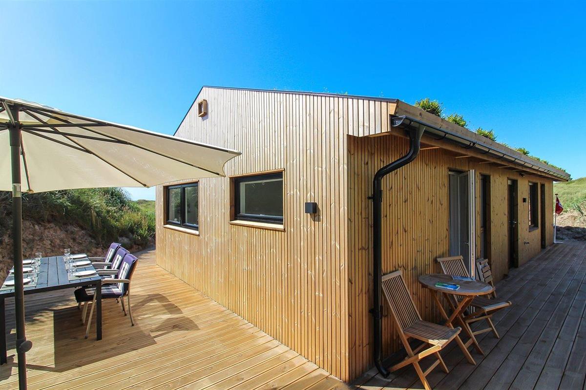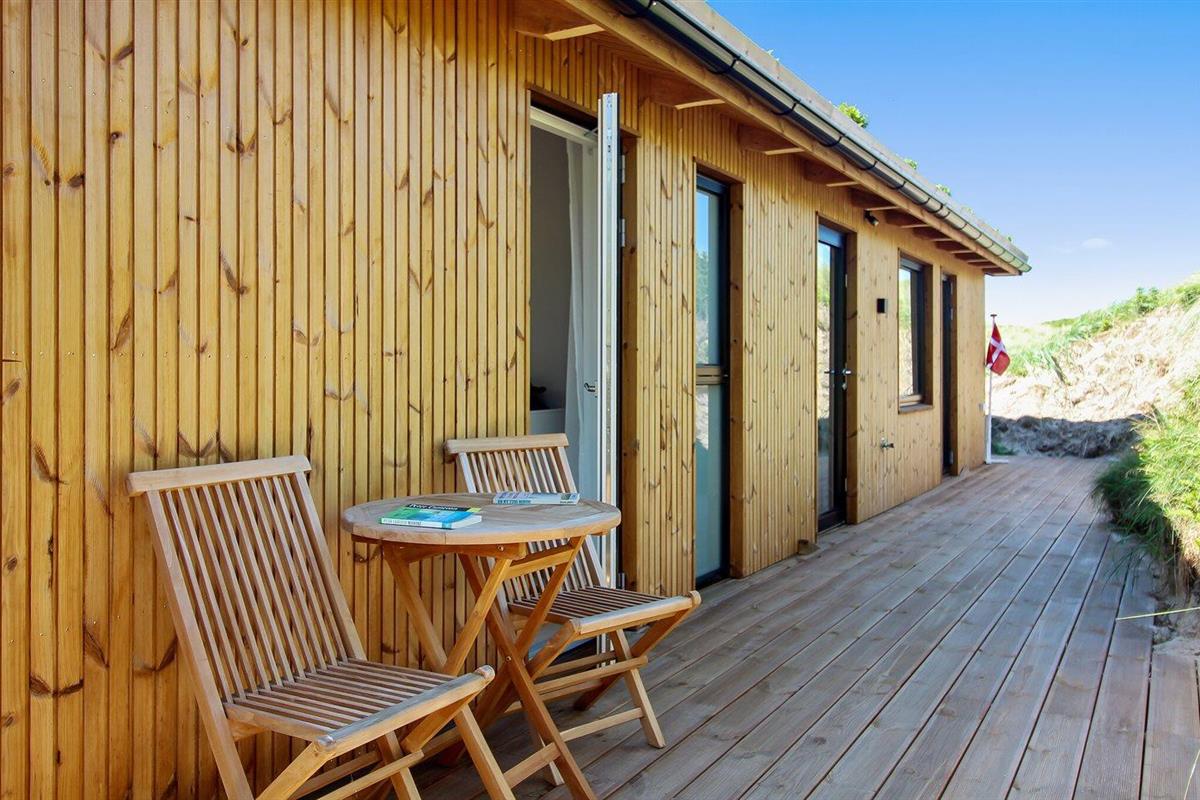 Modern vakantiehuis nabij zee met terras, houtkachel en energiezuinige warmtepomp.