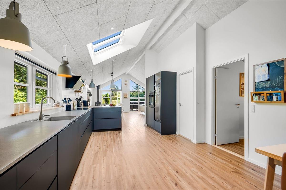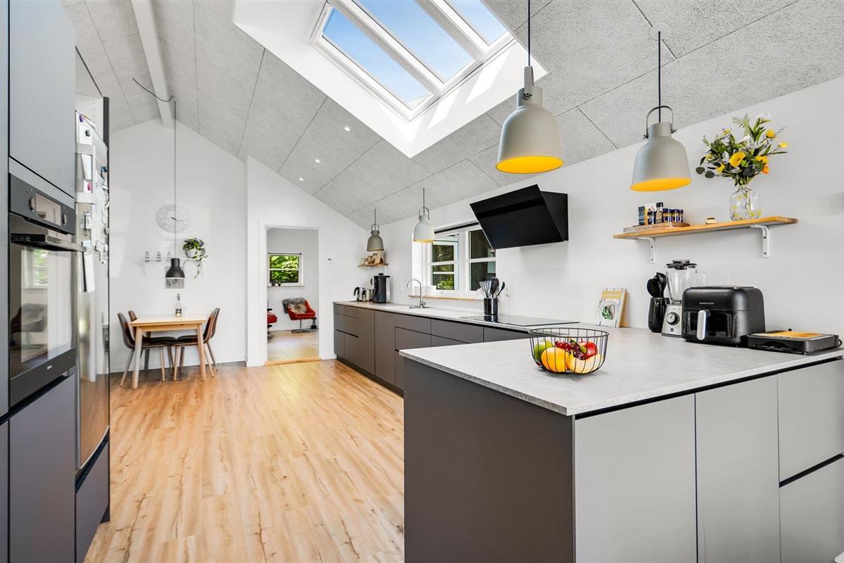De keuken is uitgerust met koelkast Er is 4 inductiekookplaten, heteluchtoven, magnetron en vaatwasser.