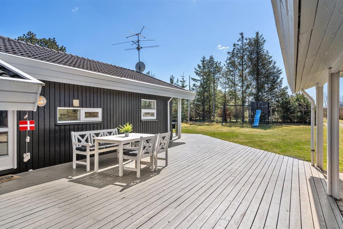 De vakantiewoning is gelegen op een 1544 m² groot natuural grond. Afstand tot de zee 2000 m. Dichtstbijzijnde winkel 200 m. Bij de vakantiewoning hoort 40 m² terras. Daarnaast is er een 10 m² groot overdekt terras. Schommel. Buitendouche. Carport ter beschikking.