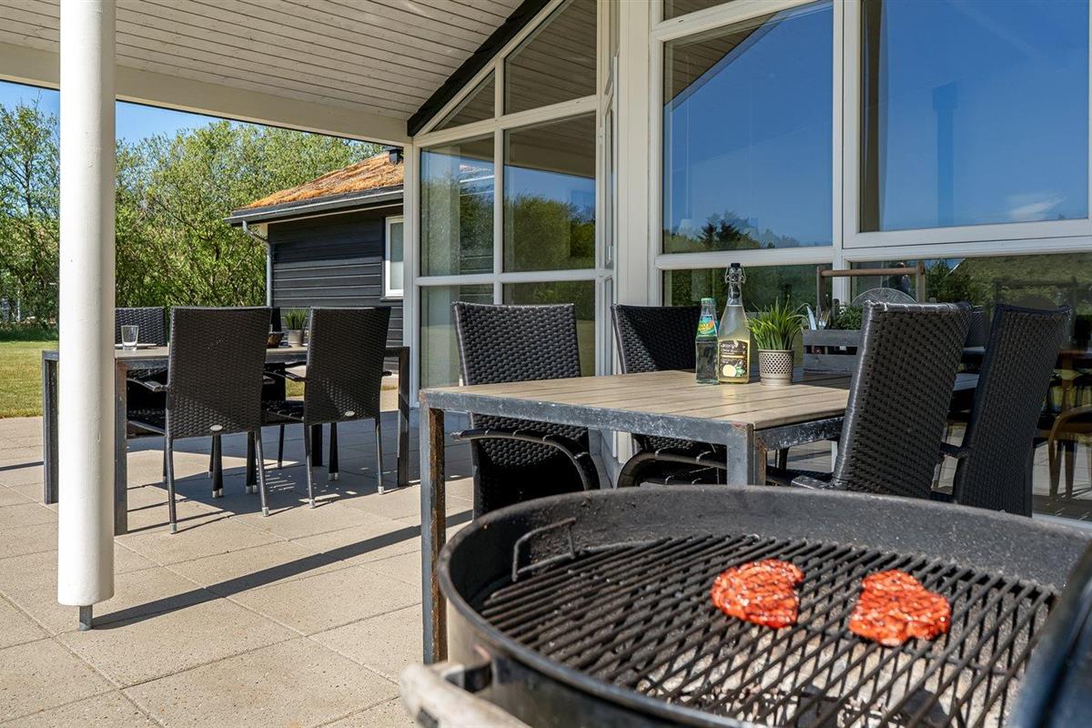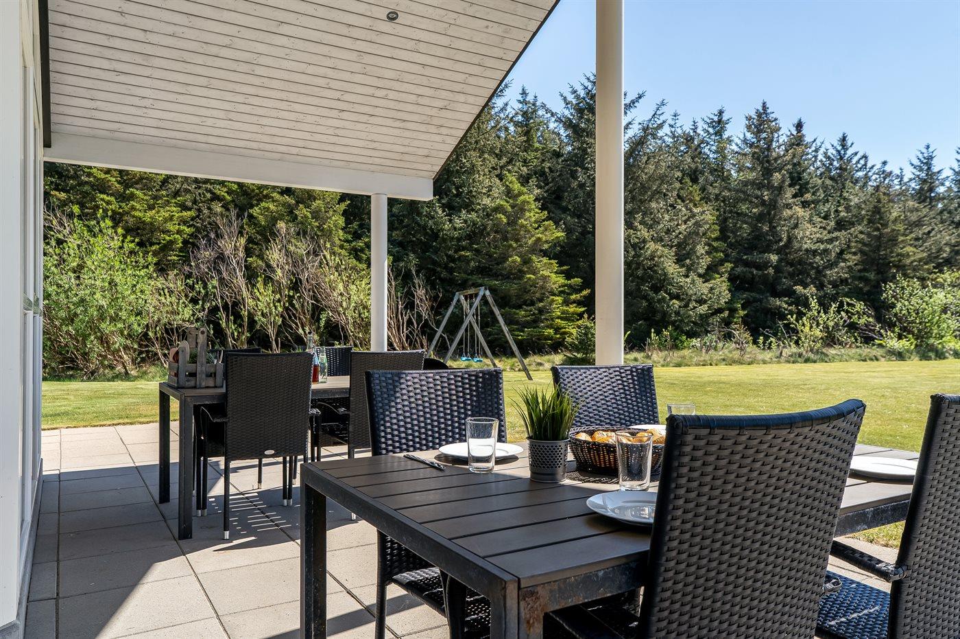 De vakantiewoning is gelegen op een 2600 m² groot natuural grond. Afstand tot de zee 1800 m. Dichtstbijzijnde winkel 1500 m. Bij de vakantiewoning hoort 35 m² terras. Daarnaast is er een 35 m² groot overdekt terras. Gereedschapsruimte. Zandbak. Carport ter beschikking. Parkeerplaats bij het huis.