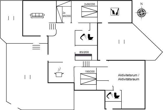 De vakantiewoning is gelegen op een 1331 m² groot Duingrond. Afstand tot de zee 175 m. Dichtstbijzijnde winkel 5000 m. Er is een golfbaan op een afstand van 15000 m. Bij de vakantiewoning hoort 90 m² terras. Gereedschapsruimte. Parkeerplaats bij het huis.