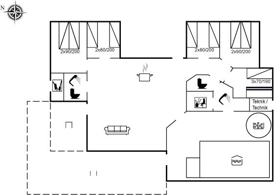 Er is 2 badkamers met douchehok en 2 toiletten.. Er is vloerverwarming in 1 badkamer. De sauna biedt de gelegenheid tot ontspanning.