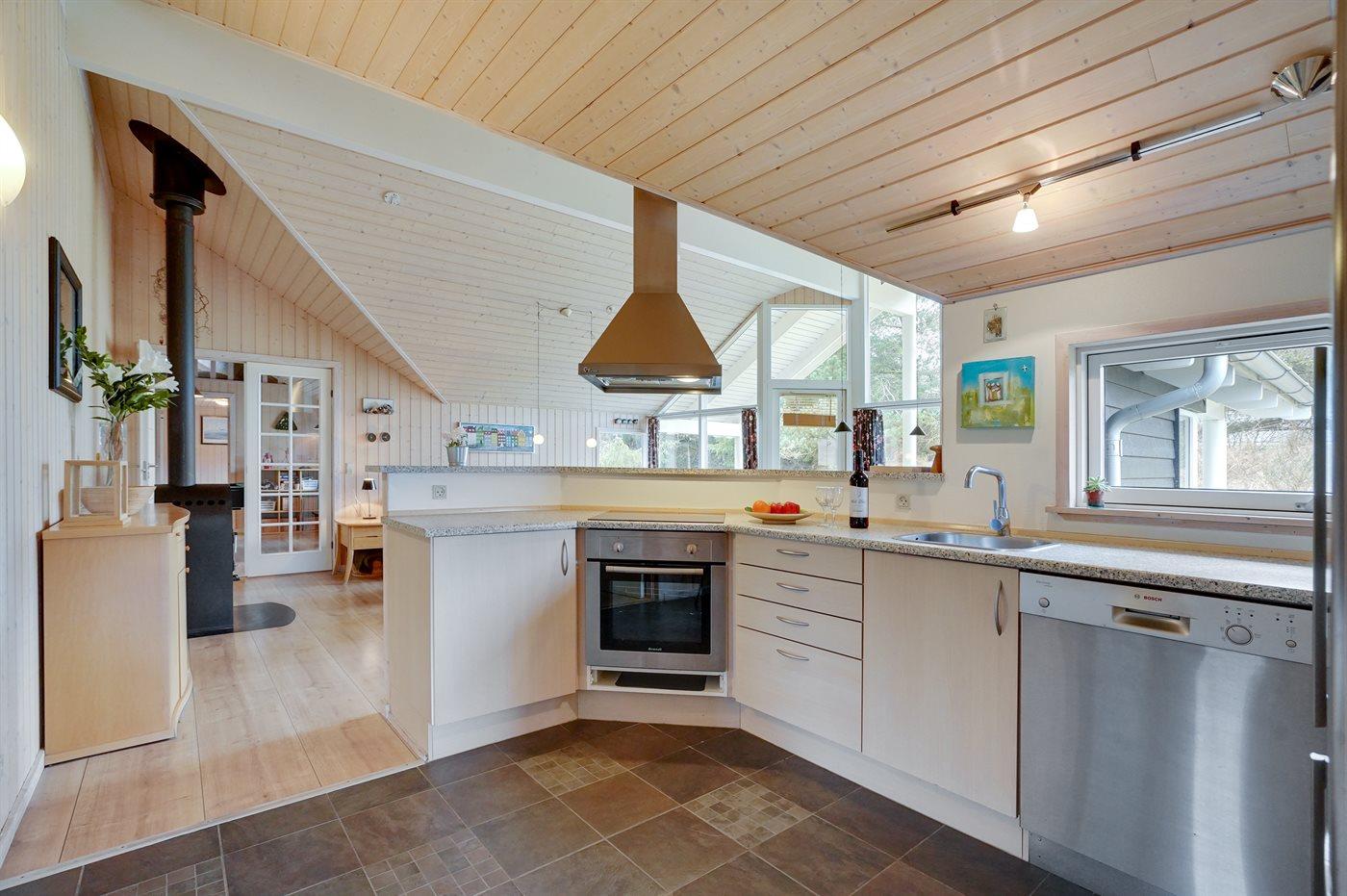 De keuken is uitgerust met koelkast Er zijn 4 keramische kookplaten, heteluchtoven, magnetron en vaatwasser.