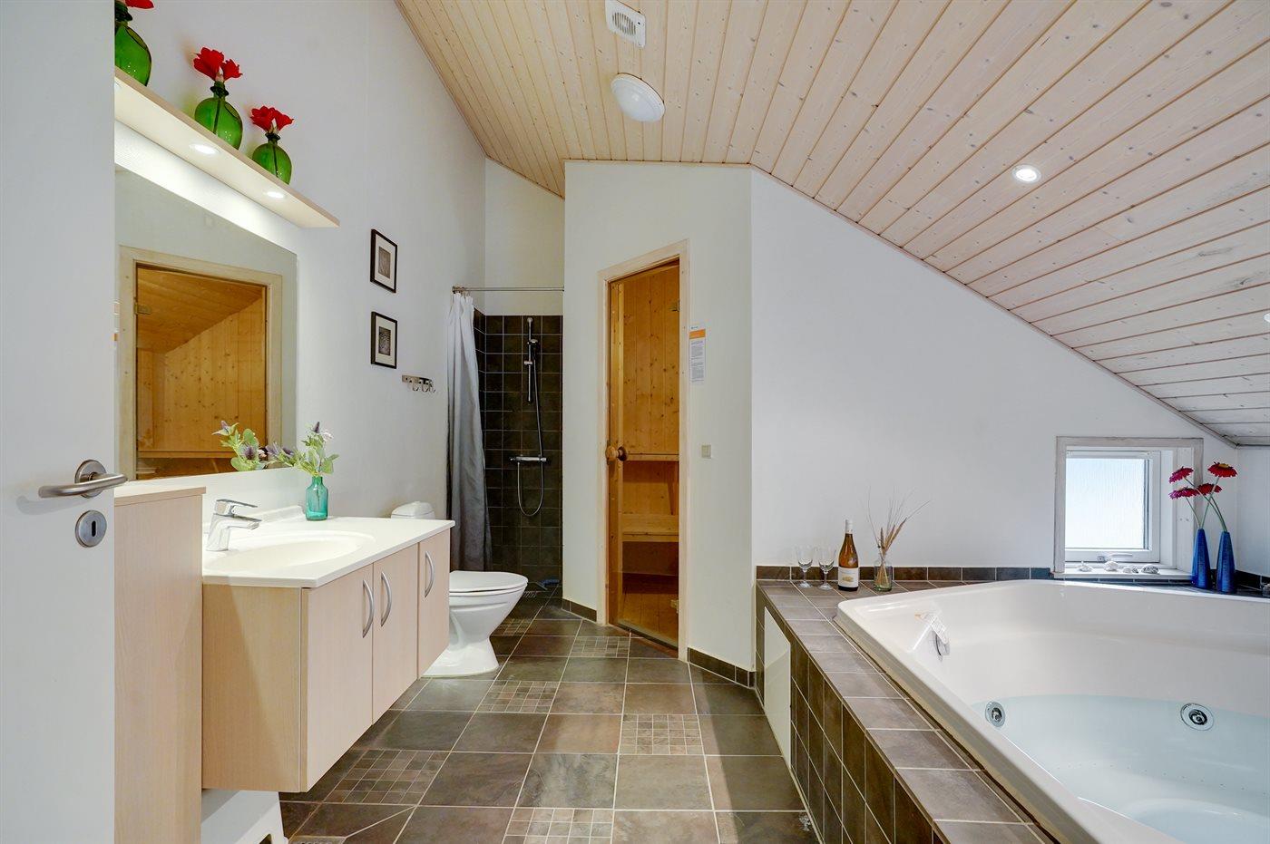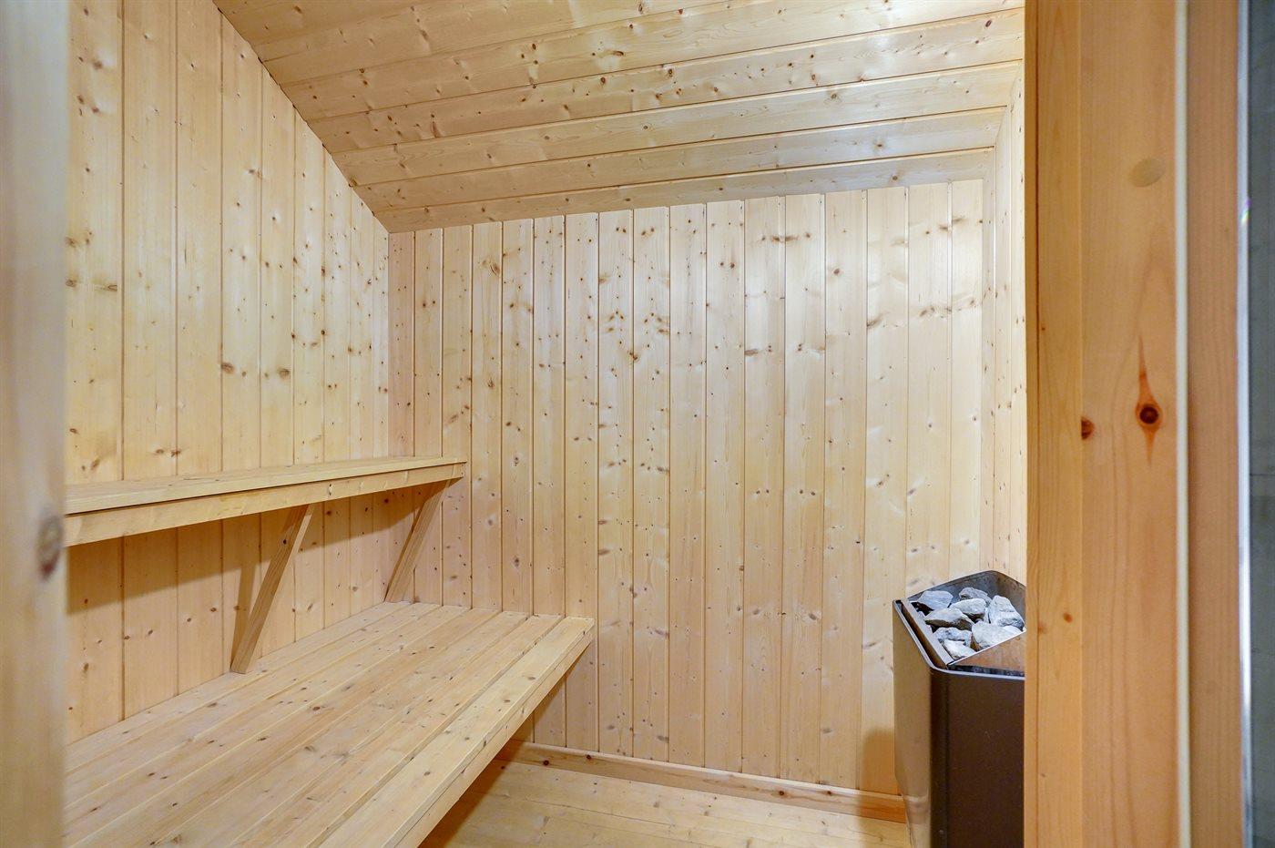 Er is 2 badkamers met douchehok en 2 toiletten. Er is vloerverwarming in 2 van de badkamers. De sauna biedt de gelegenheid tot ontspanning.