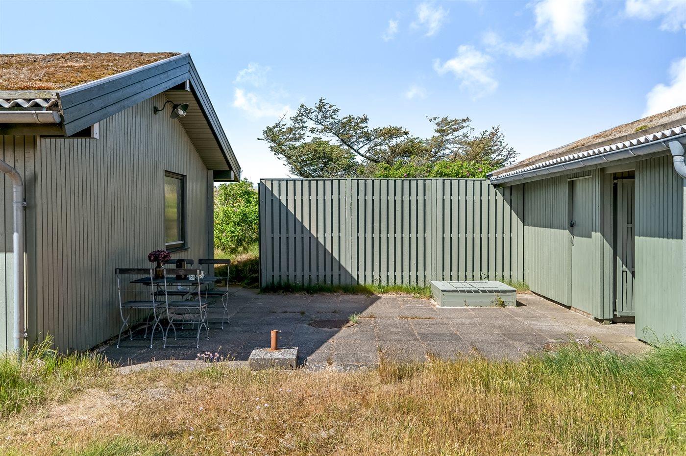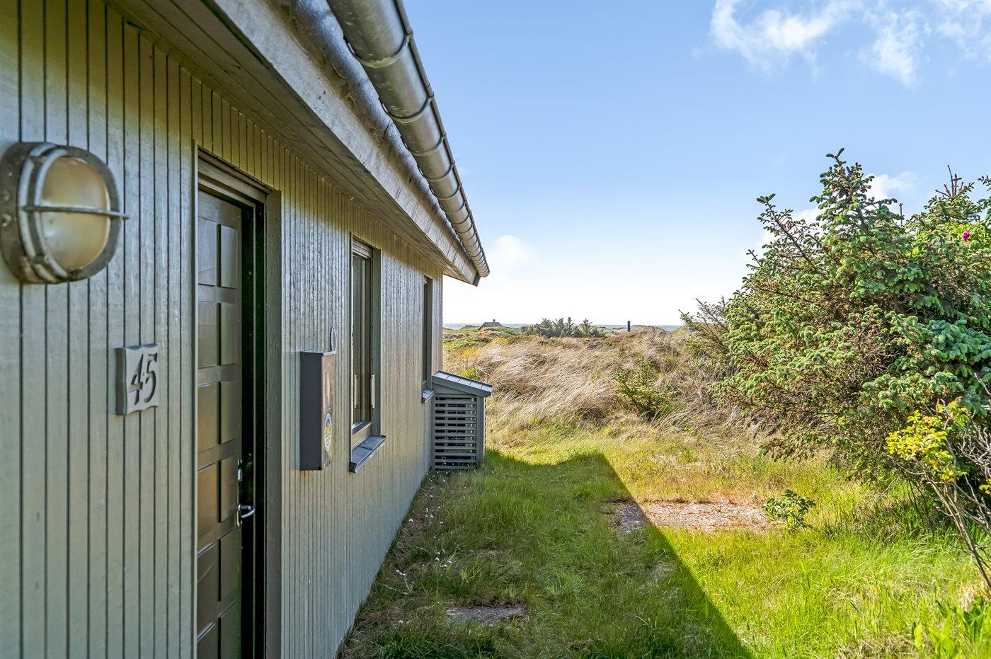 De vakantiewoning is gelegen op een 3185 m² groot Duingrond. Afstand tot de zee 350 m. Dichtstbijzijnde winkel 2500 m. Bij de vakantiewoning hoort 86 m² terras. Gereedschapsruimte. Zandbak. Carport ter beschikking. Parkeerplaats bij het huis.