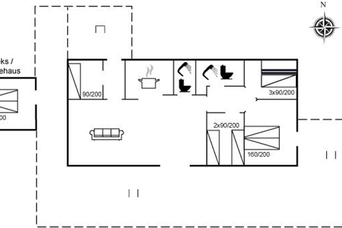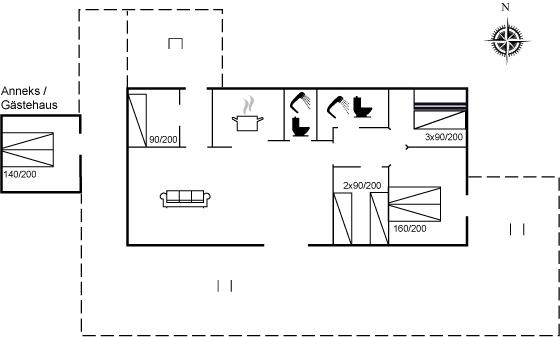 De vakantiewoning is gelegen op een 2130 m² groot natuural grond. Afstand tot de zee 1200 m. Dichtstbijzijnde winkel 2000 m. Bij de vakantiewoning hoort 55 m² terras. Trampoline. Parkeerplaats bij het huis.