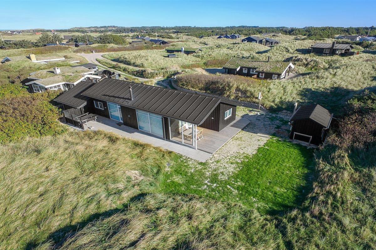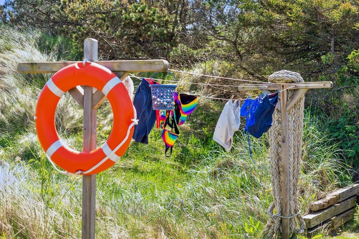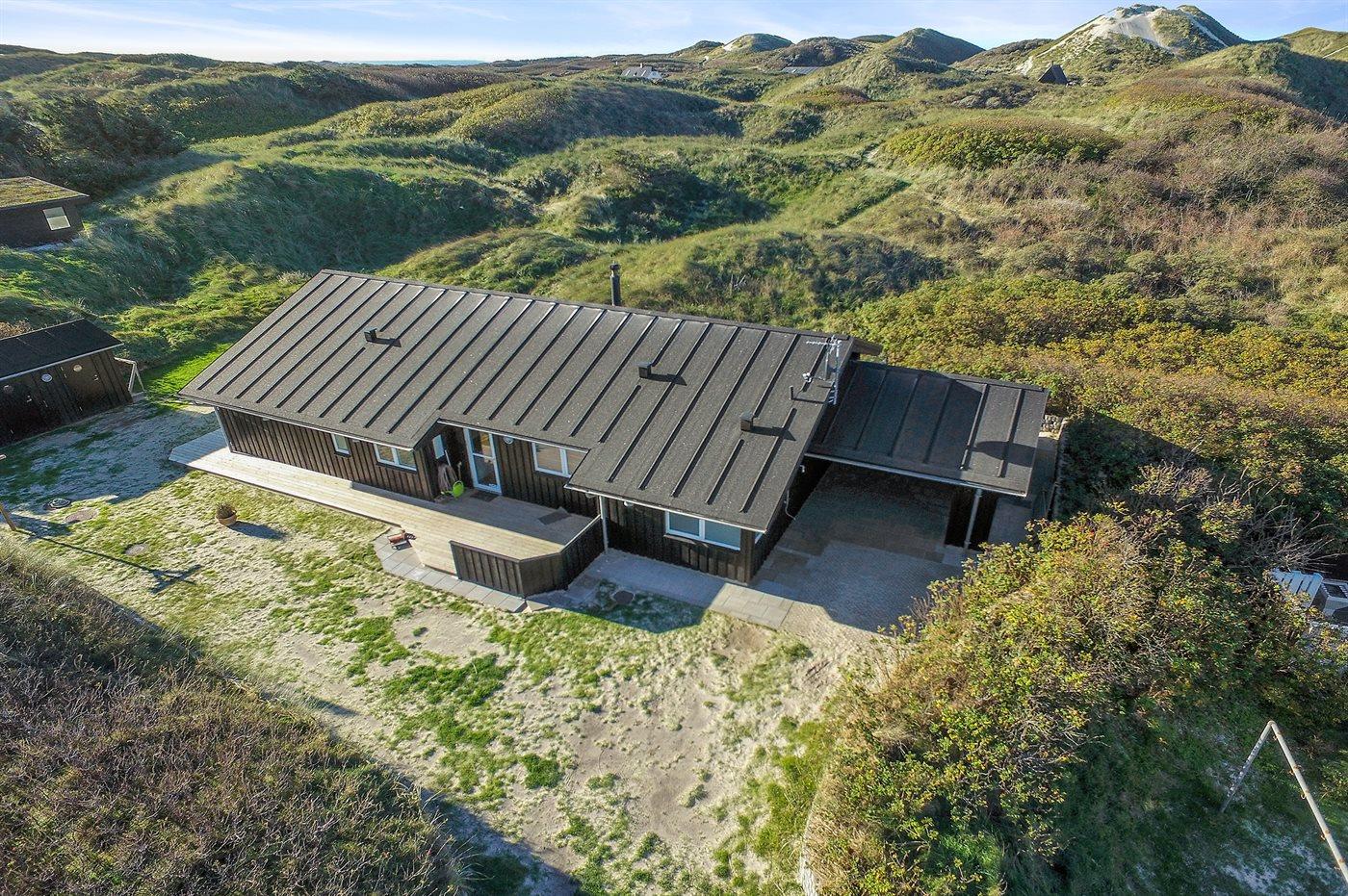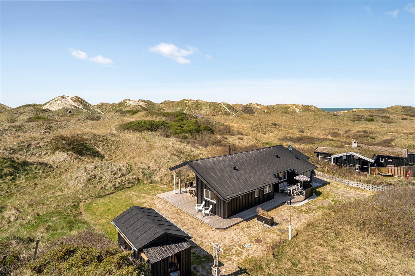 De vakantiewoning is gelegen op een 3600 m² groot Duingrond. Afstand tot de zee 300 m. Dichtstbijzijnde winkel 1500 m. Bij de vakantiewoning hoort 100 m² terras. Daarnaast is er een 12 m² groot overdekt terras. Gereedschapsruimte. Buitendouche. Barbecue. Carport ter beschikking. Parkeerplaats bij het huis.