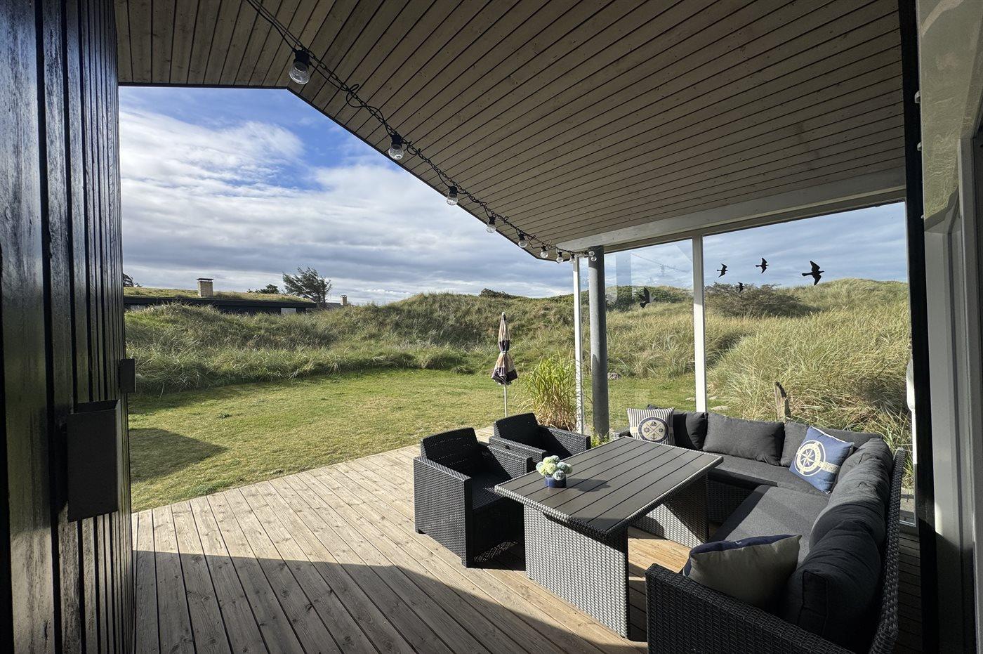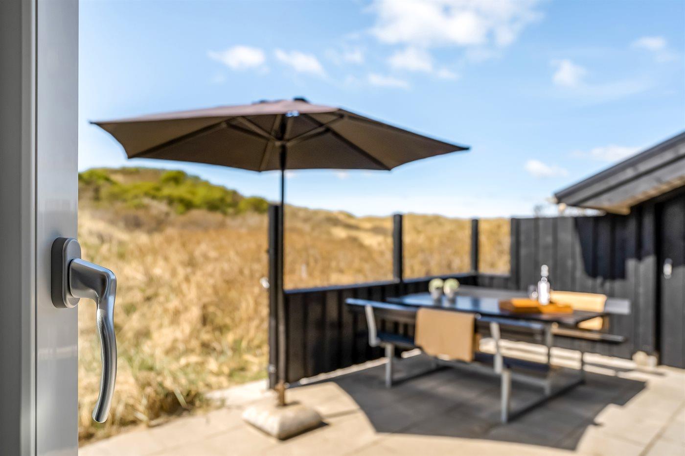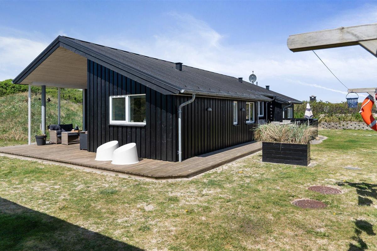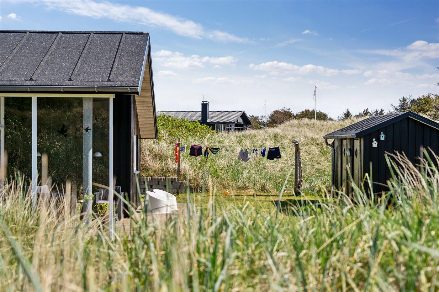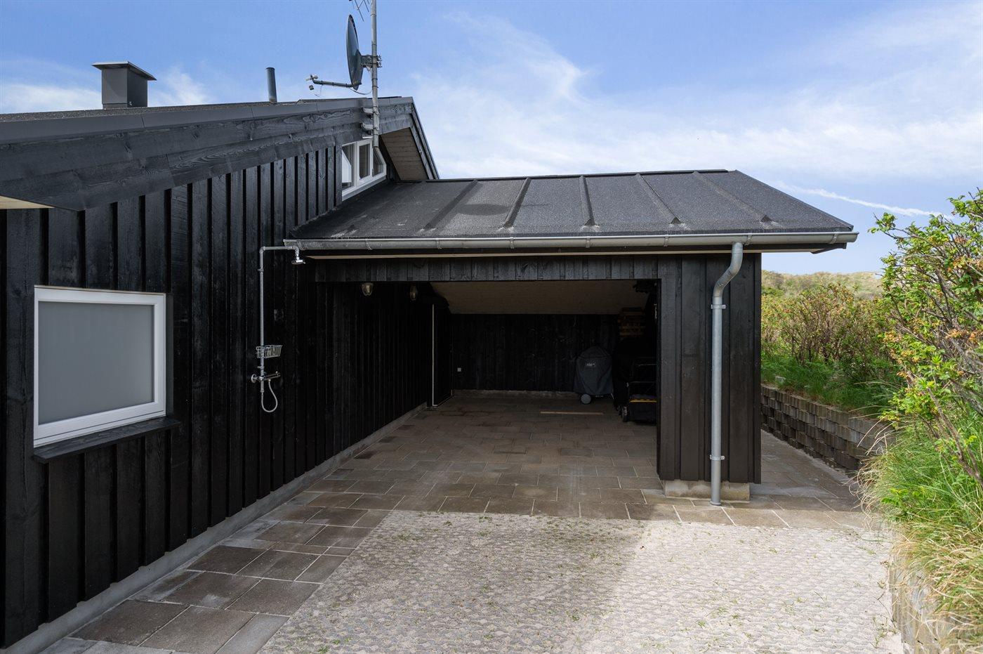 De vakantiewoning is gelegen op een 3600 m² groot Duingrond. Afstand tot de zee 300 m. Dichtstbijzijnde winkel 1500 m. Bij de vakantiewoning hoort 100 m² terras. Daarnaast is er een 12 m² groot overdekt terras. Gereedschapsruimte. Buitendouche. Barbecue. Carport ter beschikking. Parkeerplaats bij het huis.