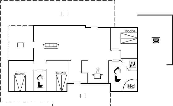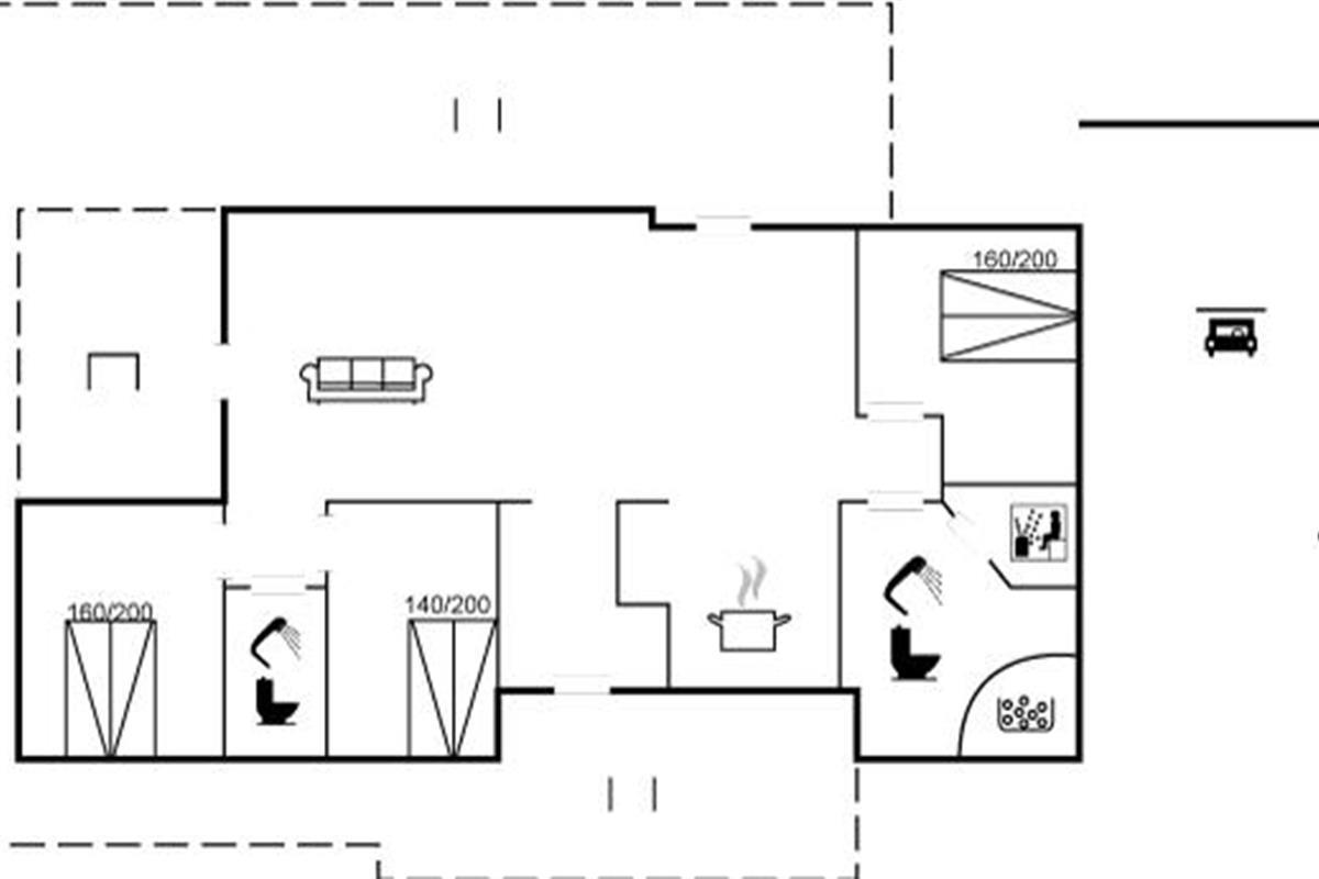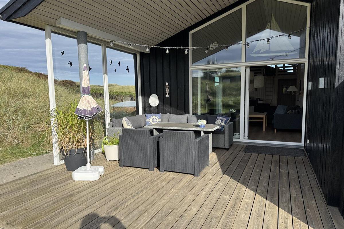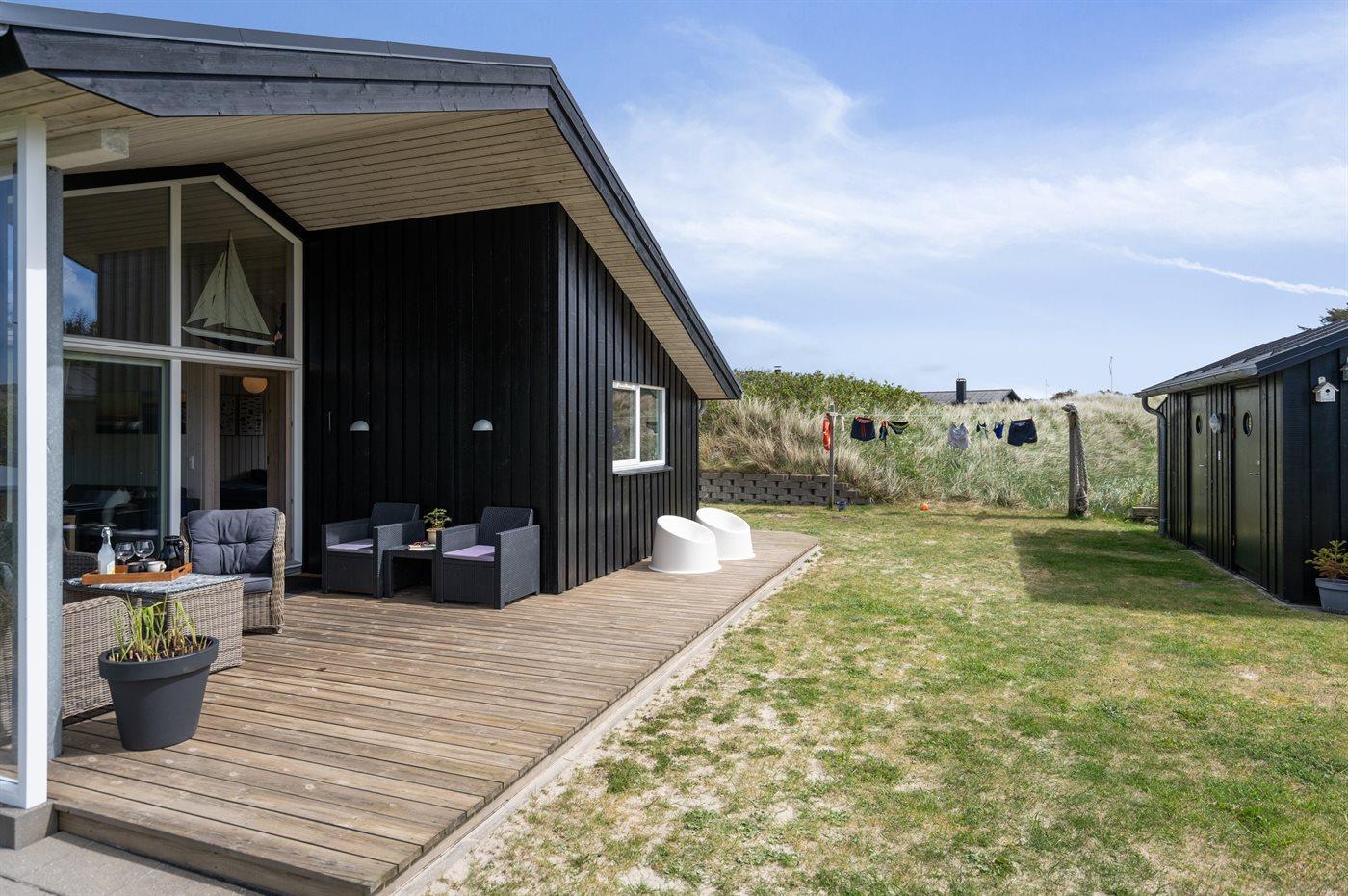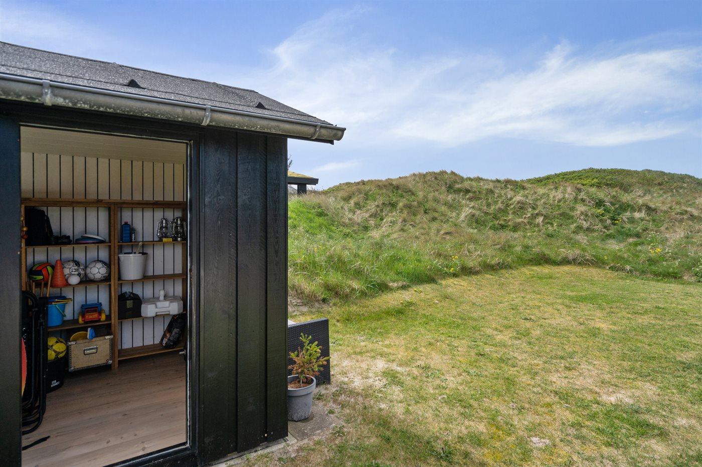 De vakantiewoning is gelegen op een 3600 m² groot Duingrond. Afstand tot de zee 300 m. Dichtstbijzijnde winkel 1500 m. Bij de vakantiewoning hoort 100 m² terras. Daarnaast is er een 12 m² groot overdekt terras. Gereedschapsruimte. Buitendouche. Barbecue. Carport ter beschikking. Parkeerplaats bij het huis.