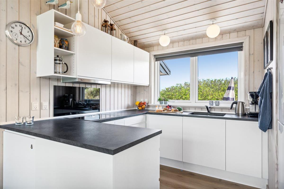 De keuken is uitgerust met koelkast Er is 4 inductiekookplaten, heteluchtoven, magnetron en vaatwasser.