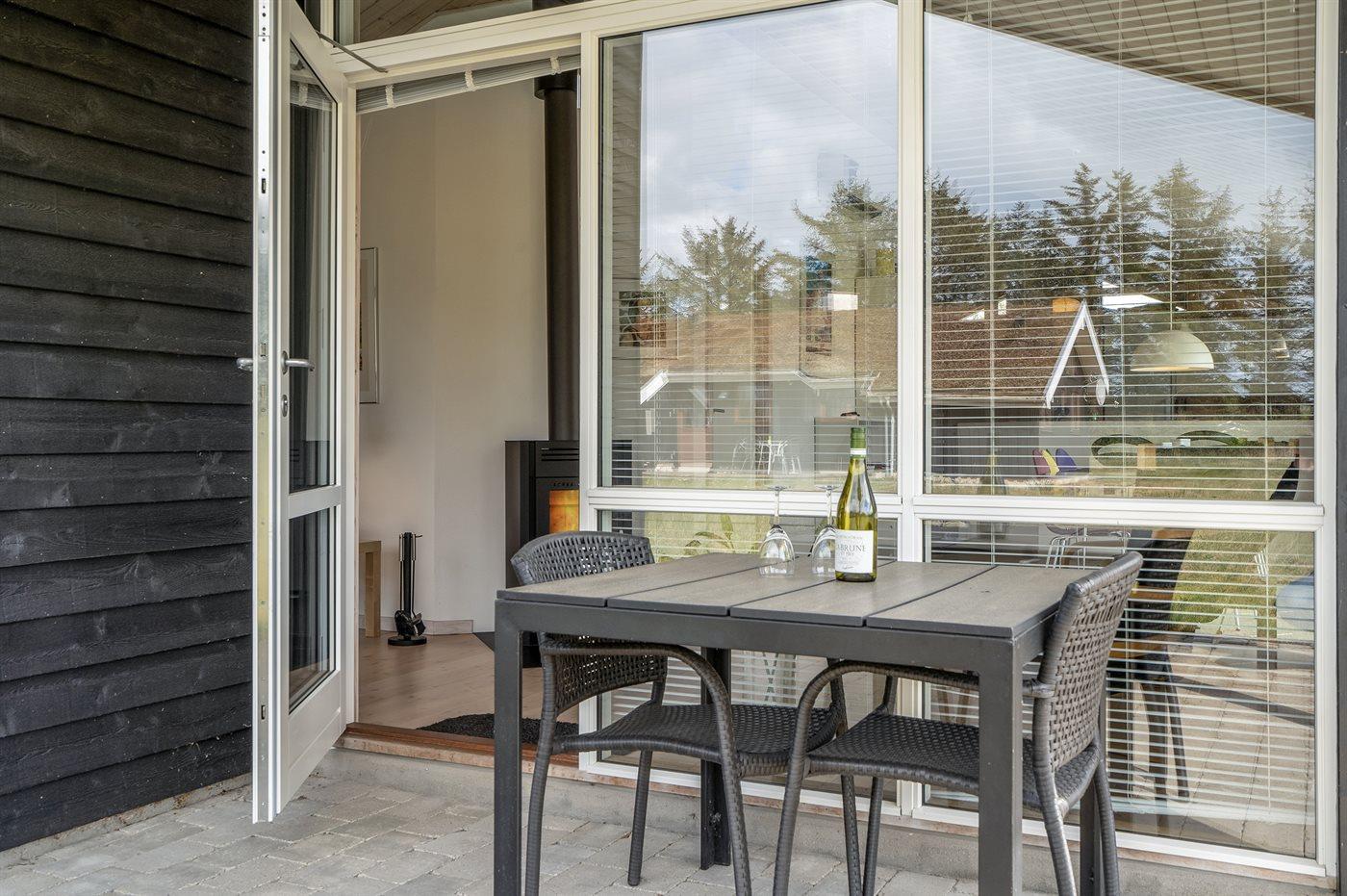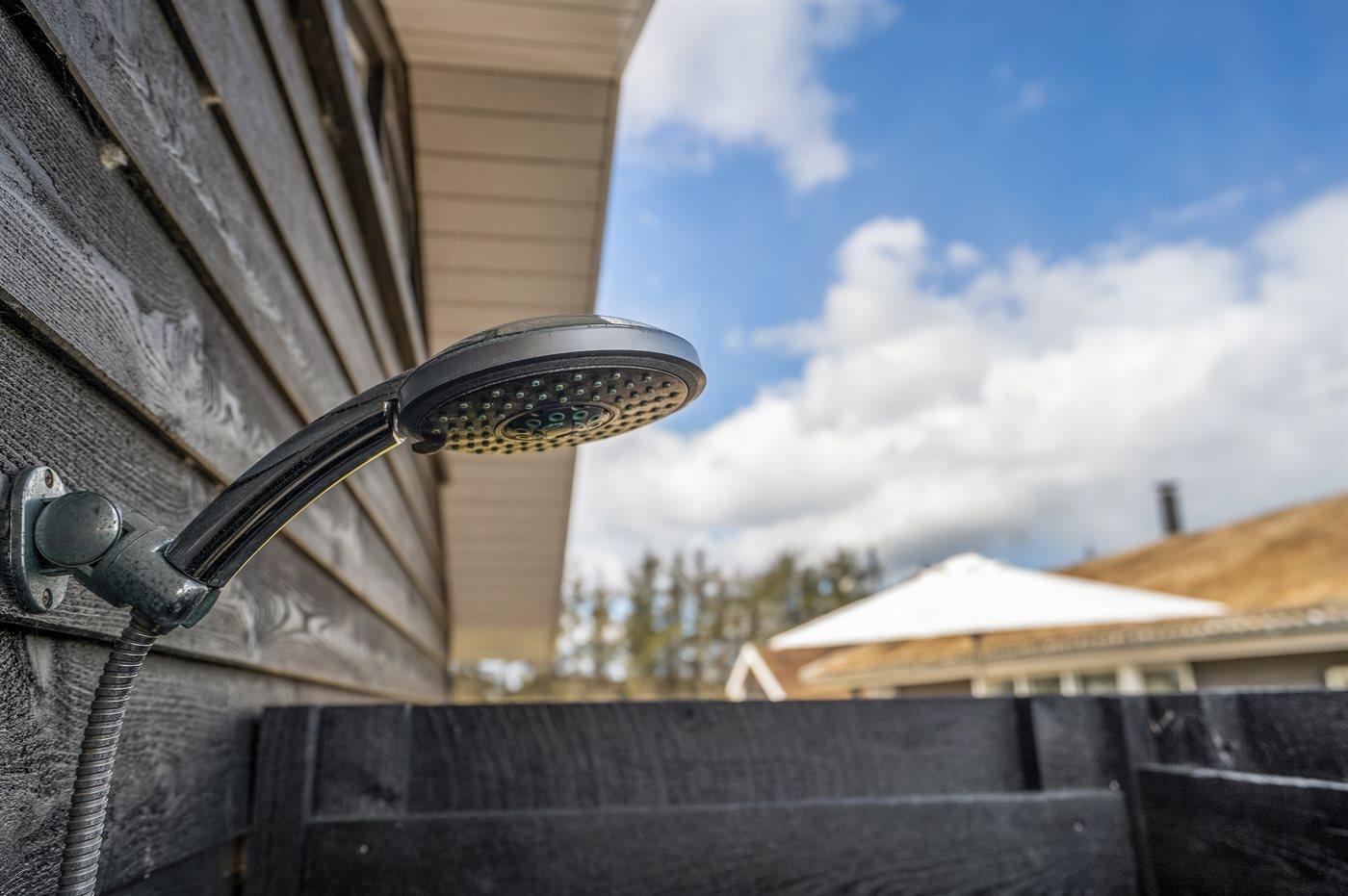 De vakantiewoning is gelegen op een 2600 m² groot natuural grond. Afstand tot de zee 1500 m. Dichtstbijzijnde winkel 2500 m. Bij de vakantiewoning hoort 100 m² terras. Daarnaast is er een 8 m² groot overdekt terras. Gereedschapsruimte. Schommel. Zandbak. Shelter. Buitendouche. Barbecue. Het huis heeft een stopcontact voor het opladen van een elektrische auto. Parkeerplaats bij het huis.