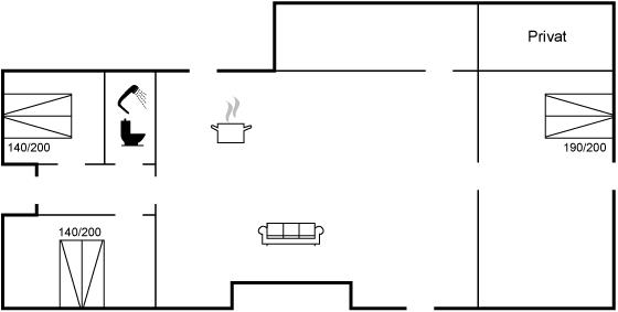 De vakantiewoning is gelegen op een 1800 m² groot natuural grond. Afstand tot de zee 500 m. Dichtstbijzijnde winkel 3000 m. Bij de vakantiewoning hoort 75 m² terras. Parkeerplaats bij het huis.