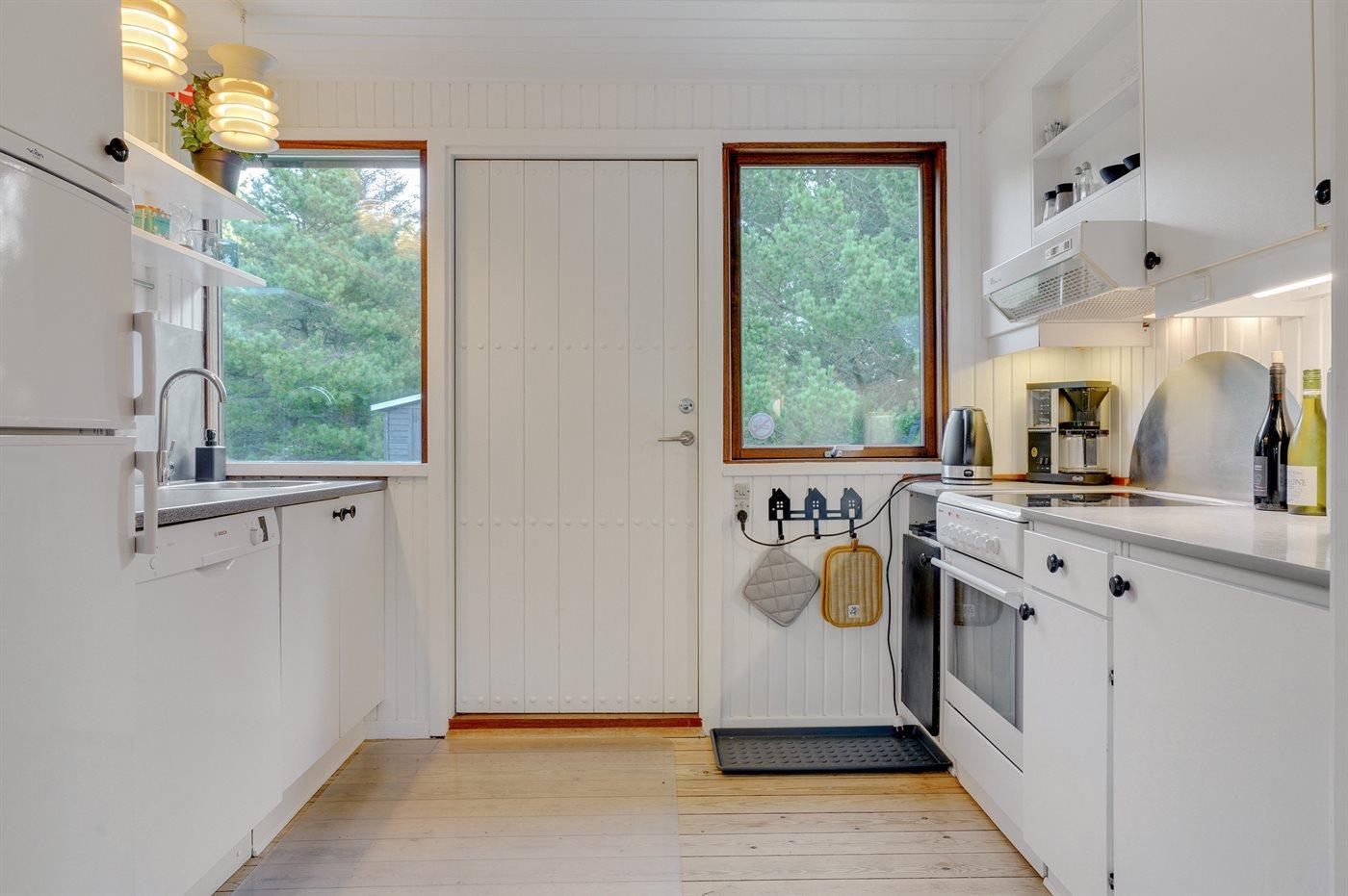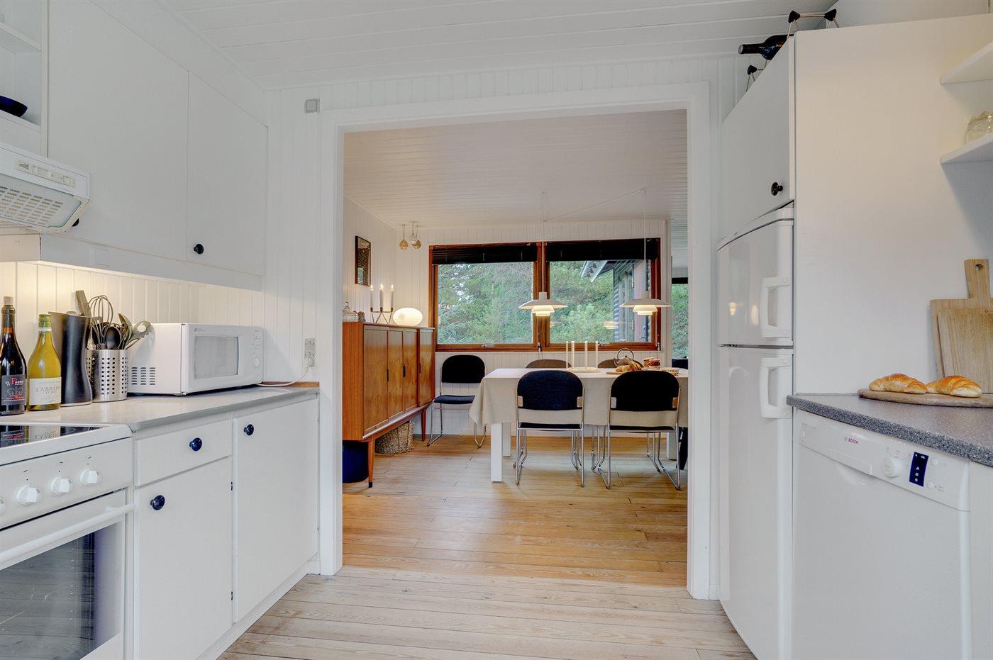 De keuken is uitgerust met koelkast Er zijn 4 keramische kookplaten, heteluchtoven, magnetron en vaatwasser.