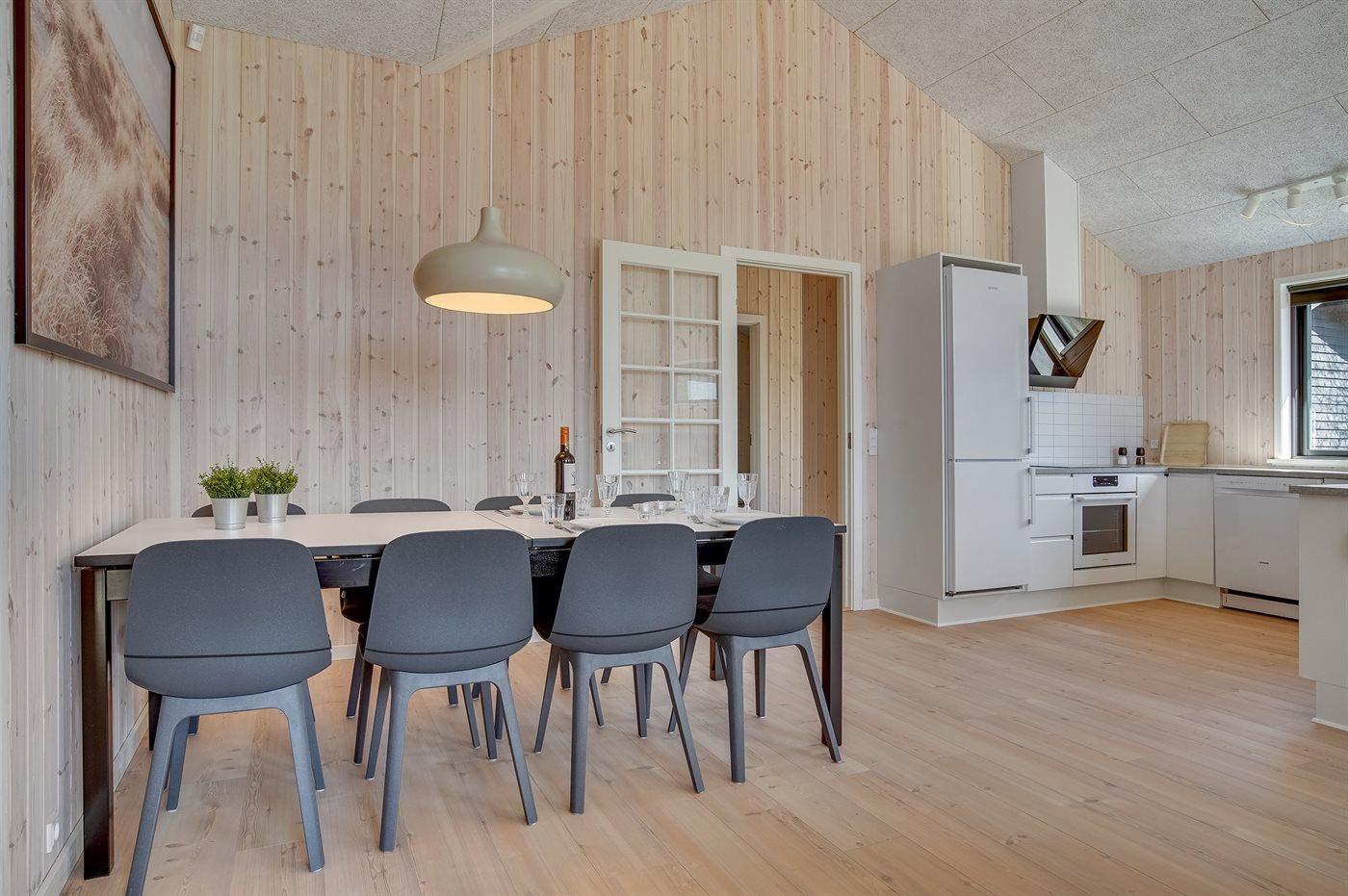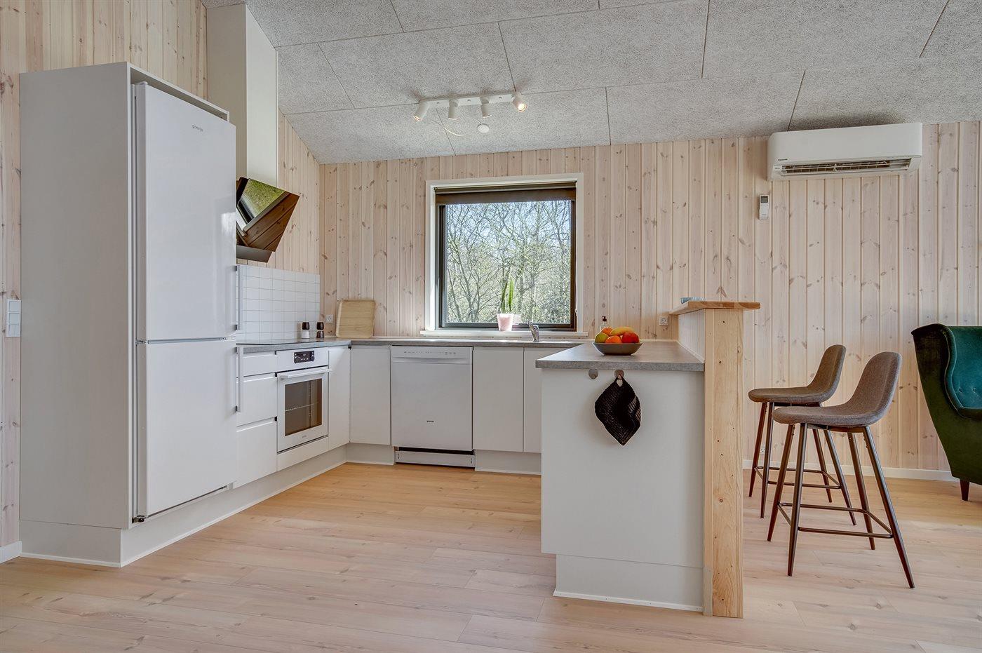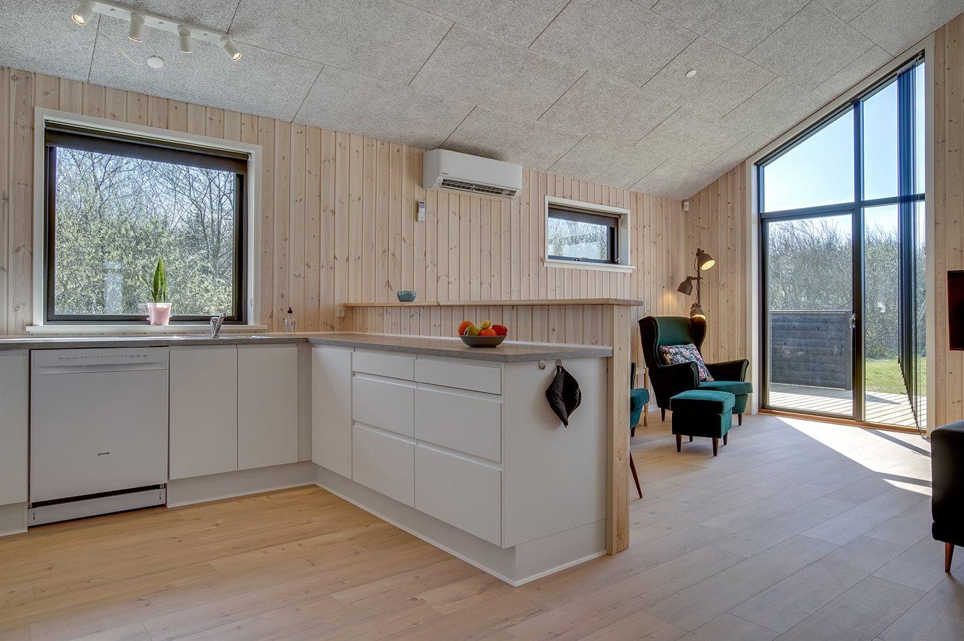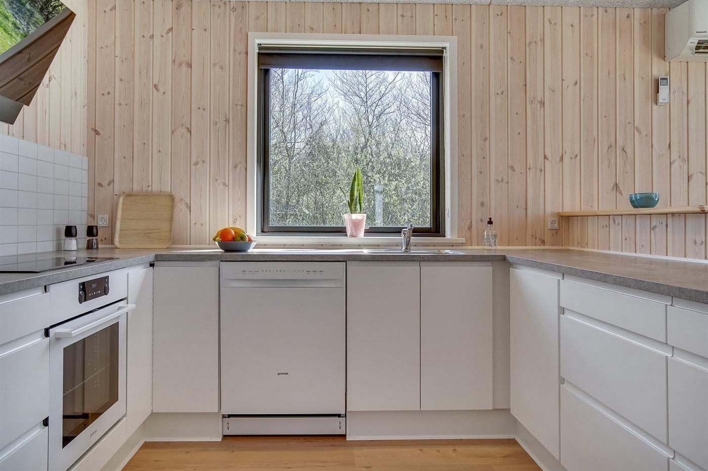 De keuken is uitgerust met koelkast Er is 4 inductiekookplaten, heteluchtoven, magnetron en vaatwasser.