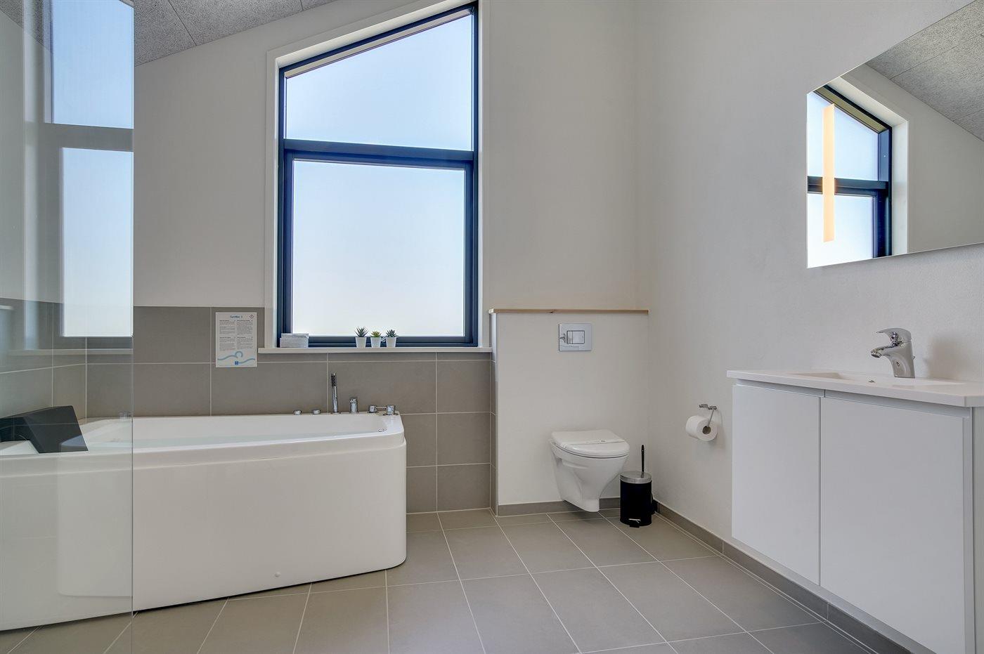 Er is 2 badkamers met douchehok en 2 toiletten. Er is vloerverwarming in 2 van de badkamers. De sauna biedt de gelegenheid tot ontspanning.