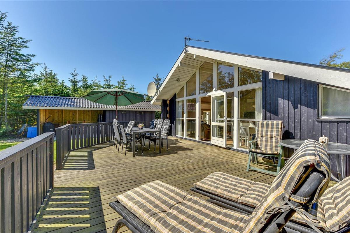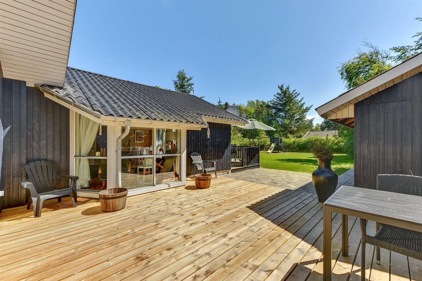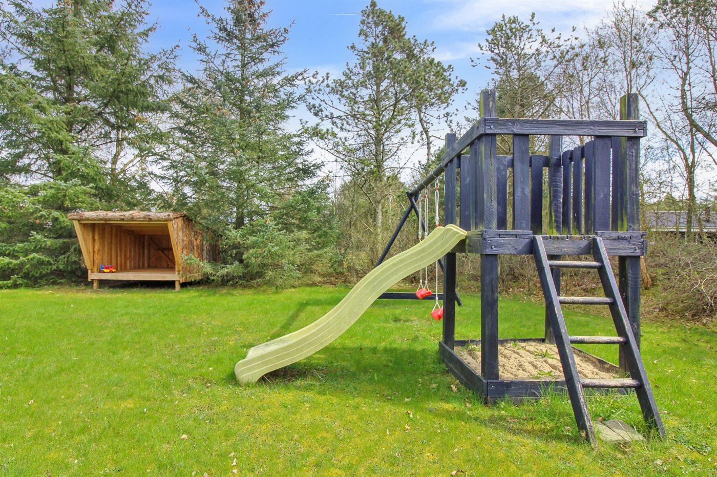 De vakantiewoning is gelegen op een 1450 m² groot natuural grond. Afstand tot de zee 1200 m. Dichtstbijzijnde winkel 800 m. Bij de vakantiewoning hoort 50 m² terras. Daarnaast is er een 10 m² groot overdekt terras. Gereedschapsruimte. Schommel. Zandbak. Speeltoren. Glijbaan. Shelter. U kunt buiten een maaltijd bereiden in de buitenkeuken. Parkeerplaats bij het huis.