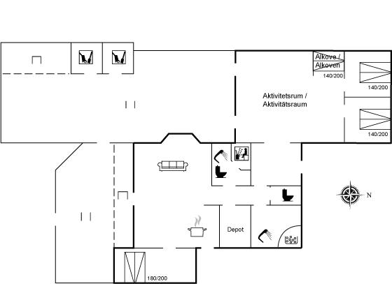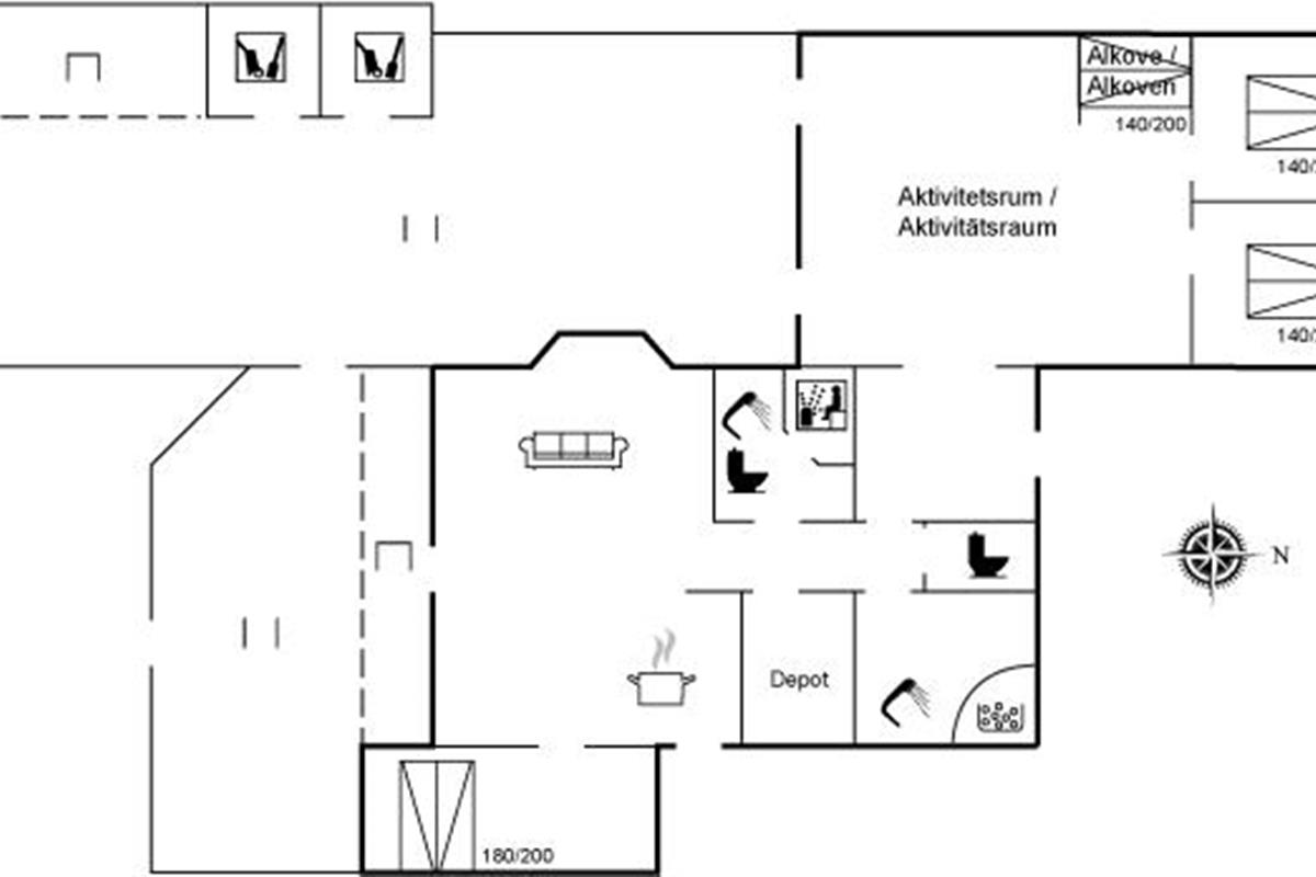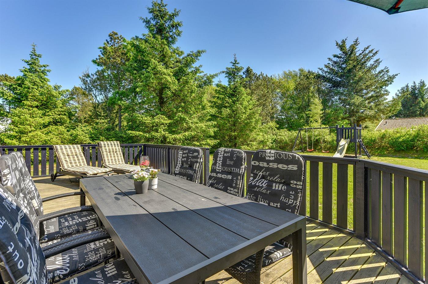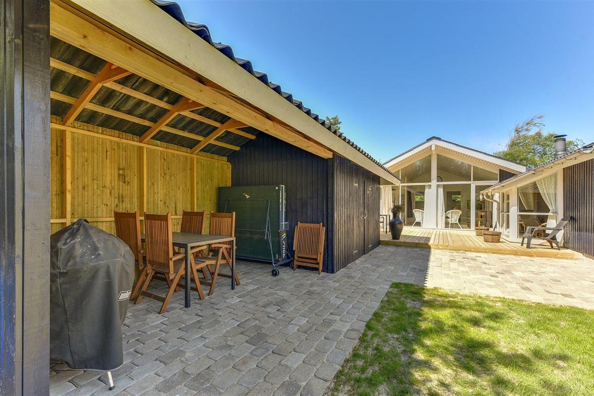De vakantiewoning is gelegen op een 1450 m² groot natuural grond. Afstand tot de zee 1200 m. Dichtstbijzijnde winkel 800 m. Bij de vakantiewoning hoort 50 m² terras. Daarnaast is er een 10 m² groot overdekt terras. Gereedschapsruimte. Schommel. Zandbak. Speeltoren. Glijbaan. Shelter. U kunt buiten een maaltijd bereiden in de buitenkeuken. Parkeerplaats bij het huis.