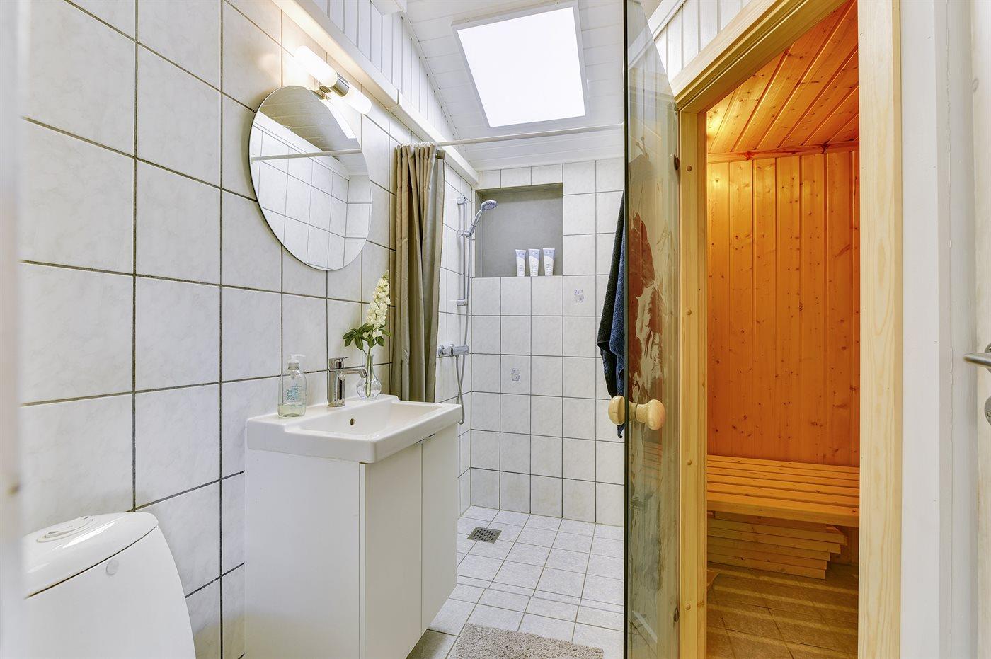 Er is 2 badkamers met douchehok en 2 toiletten, waarvan 1 gastentoilet. Er is vloerverwarming in 2 van de badkamers. Er is vloerverwarming in het gastentoilet. De sauna biedt de gelegenheid tot ontspanning.