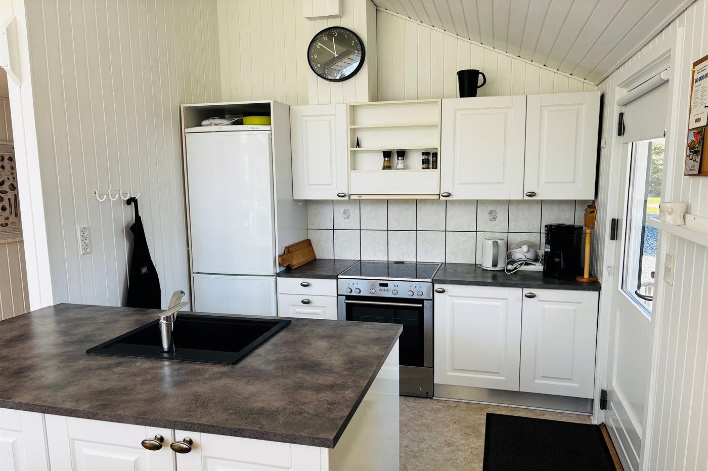 De keuken is uitgerust met koelkast Er zijn 4 keramische kookplaten, heteluchtoven, magnetron en vaatwasser.