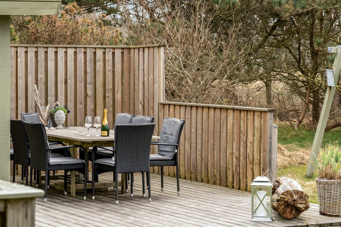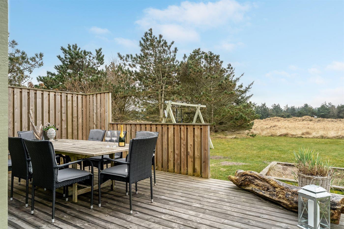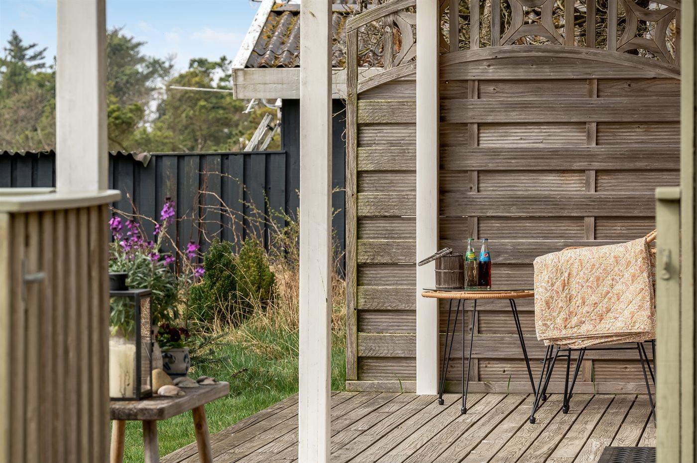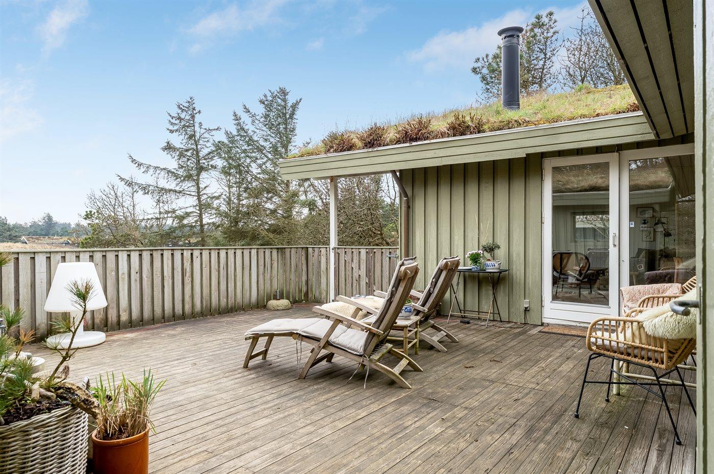 De vakantiewoning is gelegen op een 1385 m² groot natuural grond. Afstand tot de zee 600 m. Dichtstbijzijnde winkel 1500 m. Bij de vakantiewoning hoort 50 m² terras. Daarnaast is er een 5 m² groot overdekt terras. Schommel. Zandbak. Parkeerplaats bij het huis.